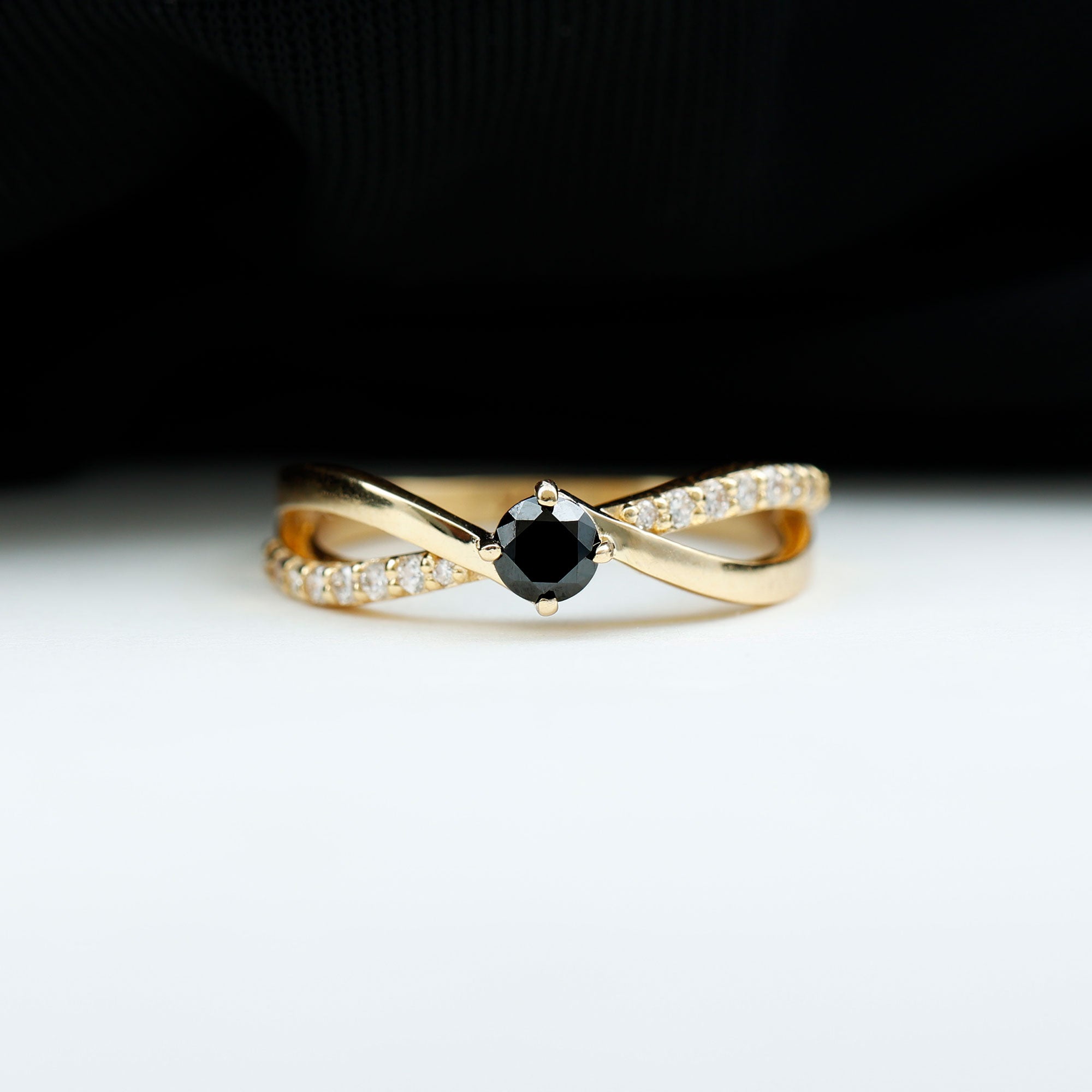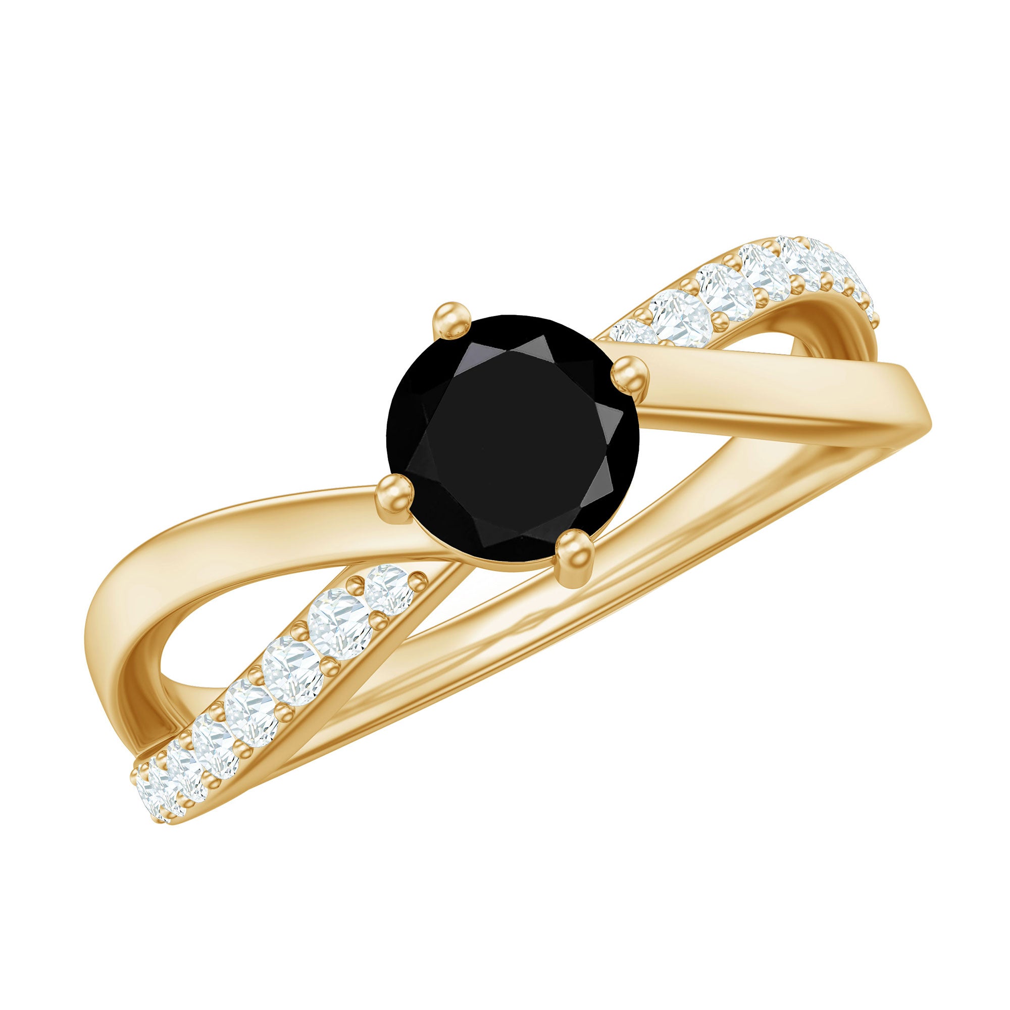 Enhance your love with this Solitaire Ring is adorned with Round Shape Black Spinel set as a solitaire in a prong setting and Round Shape Diamond in a prong setting. This Gold Infinity Ring is available in solid gold.