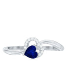 1/2 CT Blue Sapphire Heart Promise Ring with Diamond