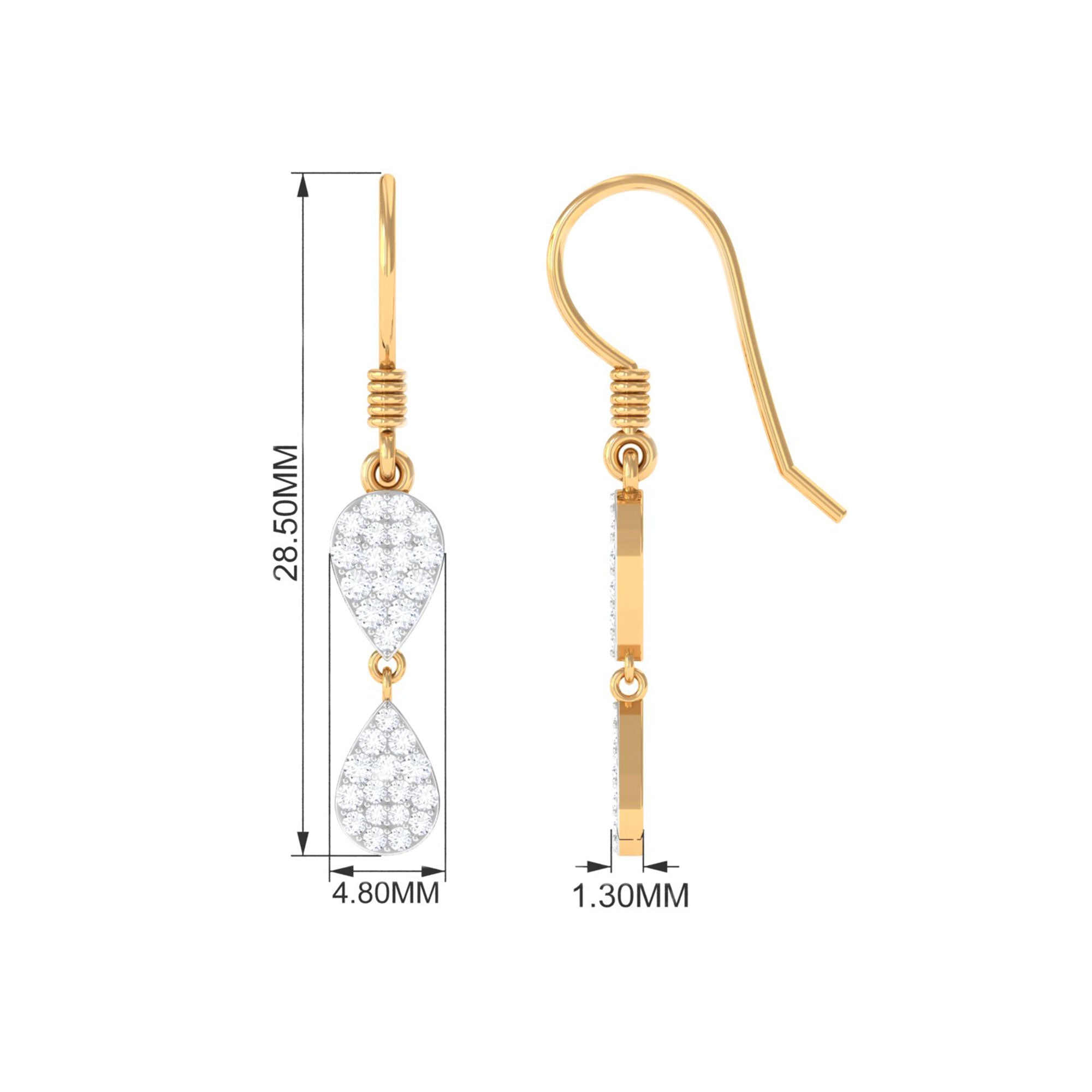 Enhance your look with our stunning Moissanite Dangle Earrings that radiate brilliance and dazzle. These Moissanite earrings feature a dangle pattern adorned with round Moissanite in a pave setting and secured with a fish hook. Made from solid gold, these drop earrings will add a touch of glamour to any outfit and make you shine brighter than ever before. Adorn yourself with these scintillating and dazzling earrings to make a statement and turn heads wherever you go.