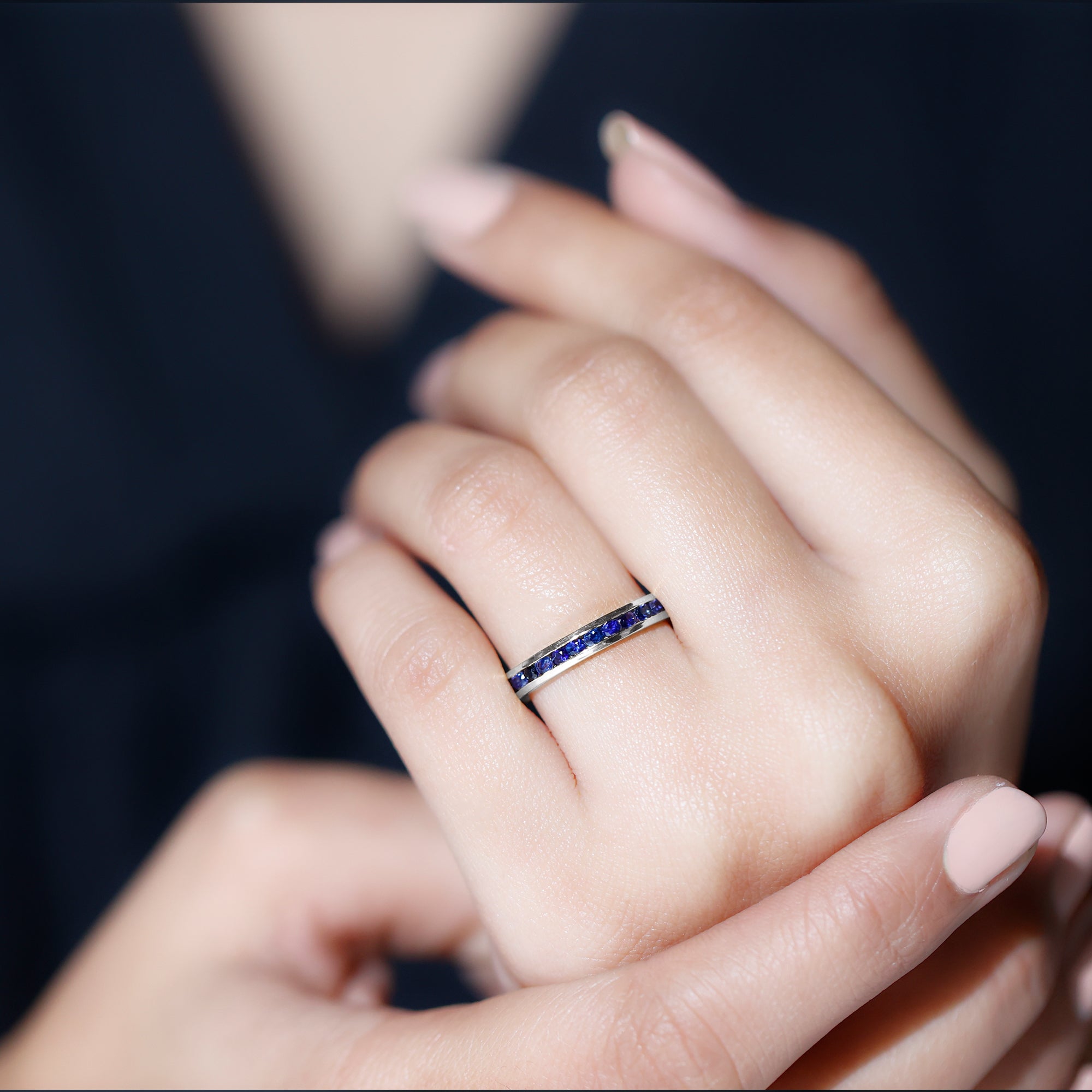 1/2 CT Channel Set Blue Sapphire Half Eternity Ring for Women