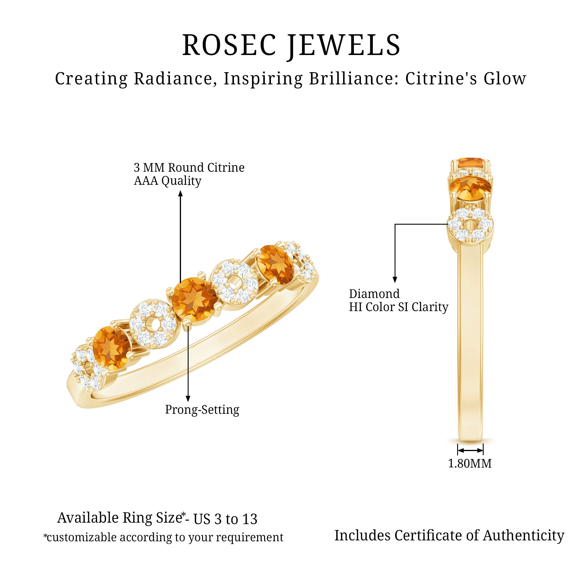 Symbolize eternal love with our anniversary gift featuring round citrine and Diamond on a semi-band. A timeless expression of never-ending love.
