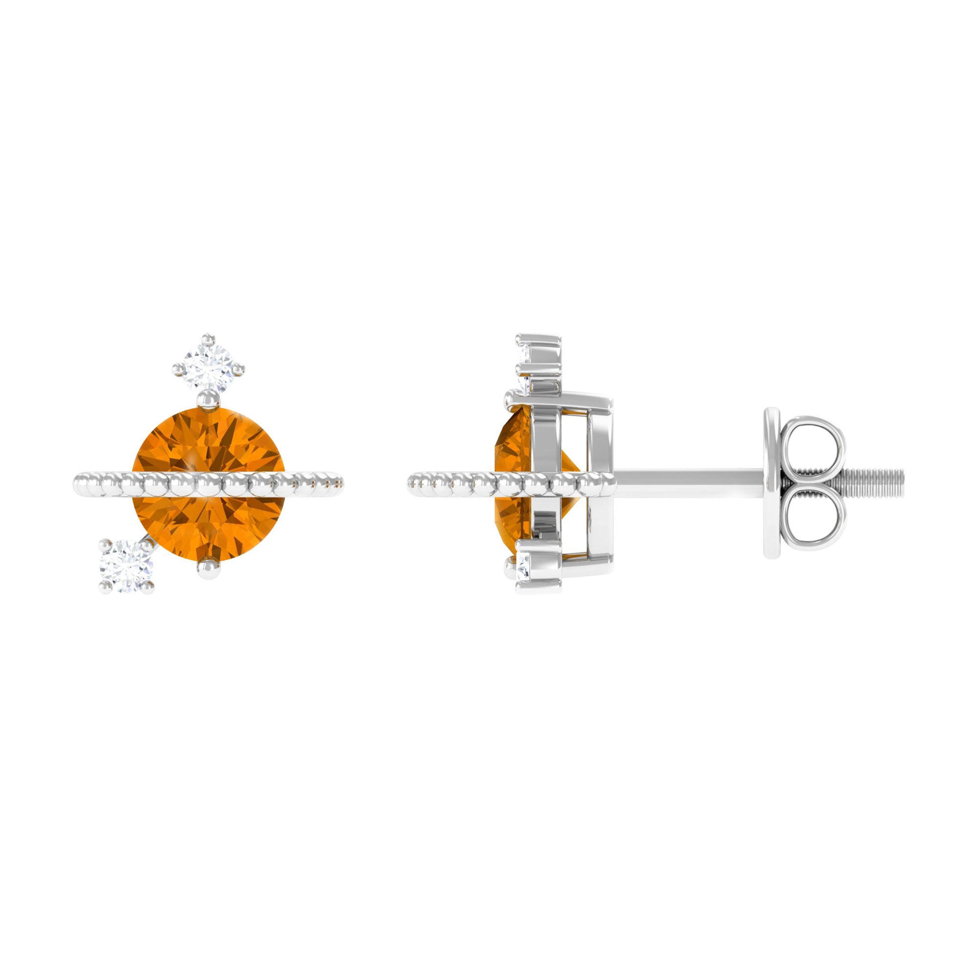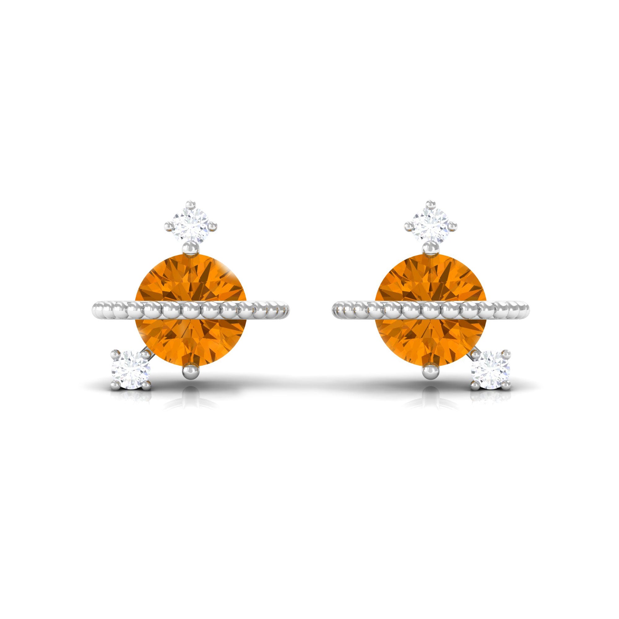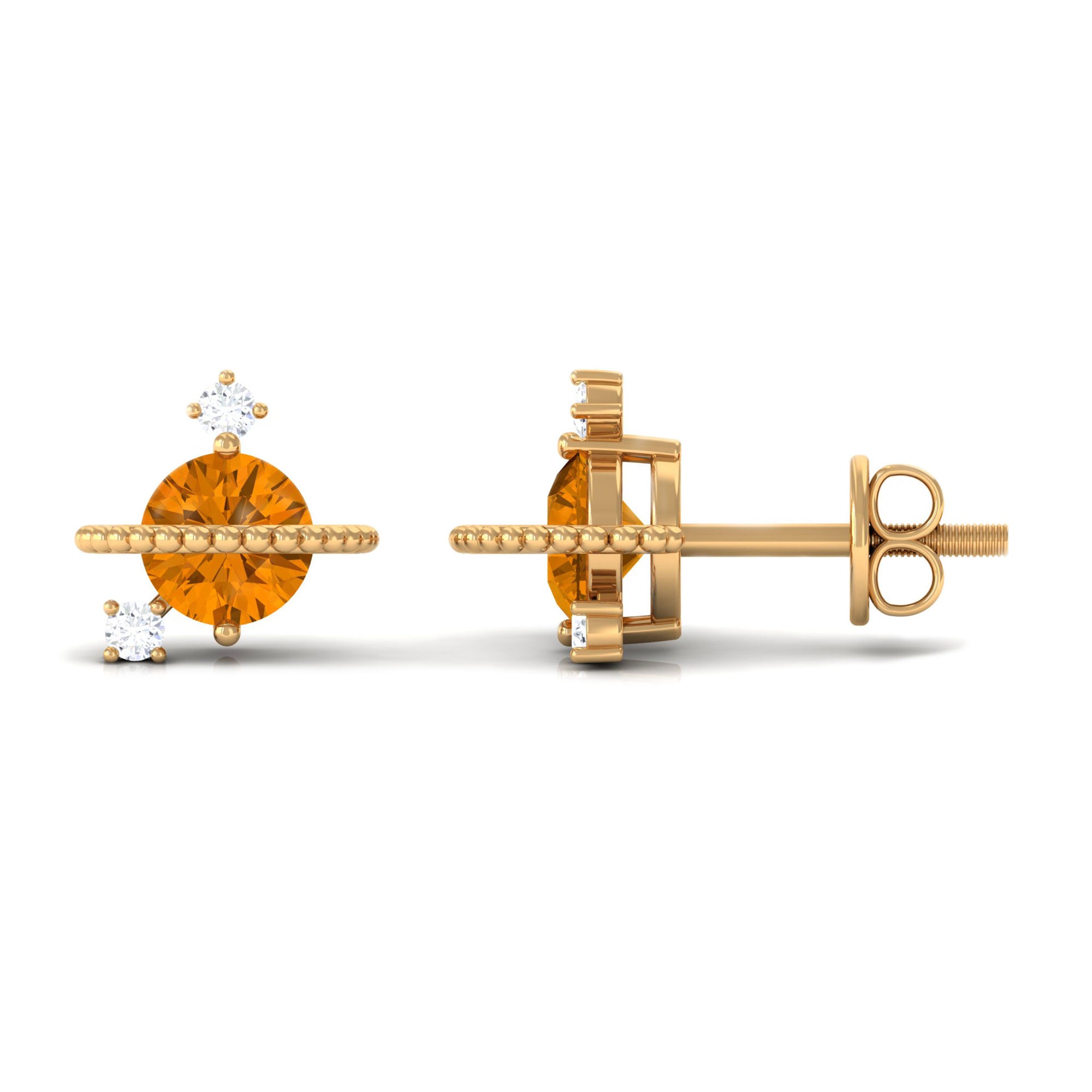 1/2 CT Contemporary Citrine and Diamond Celestial Stud Earrings