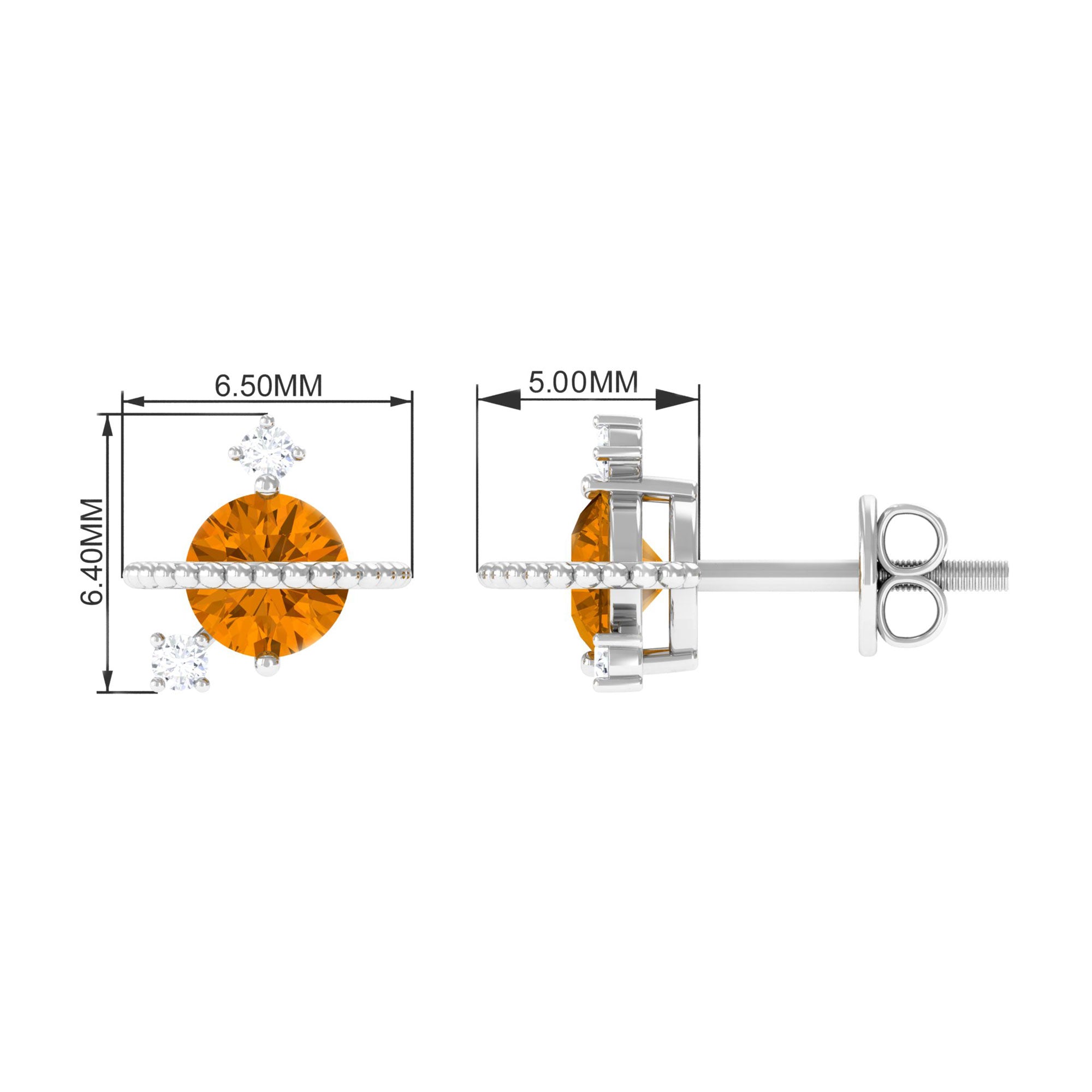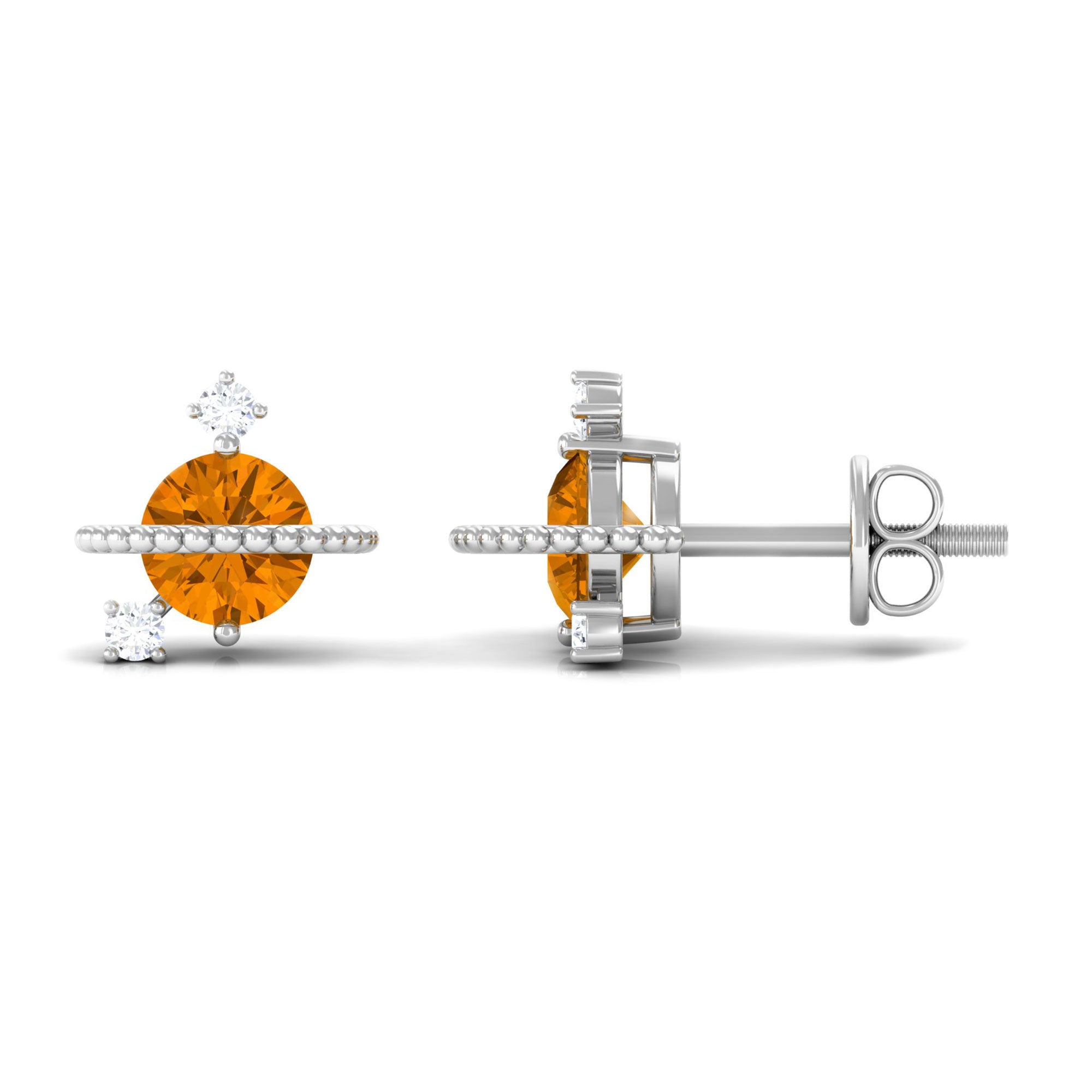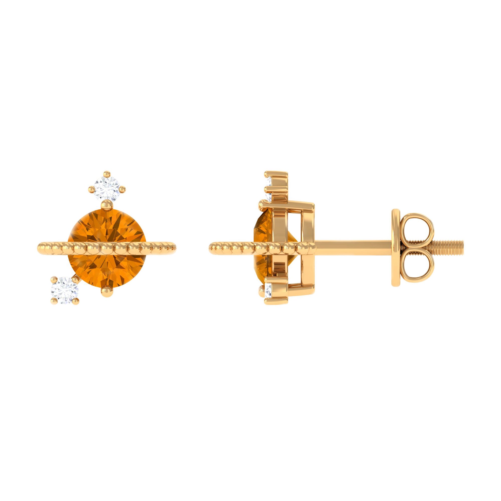 1/2 CT Contemporary Citrine and Diamond Celestial Stud Earrings
