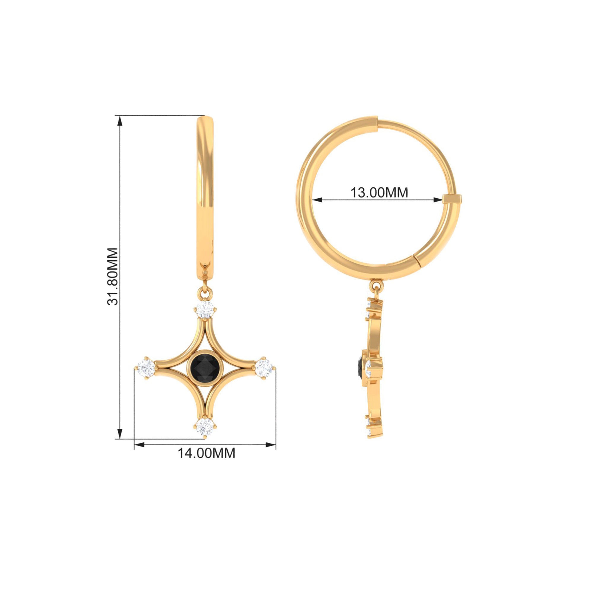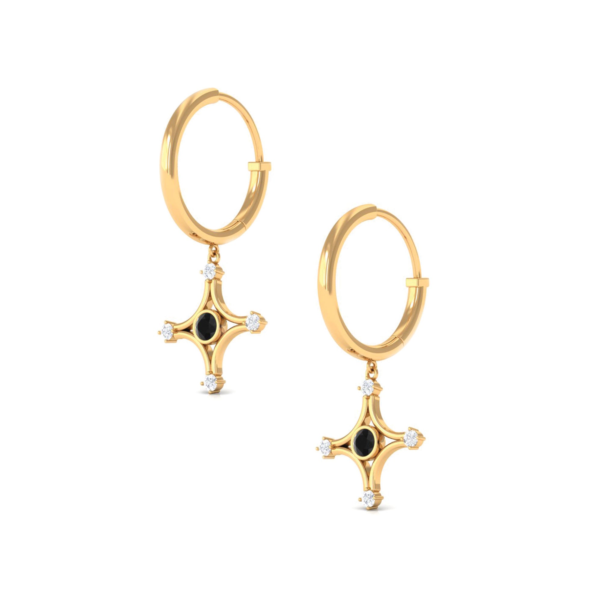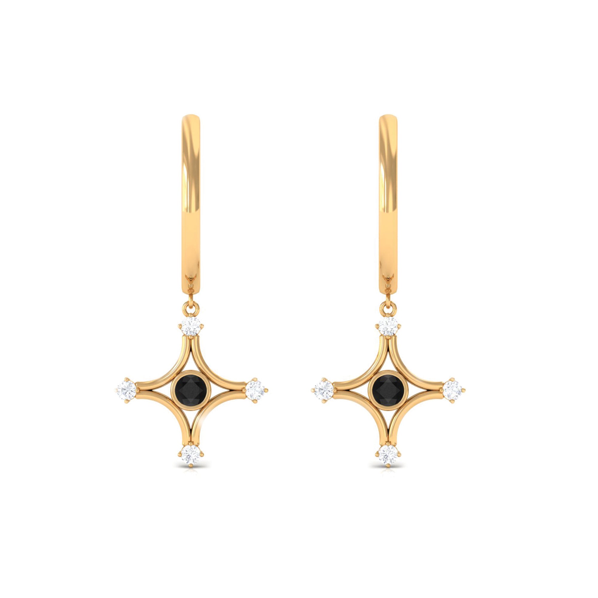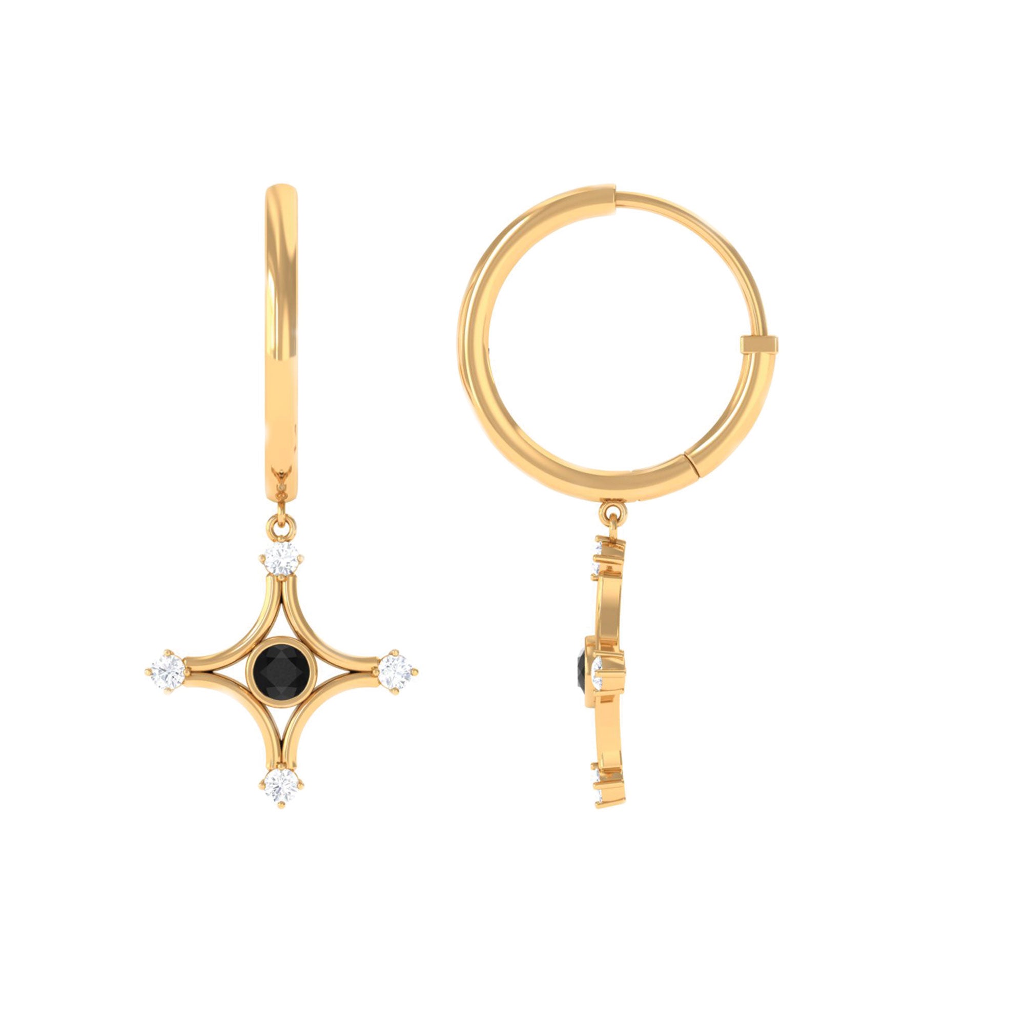 Elevate your look with these Star Dangle Hoop Earrings with a Bezel Set Created Black Diamond Solitaire enhanced by Diamond Accents add to the look of these Hoop Earrings.