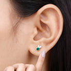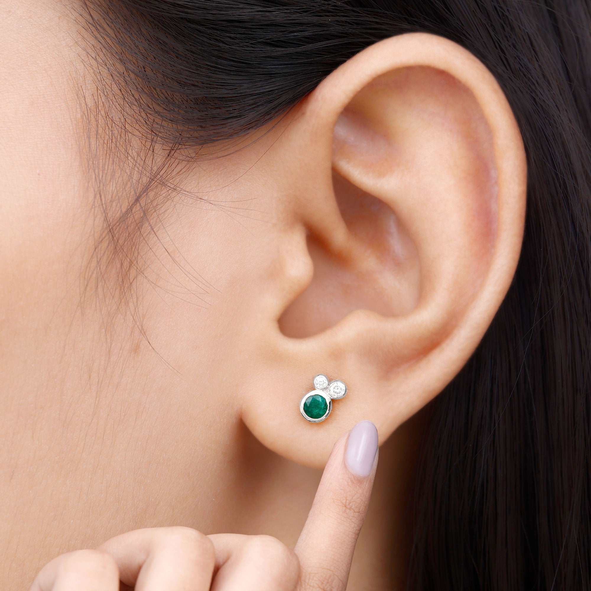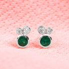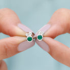 1/2 CT Dainty Emerald and Diamond Three Stone Stud Earrings