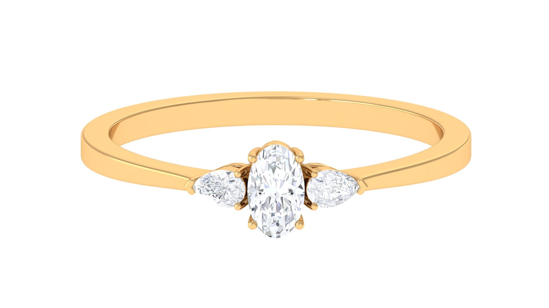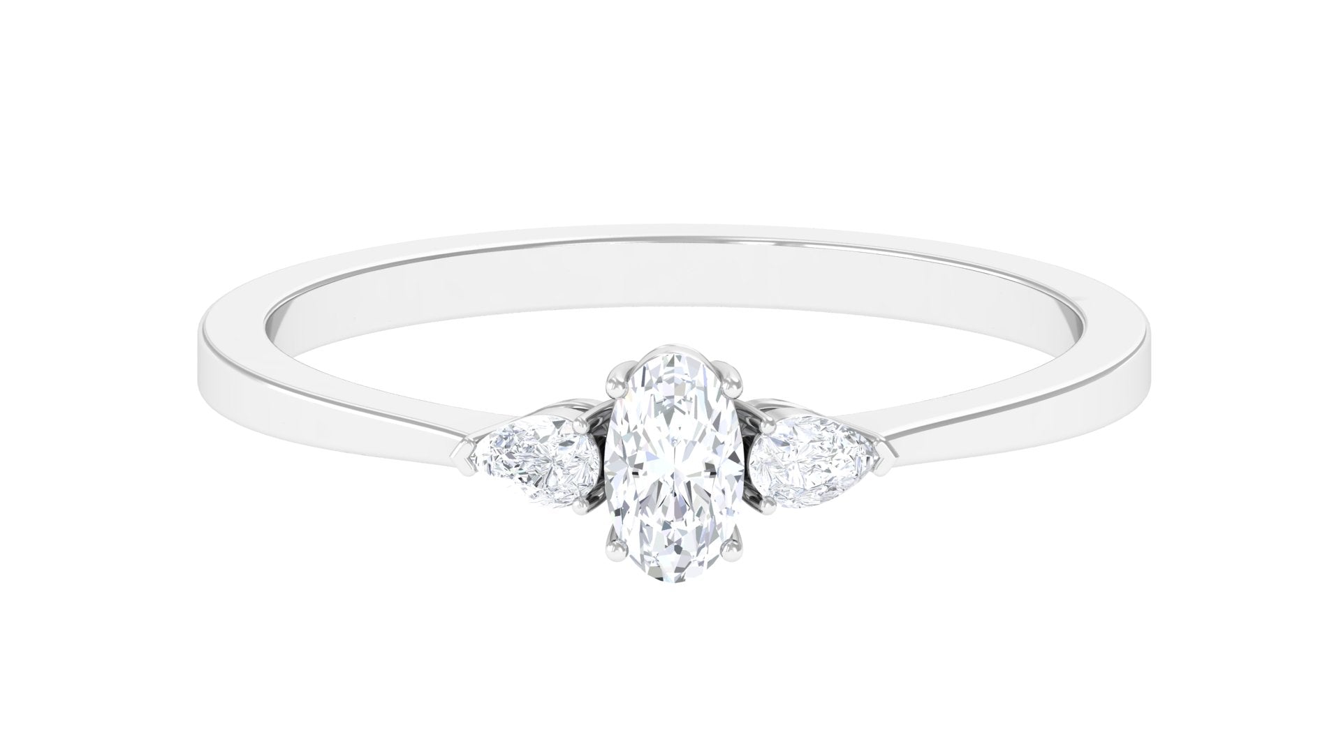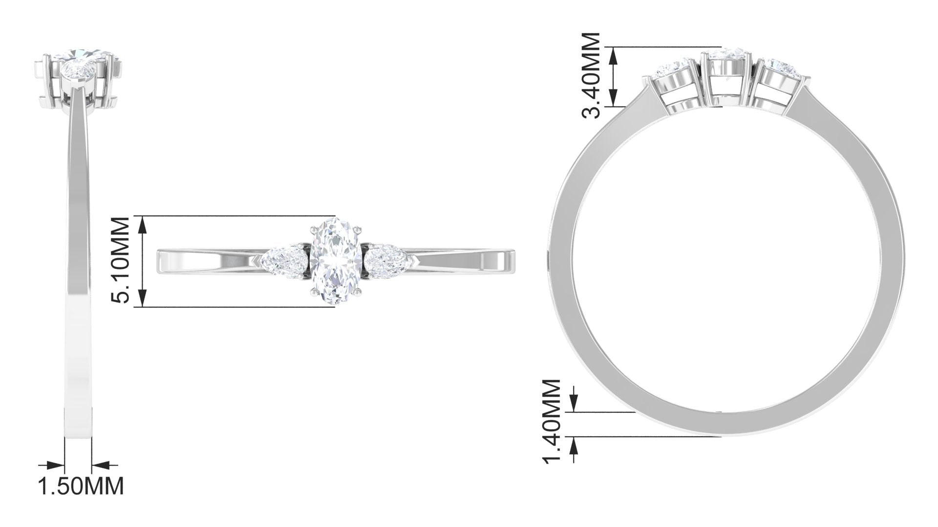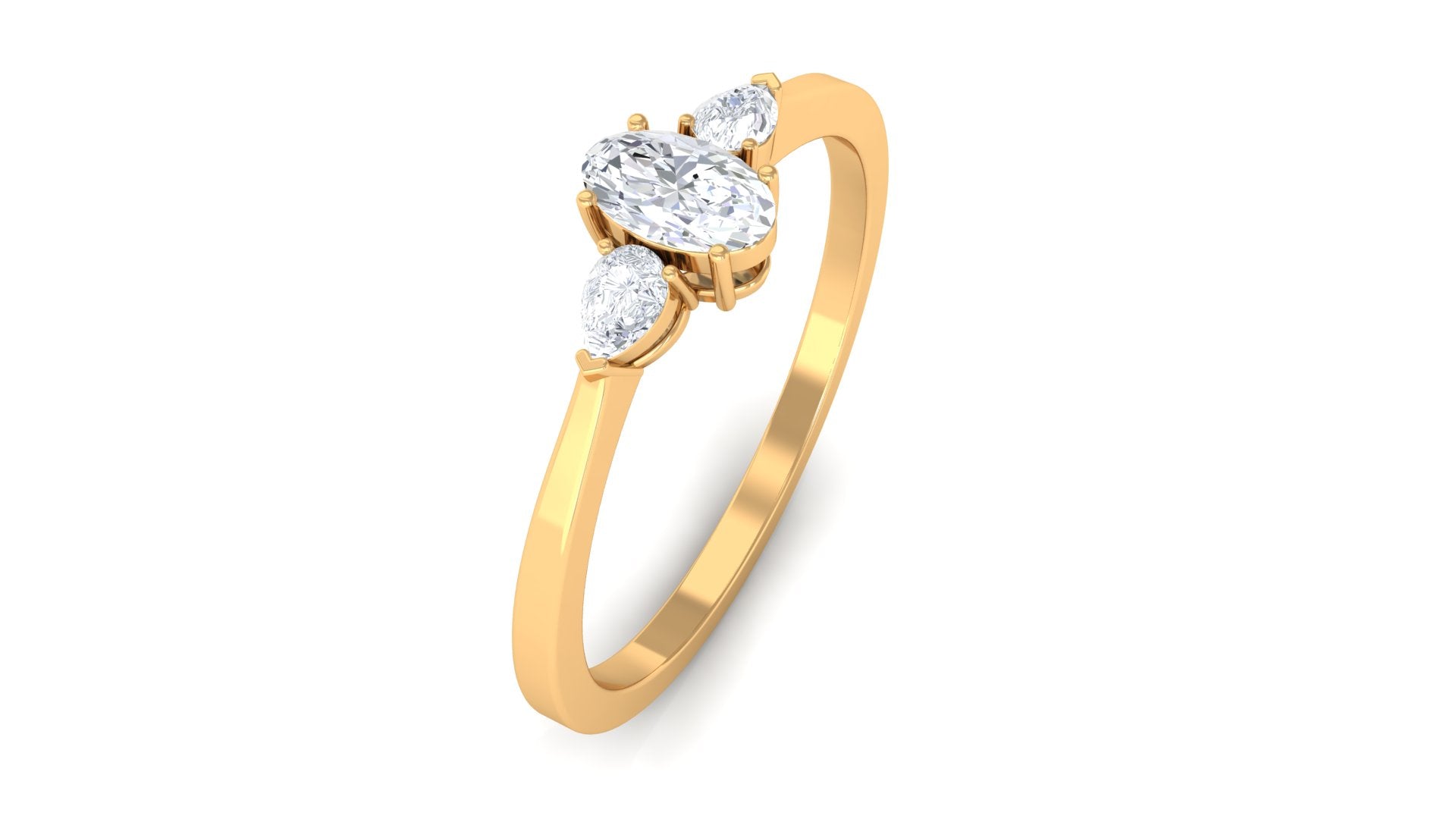 A Forever One Oval Cut Diamond gem glamorously updates this Engagement Ring. Set in gleaming Gold, Pear cut diamond on both side of the center stone make it a perfect Three Stone Engagement Ring also, brilliantly paving the way to everlasting love. Make her eyes glitter with our new Diamond Engagement Ring.