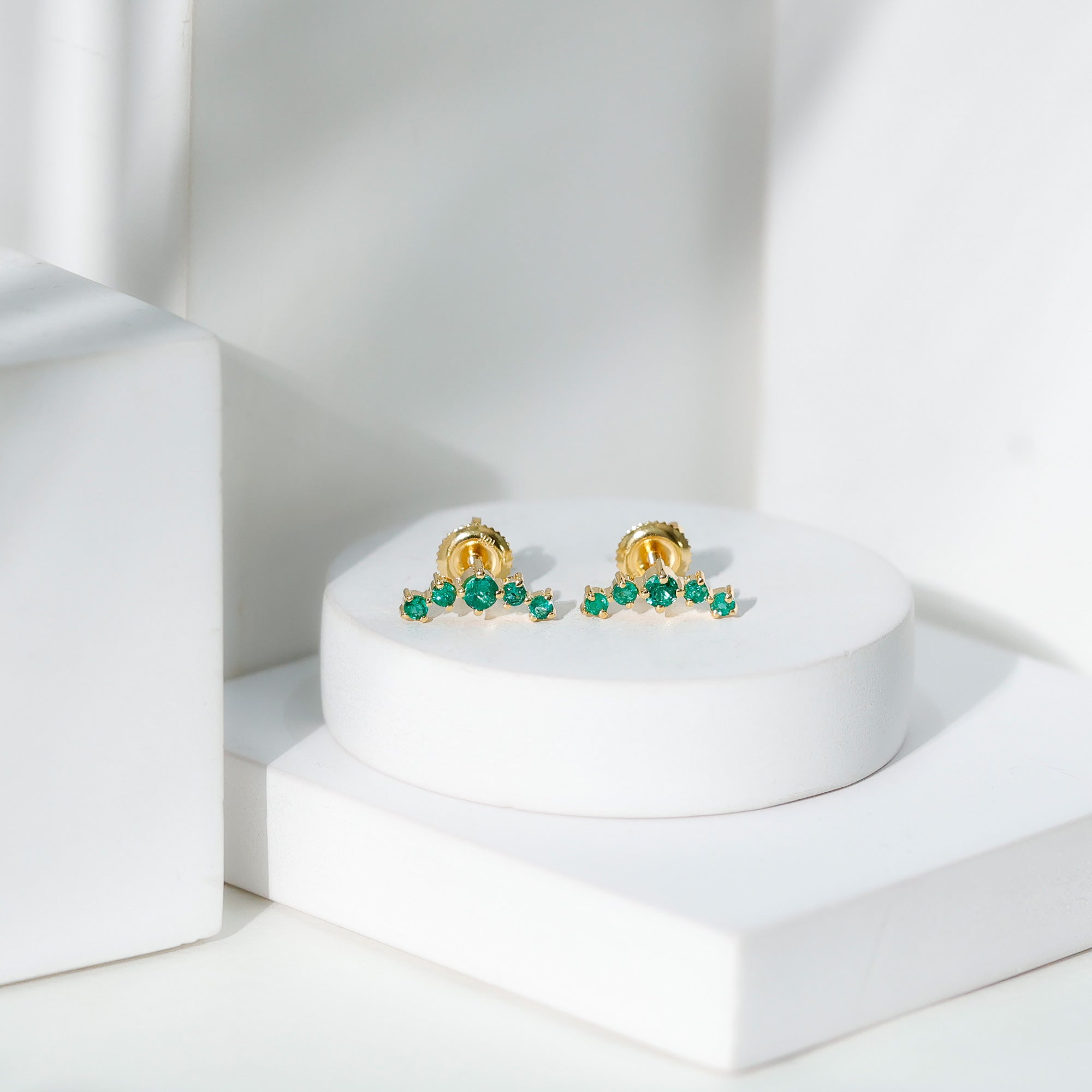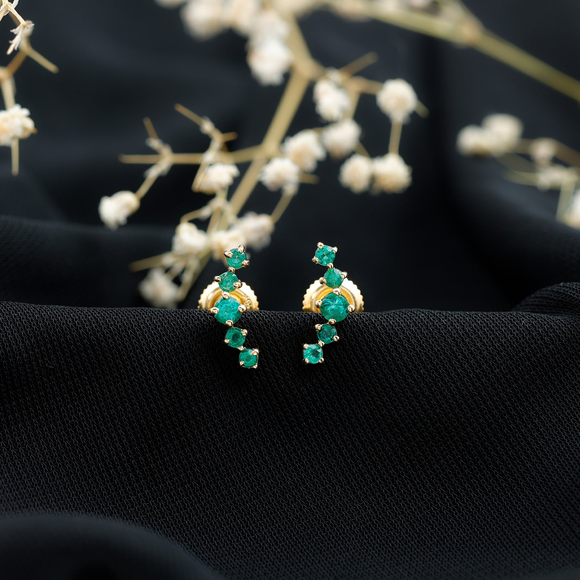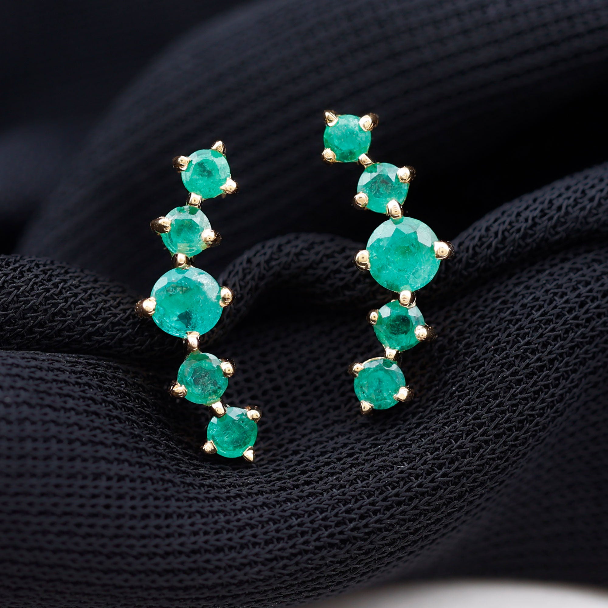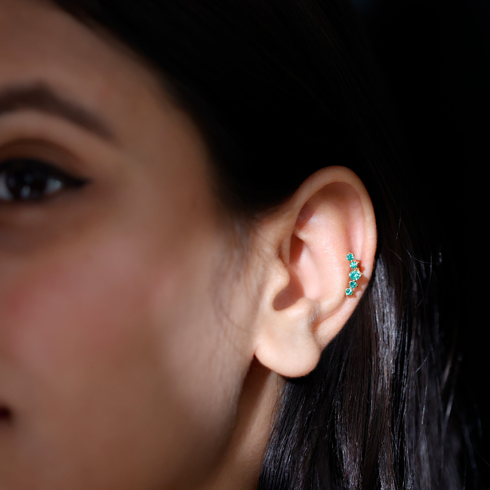 This Beautiful Wedding Climber earring is a glamorous piece encased with Round Shape Emerald stone in the prong setting that creates the stunning earring. These Statement Climber earrings are perfect piercing earrings for girls.