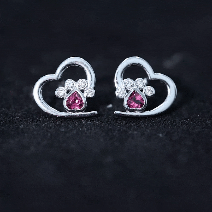 1/2 CT Heart Shape Pink Tourmaline and Diamond Dog Paw Stud Earrings
