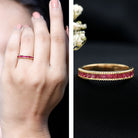 This classic Half Eternity Ring is adorned with Princess Cut Ruby in Channel Setting. This Half Eternity Ring with Milgrain Detailing will be a charming Birthday gift for a woman that will make her day very secial.