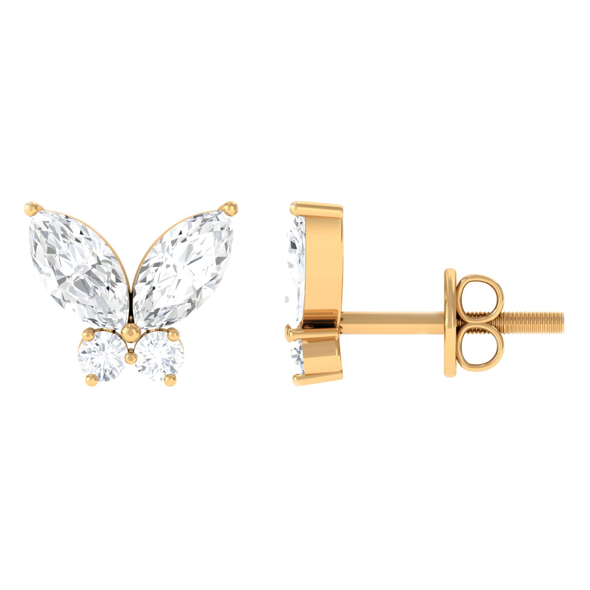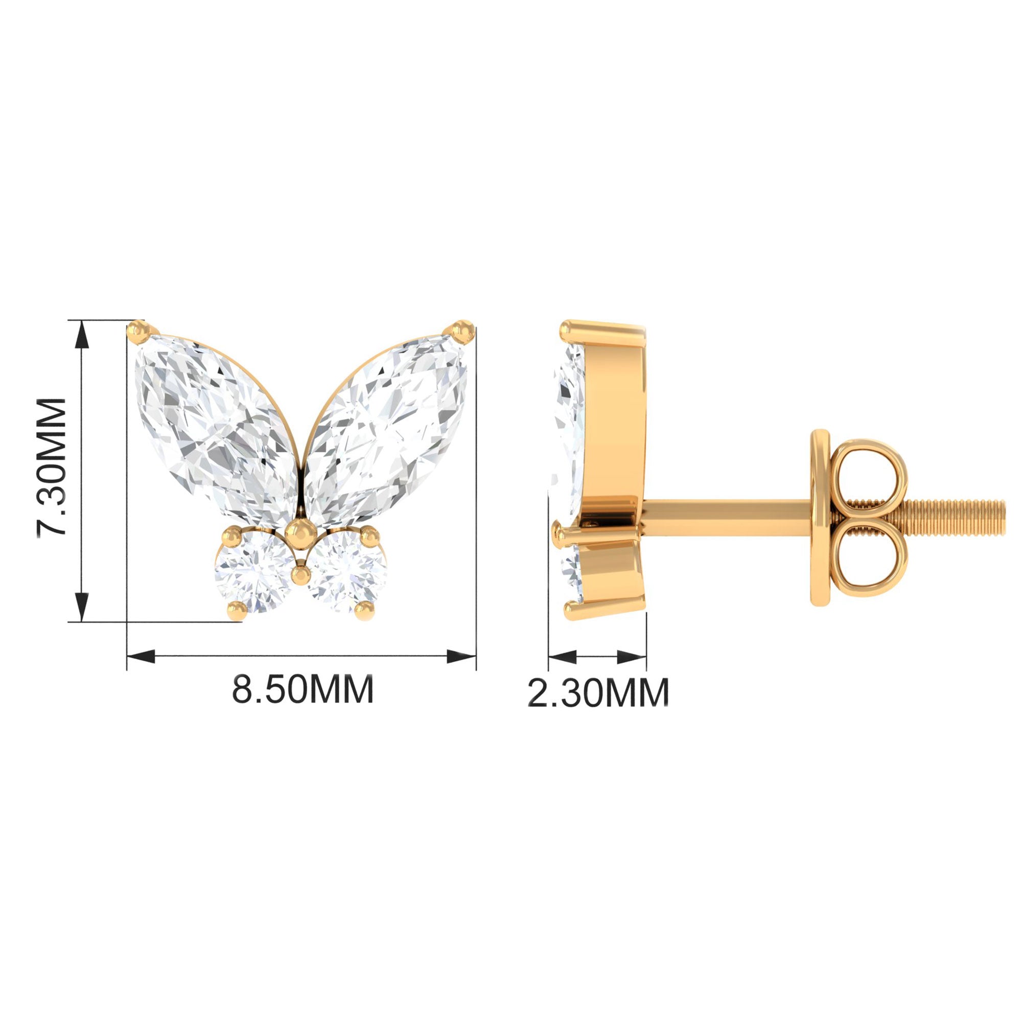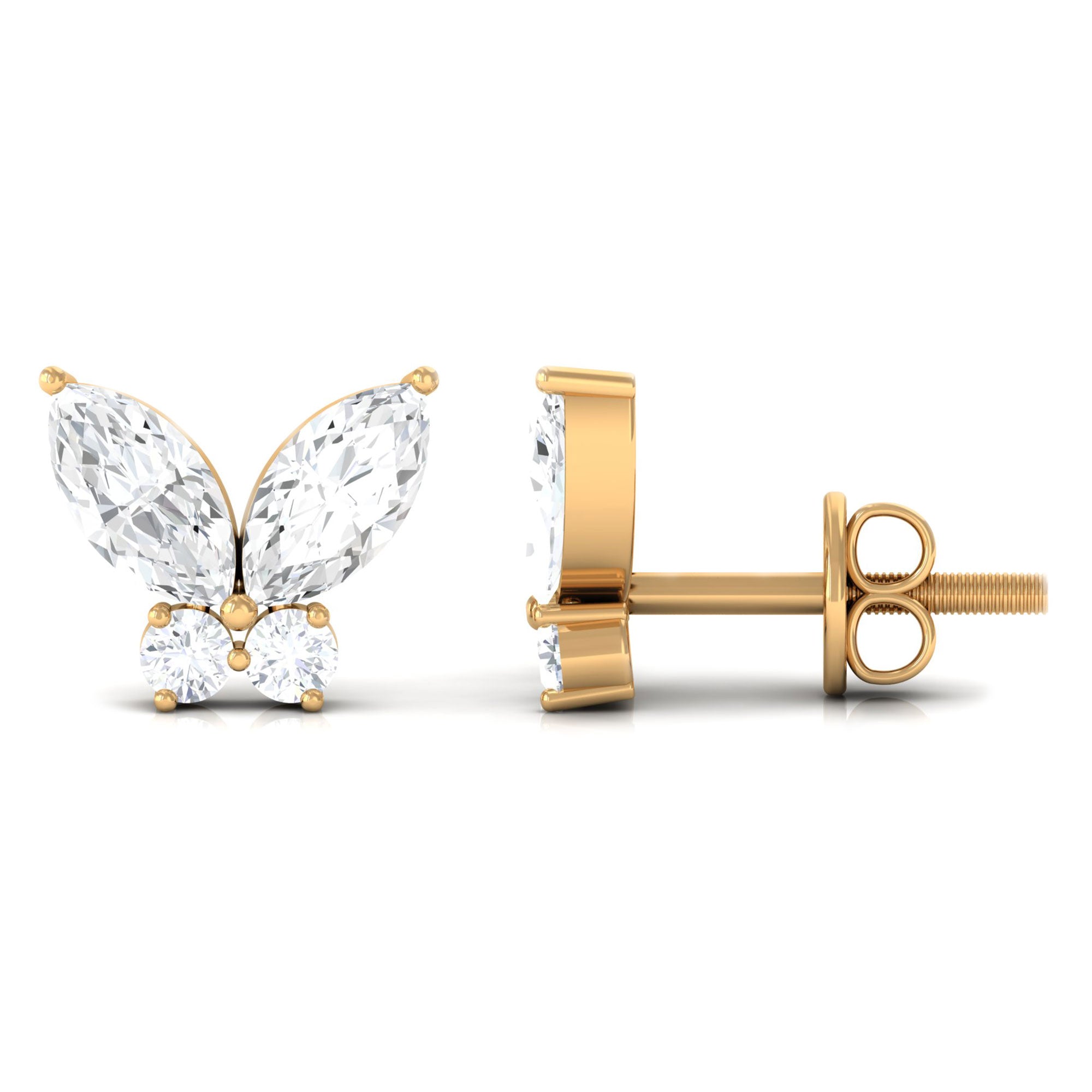 Bring a touch of whimsy and sparkle to every outfit with these Diamond Butterfly Earrings, a delicate celebration of nature and elegance. Each earring features a graceful Butterfly formed with Marquise and Round Shape Diamond stones, capturing light beautifully and creating a playful yet sophisticated shimmer. The Screw Back Closure ensures they stay comfortably secure, making them perfect for everyday wear or special occasions where you want to feel effortlessly radiant. These Diamond Stud Earrings pair wonderfully with casual looks, workwear, or evening ensembles, adding a subtle sparkle that draws admiration without overwhelming. Arriving in a chic jewelry box, these Diamond Earrings are ready to gift for birthdays, anniversaries or just to surprise someone special with a meaningful token of beauty. Whether treating yourself or gifting a loved one, these Diamond Ear Studs turn every glance into a moment of delight and every occasion into something memorable. With their delicate sparkle and enchanting design, they are destined to become a cherished favorite in any jewelry collection.