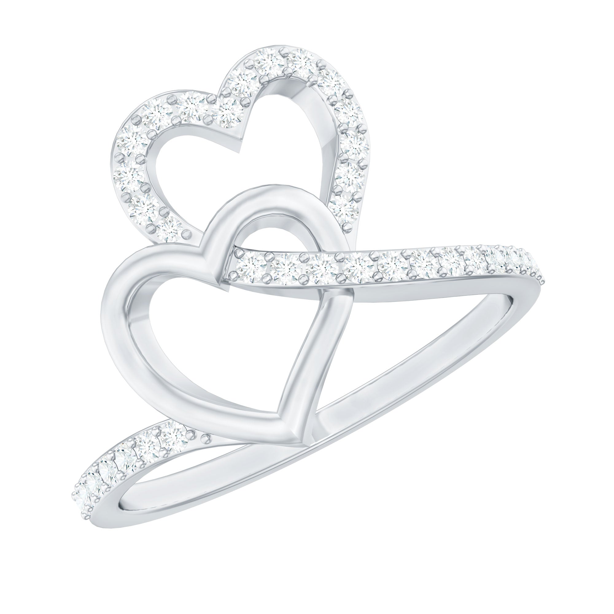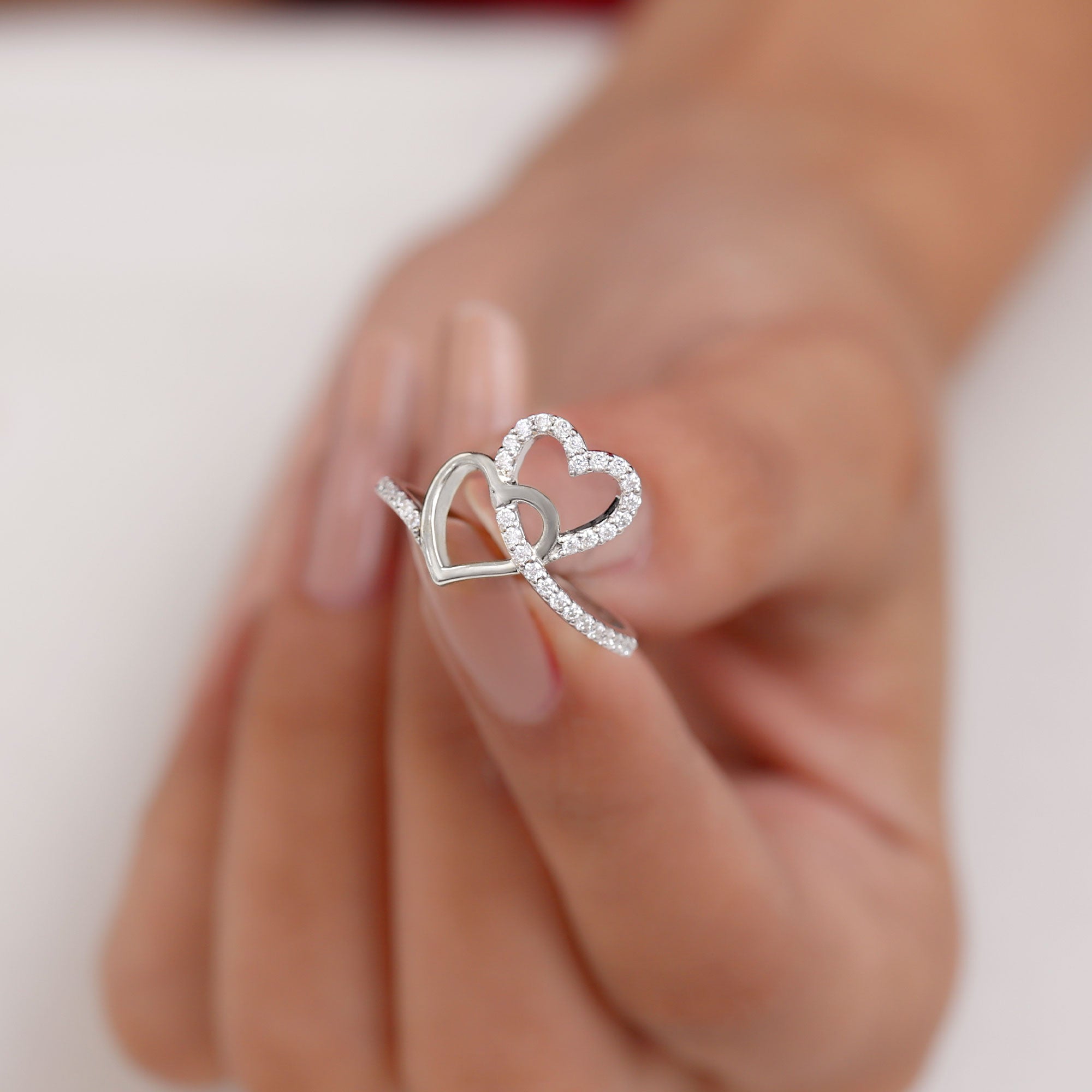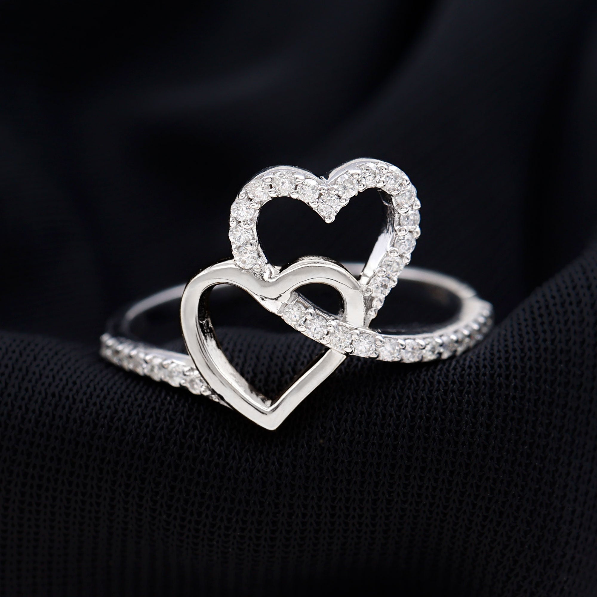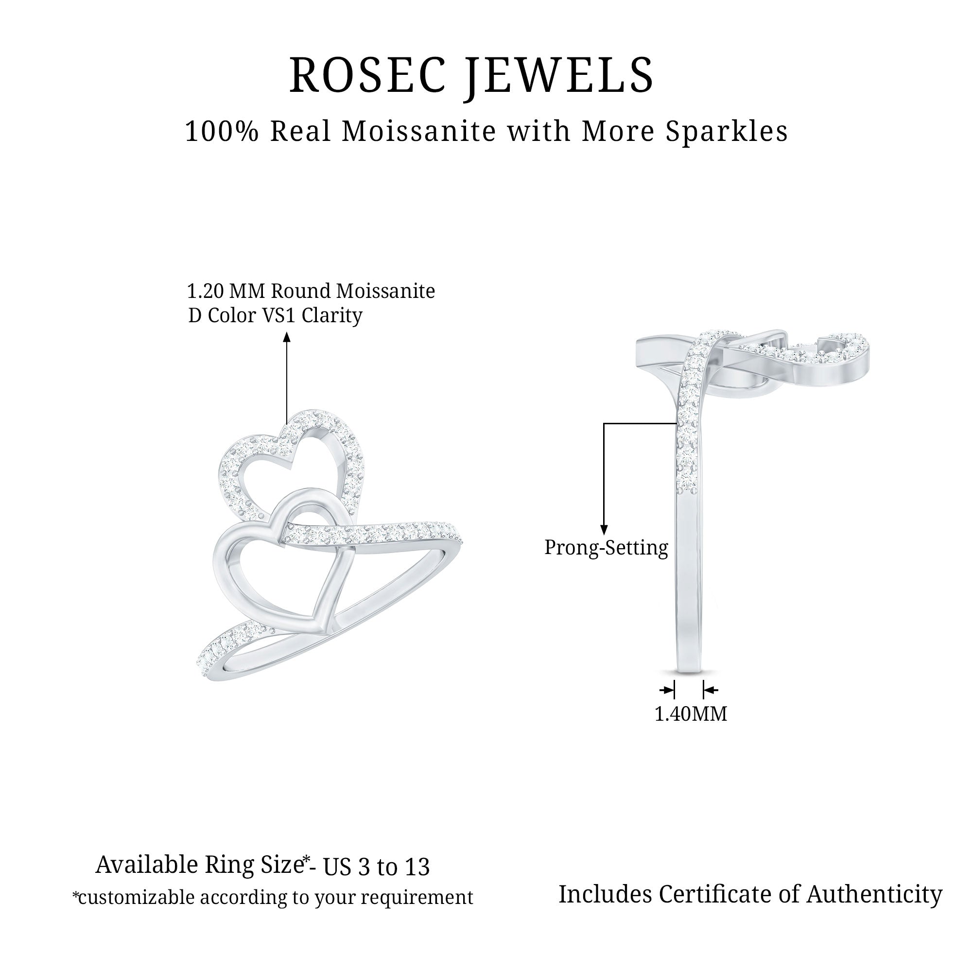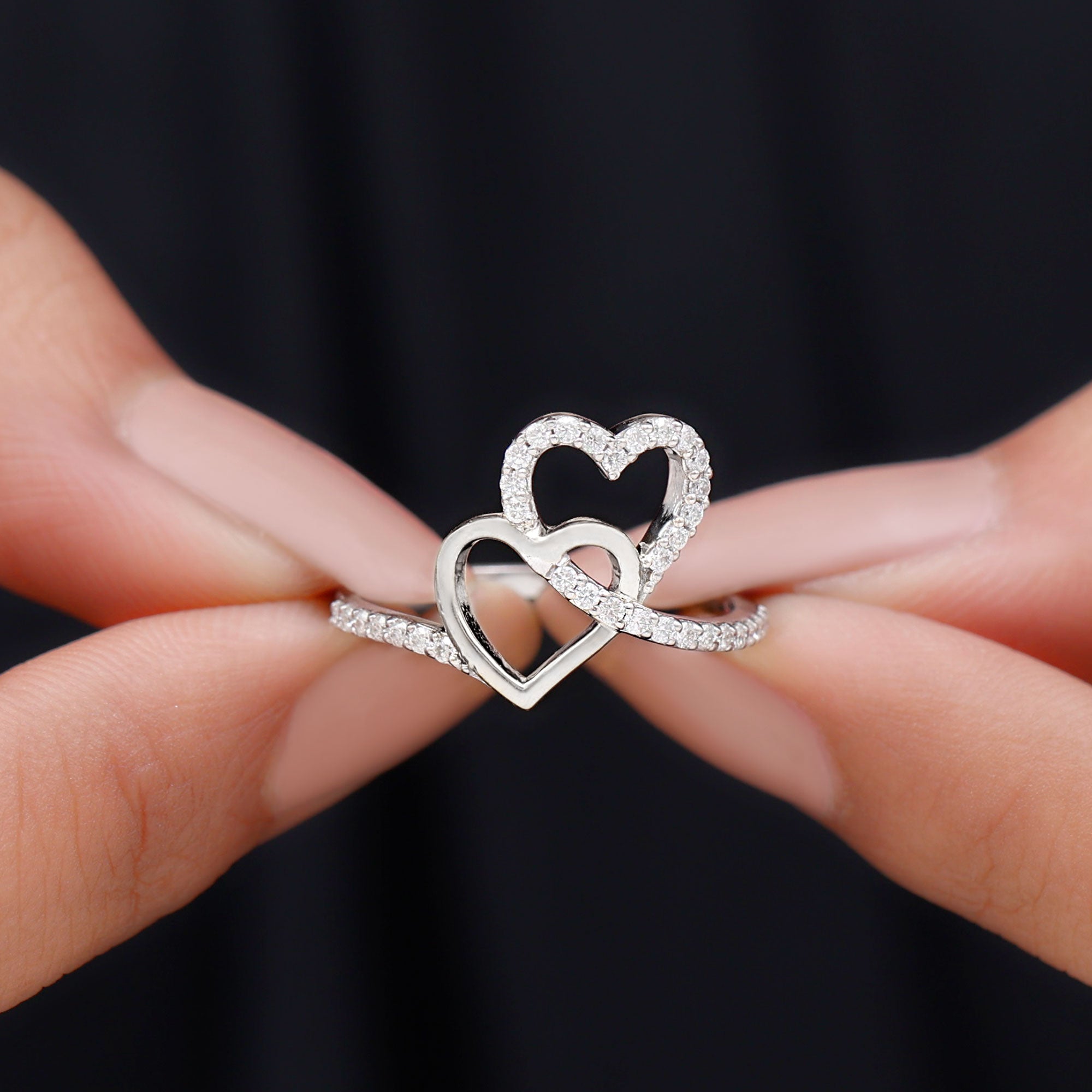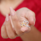1/2 CT Moissanite Interlock Twin Heart Ring in Gold