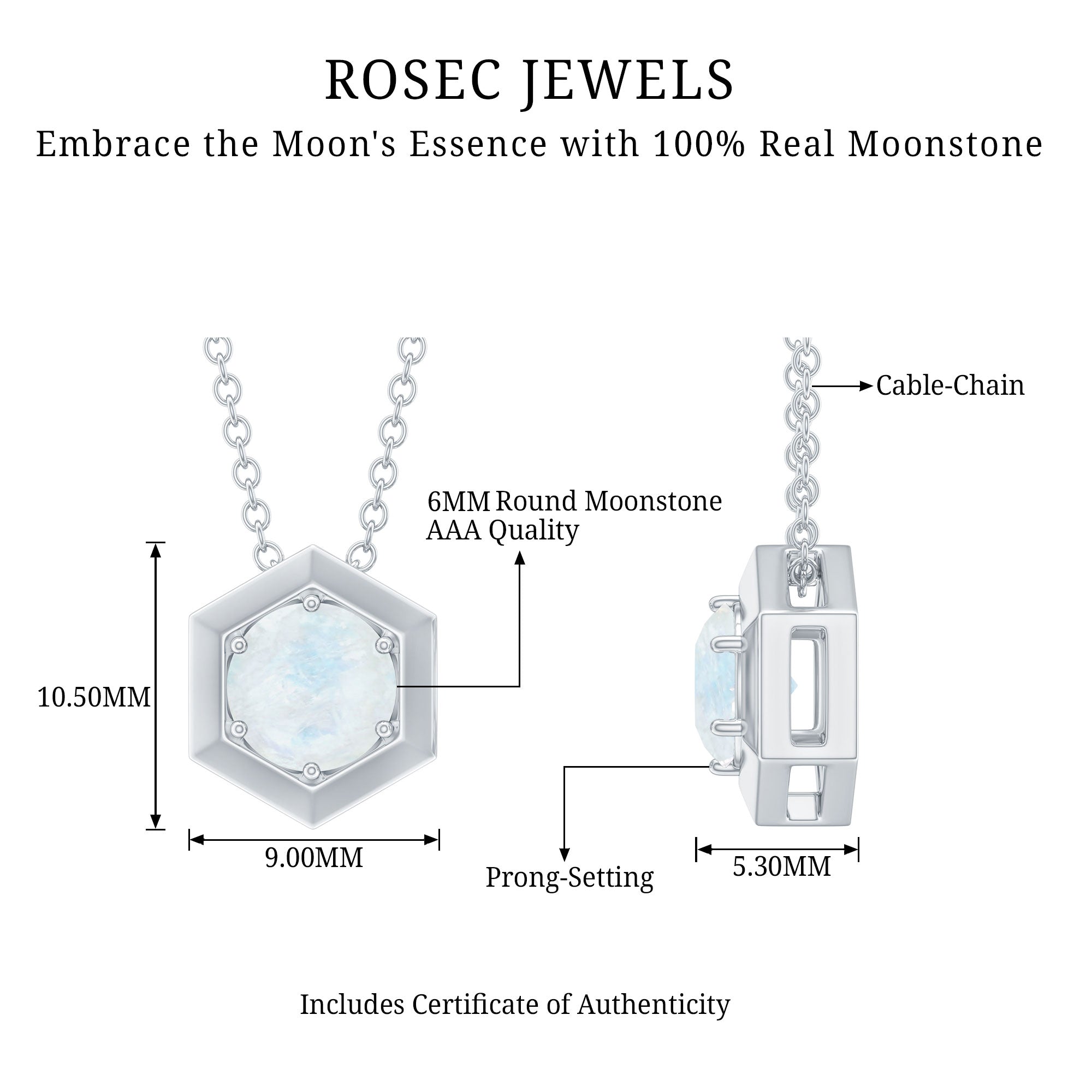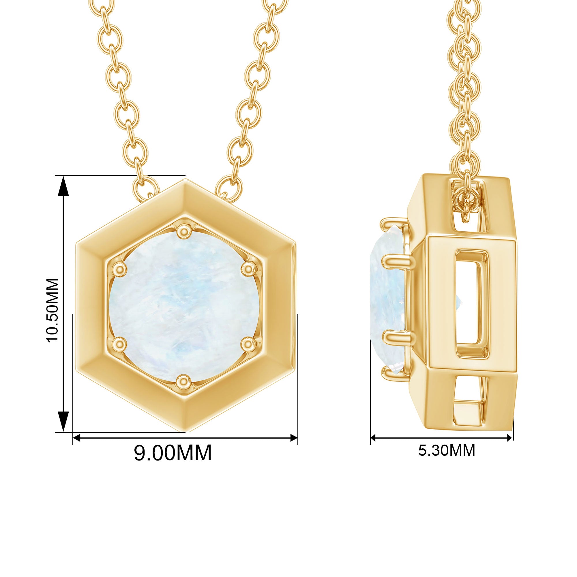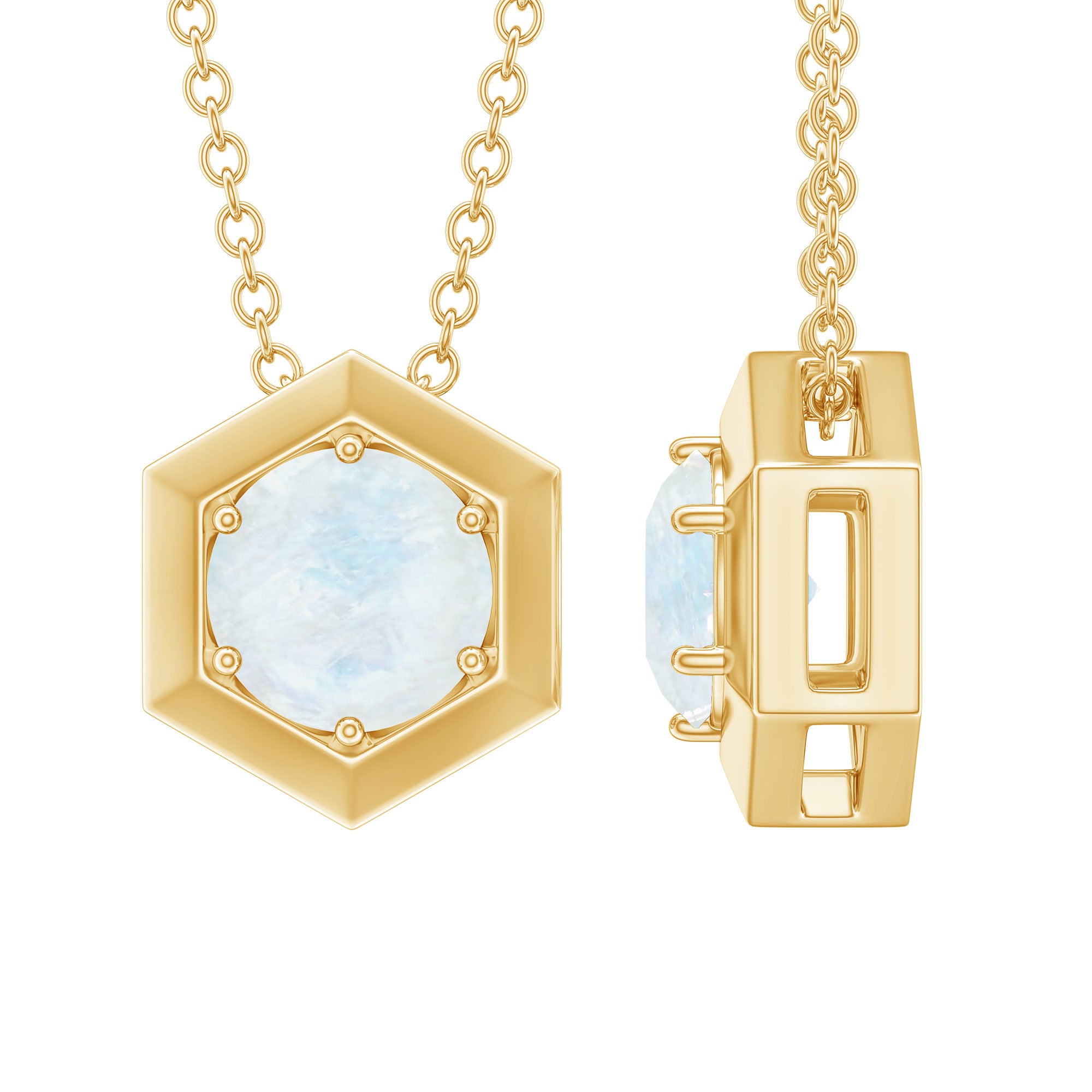 1/2 CT Moonstone Solitaire and Gold Hexagon Pendant Necklace