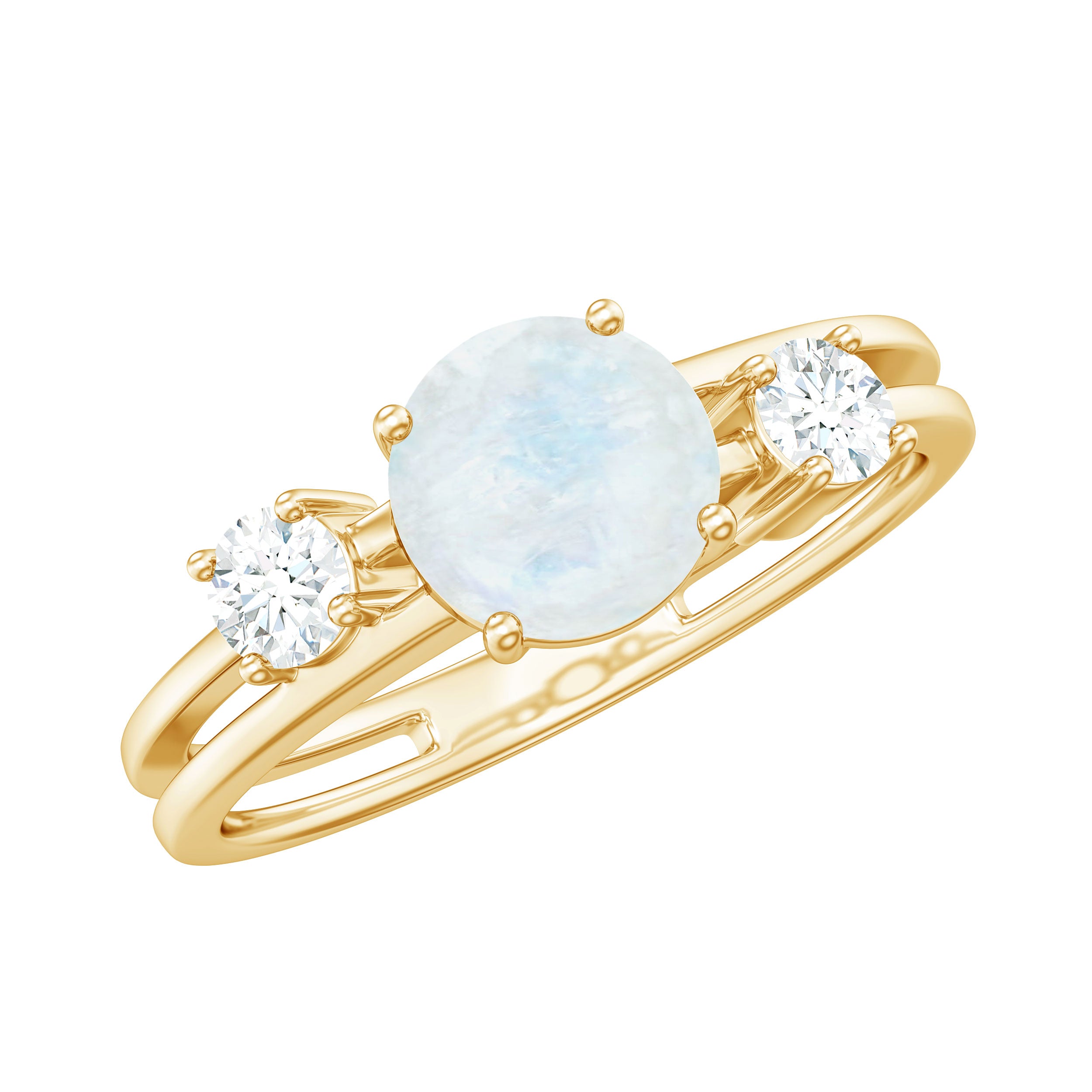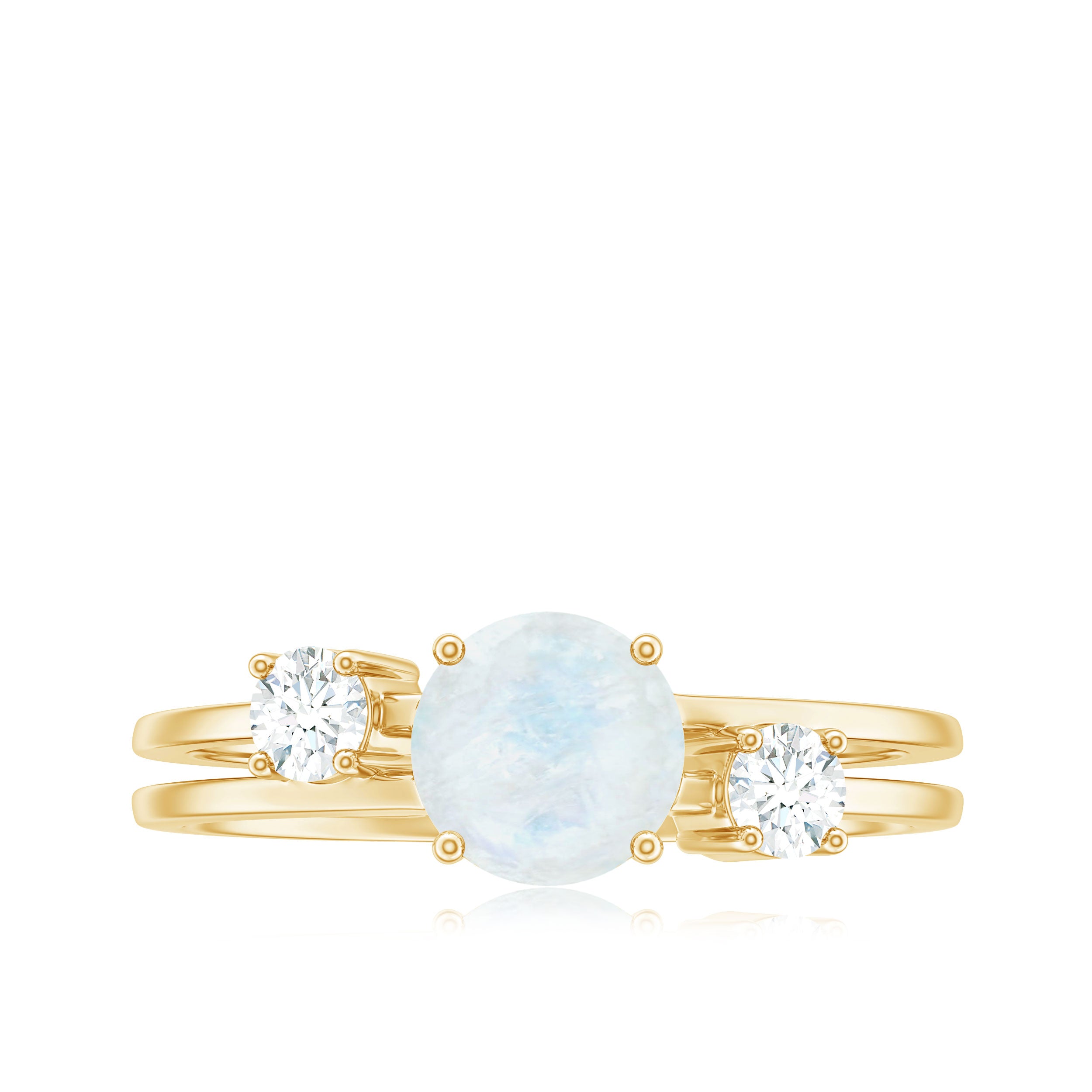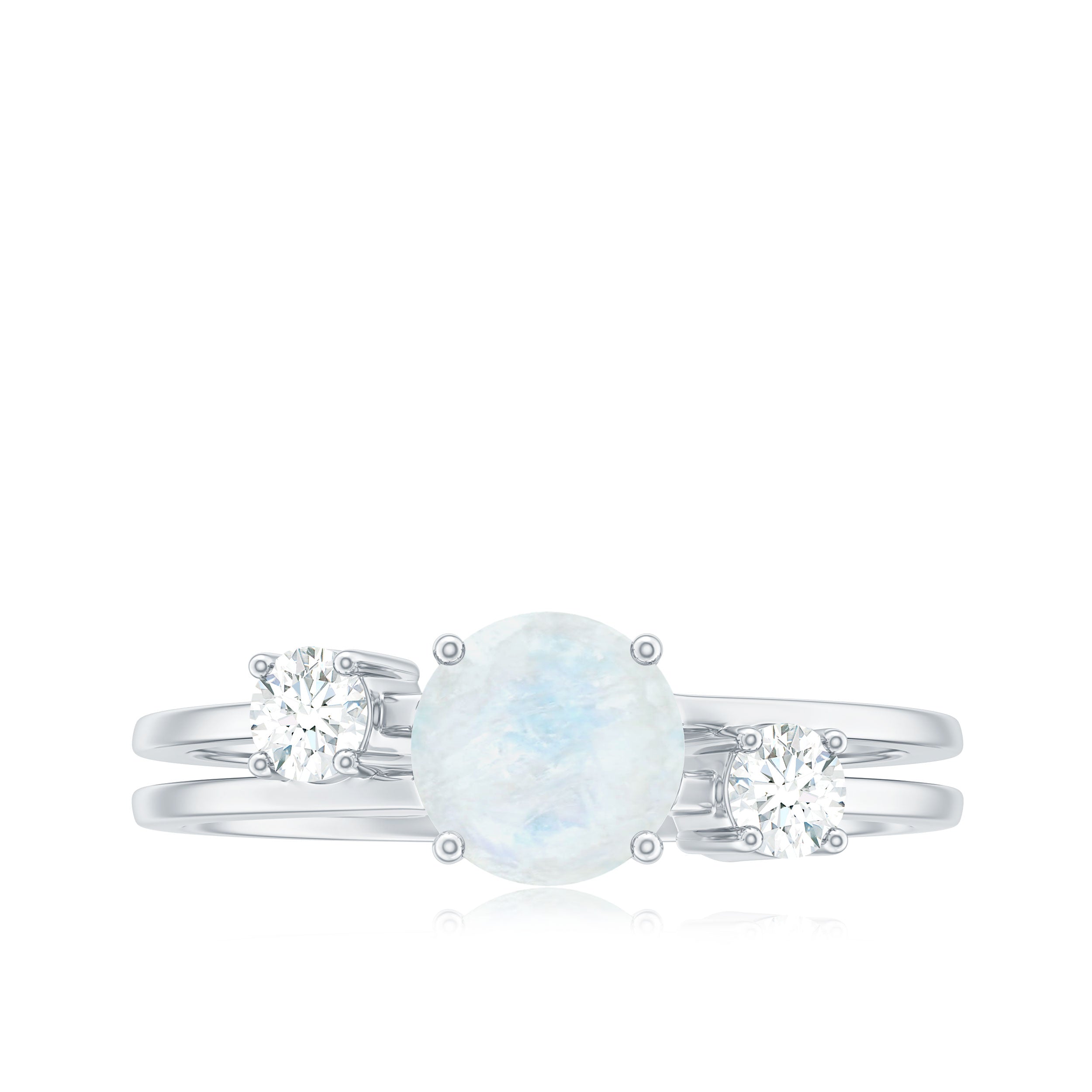 1/2 CT Moonstone Solitaire Double Band Ring with Diamond