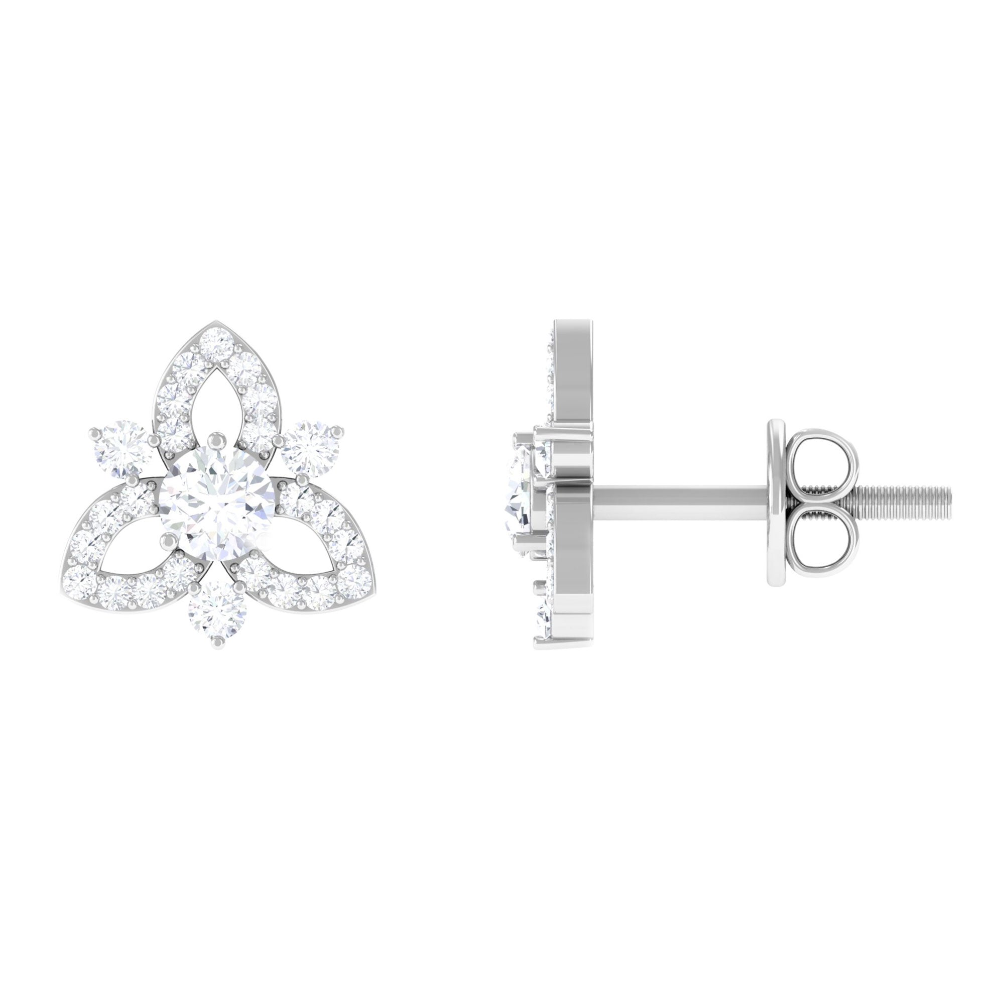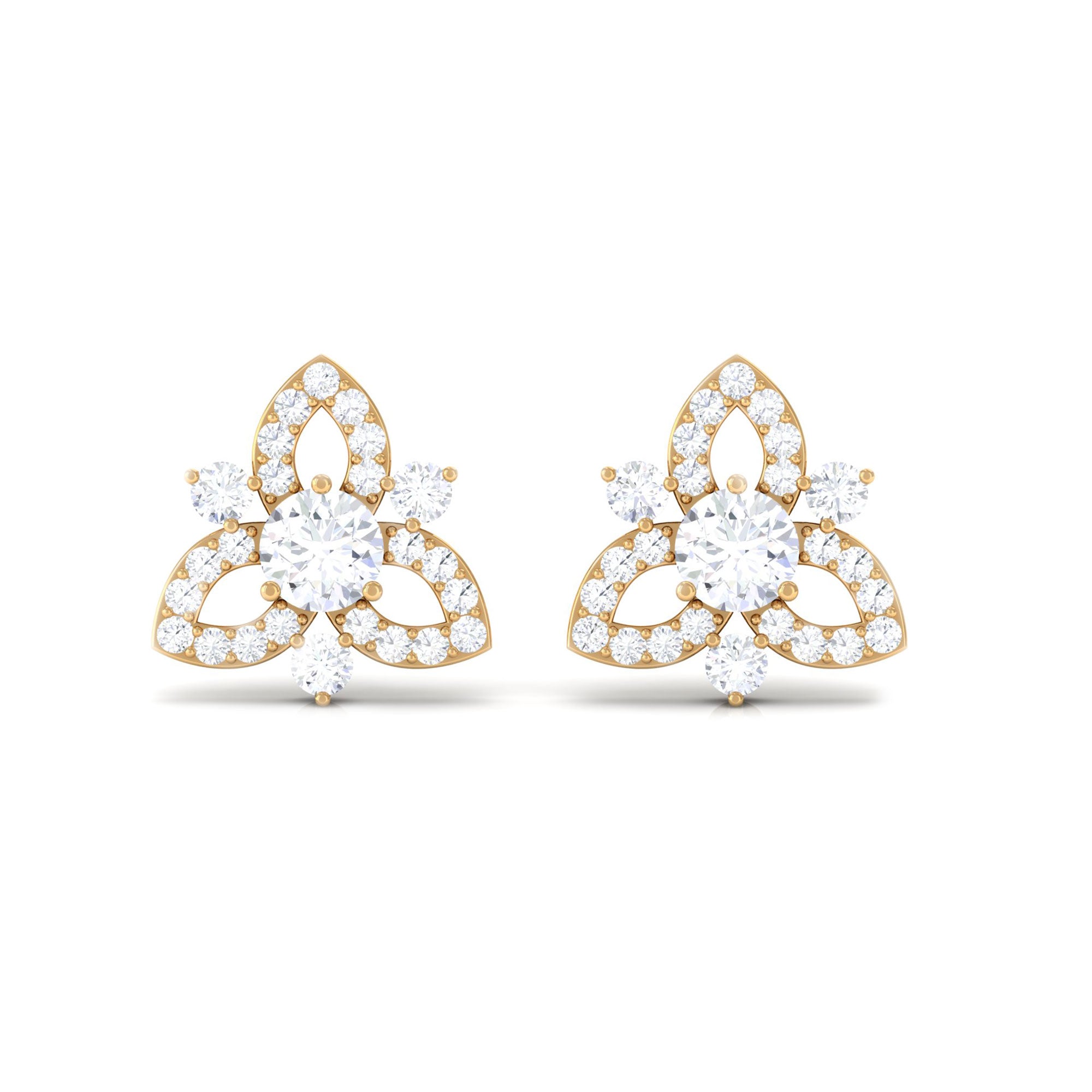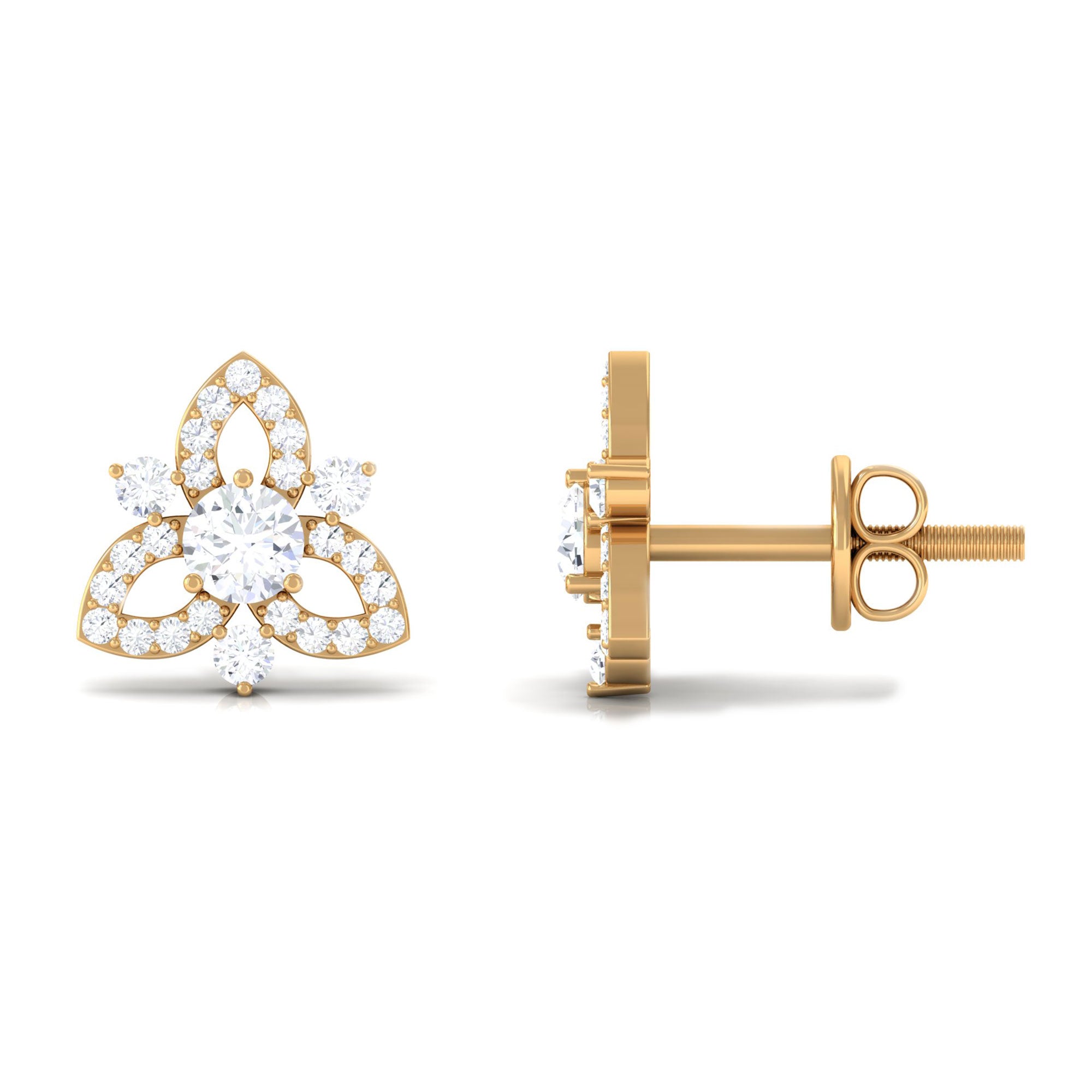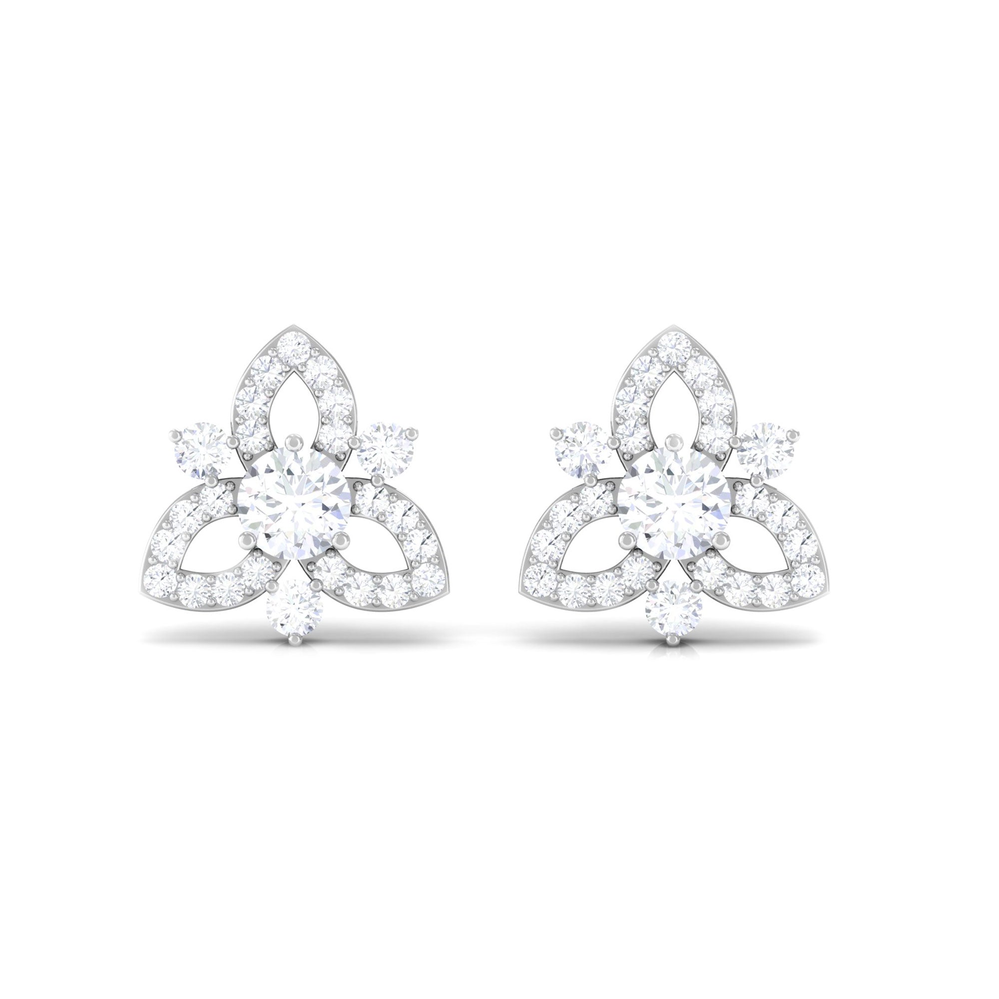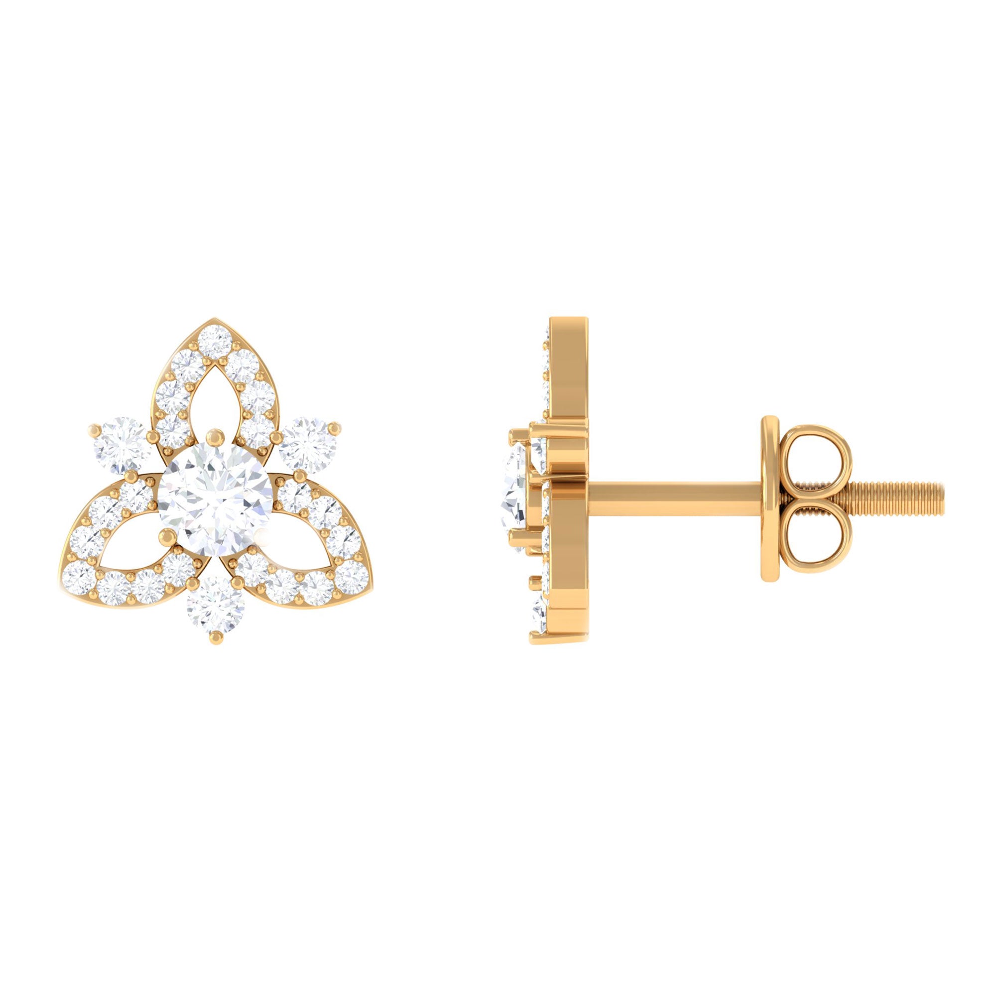 1/2 CT Natural Diamond Flower Stud Earrings in Gold