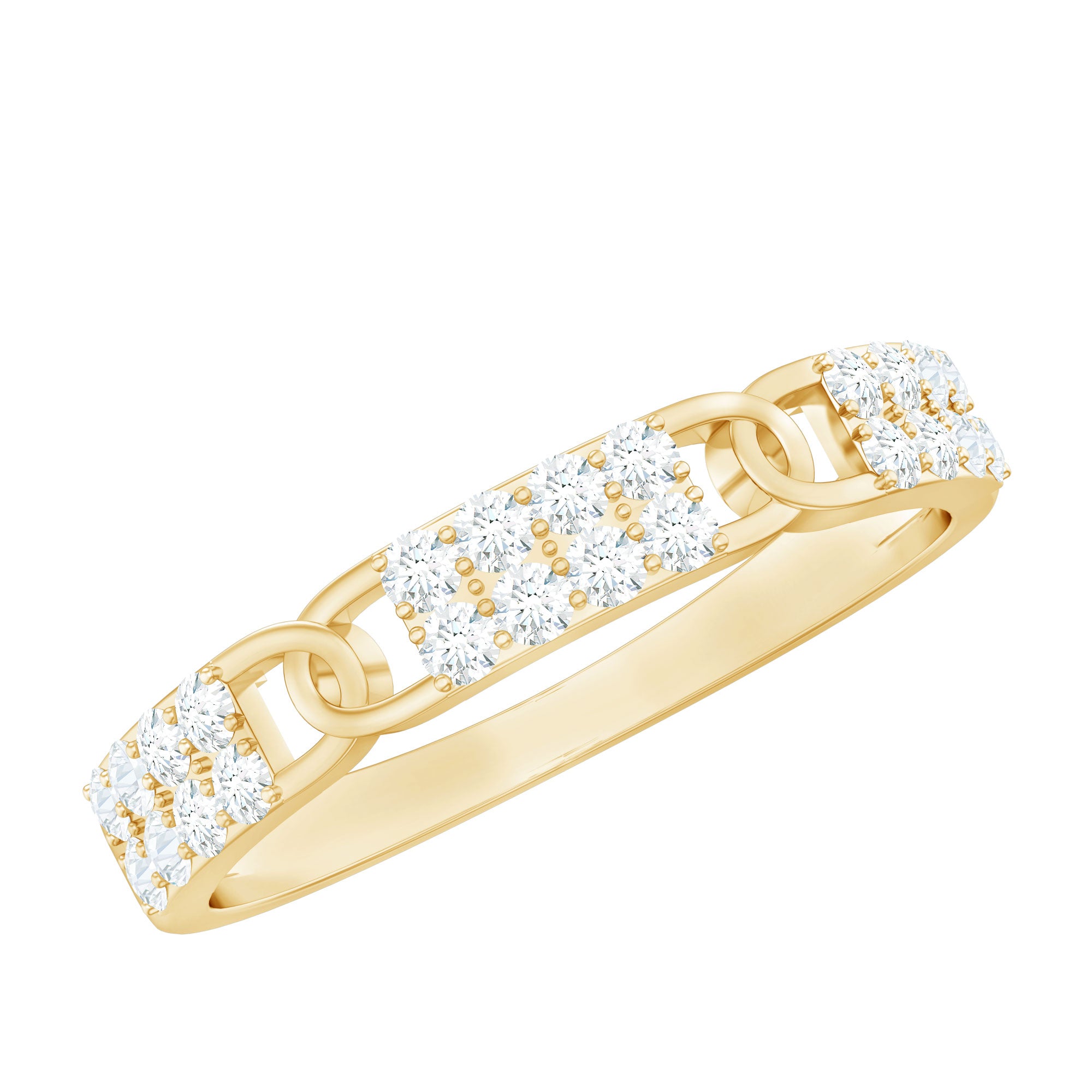 Impress the one you love with this gorgeous Interlock Band Ring featuring sparkling Round Shape Diamond secured in Pave Setting. The elegant and unique Diamond Band Ring will sparkle forever. So dont wait, get this alluring Wedding Band Ring for your special one and make her feel like a princess.