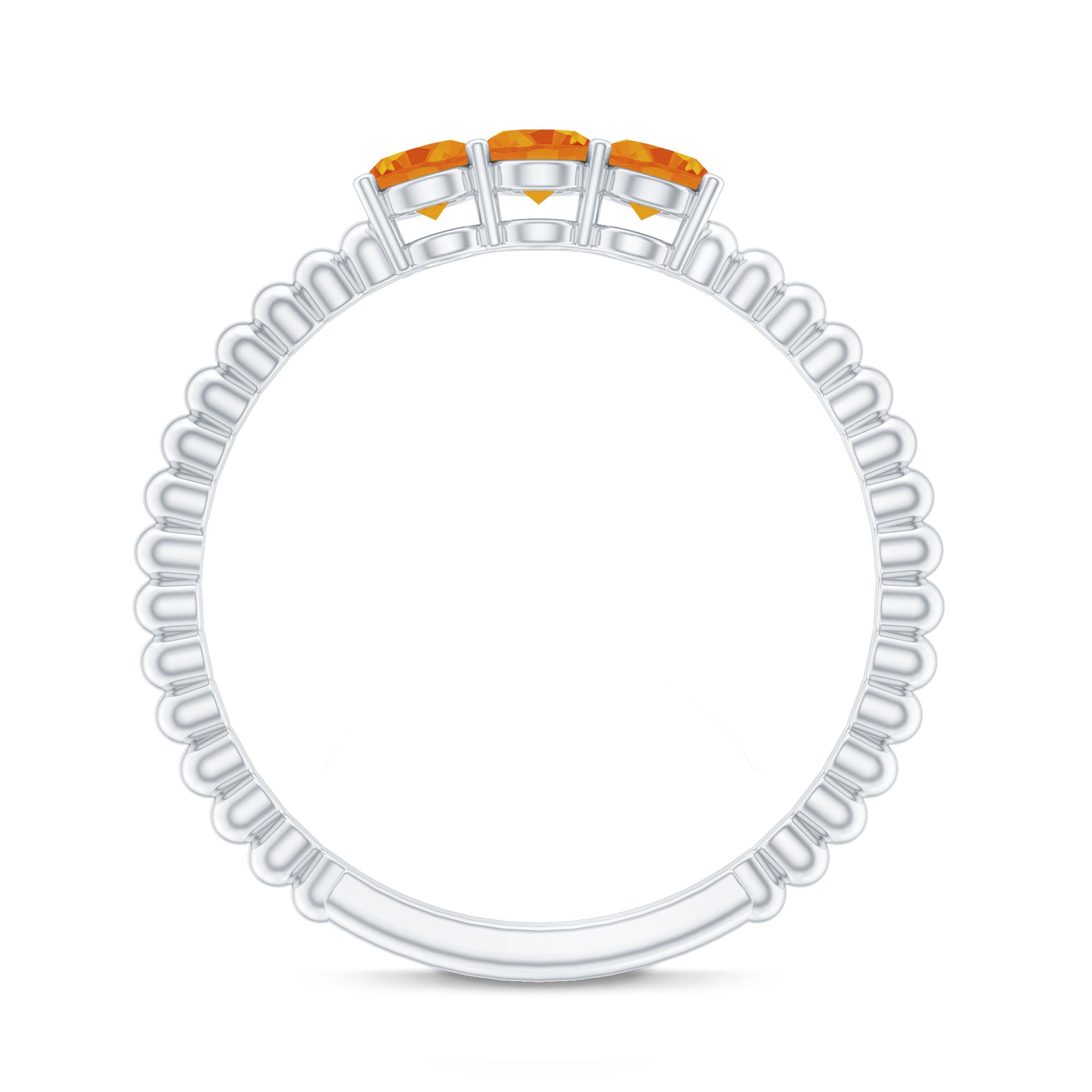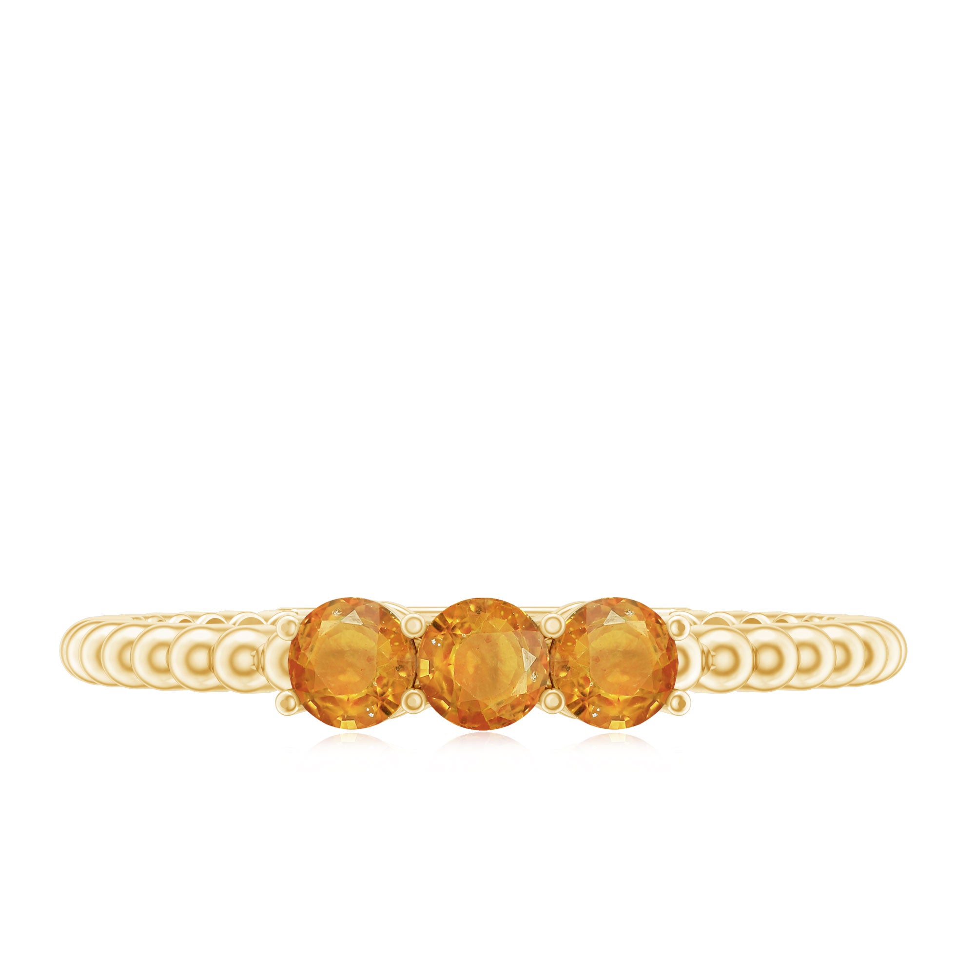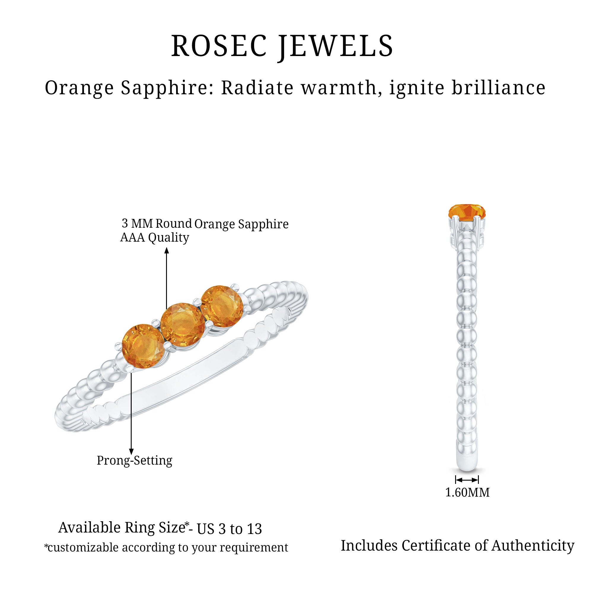 Express your love to your beloved with this lovely Three Stone Promise Ring adorned with Round Cut Orange Sapphire in Prong Setting. This Promise Ring is crafted with Solid Gold with Beaded Details for a charming appeal.
