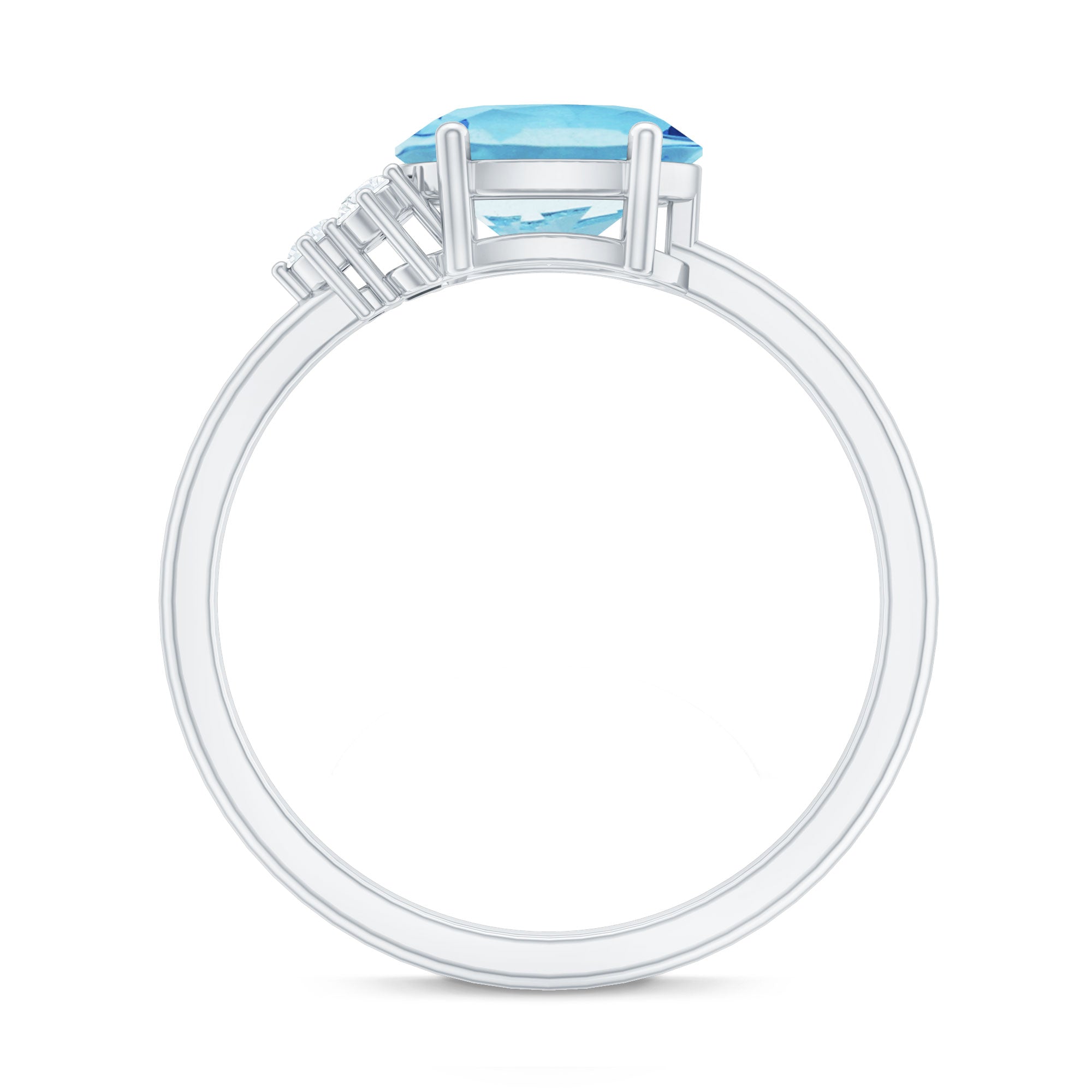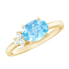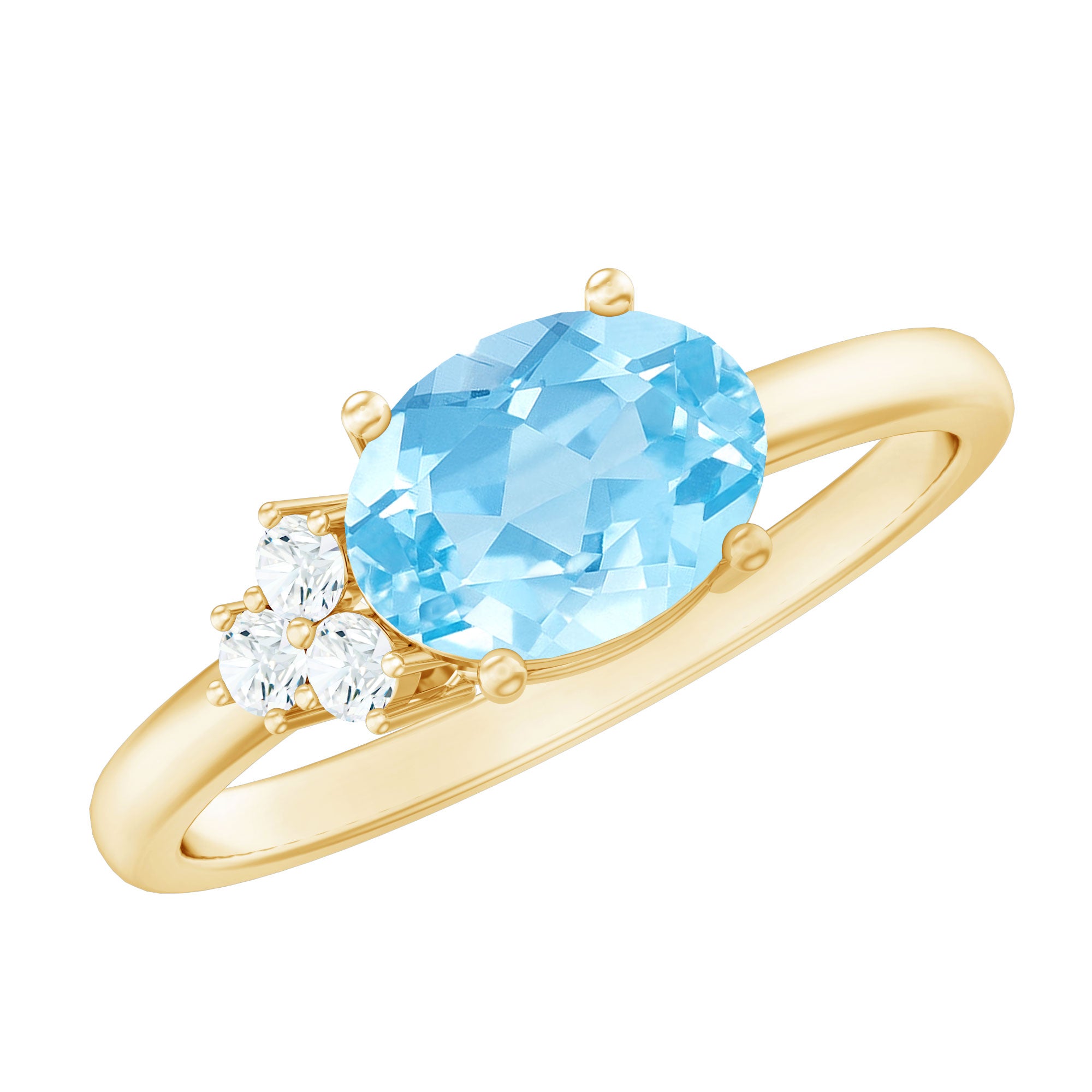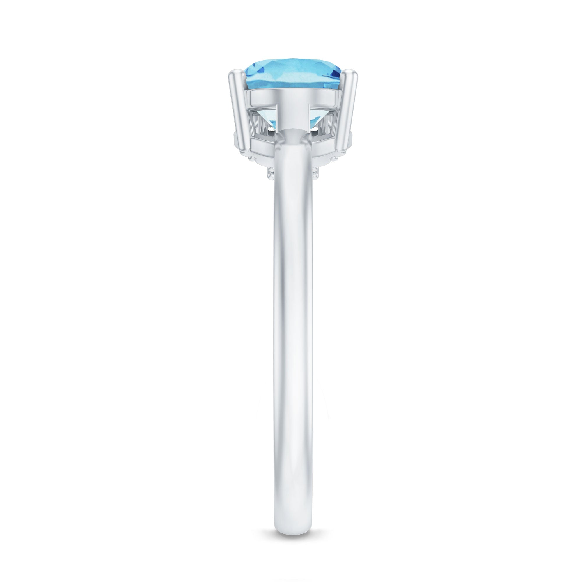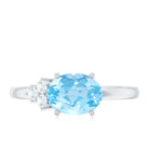 1/2 CT Oval Cut Aquamarine Promise Ring with Diamond Trio