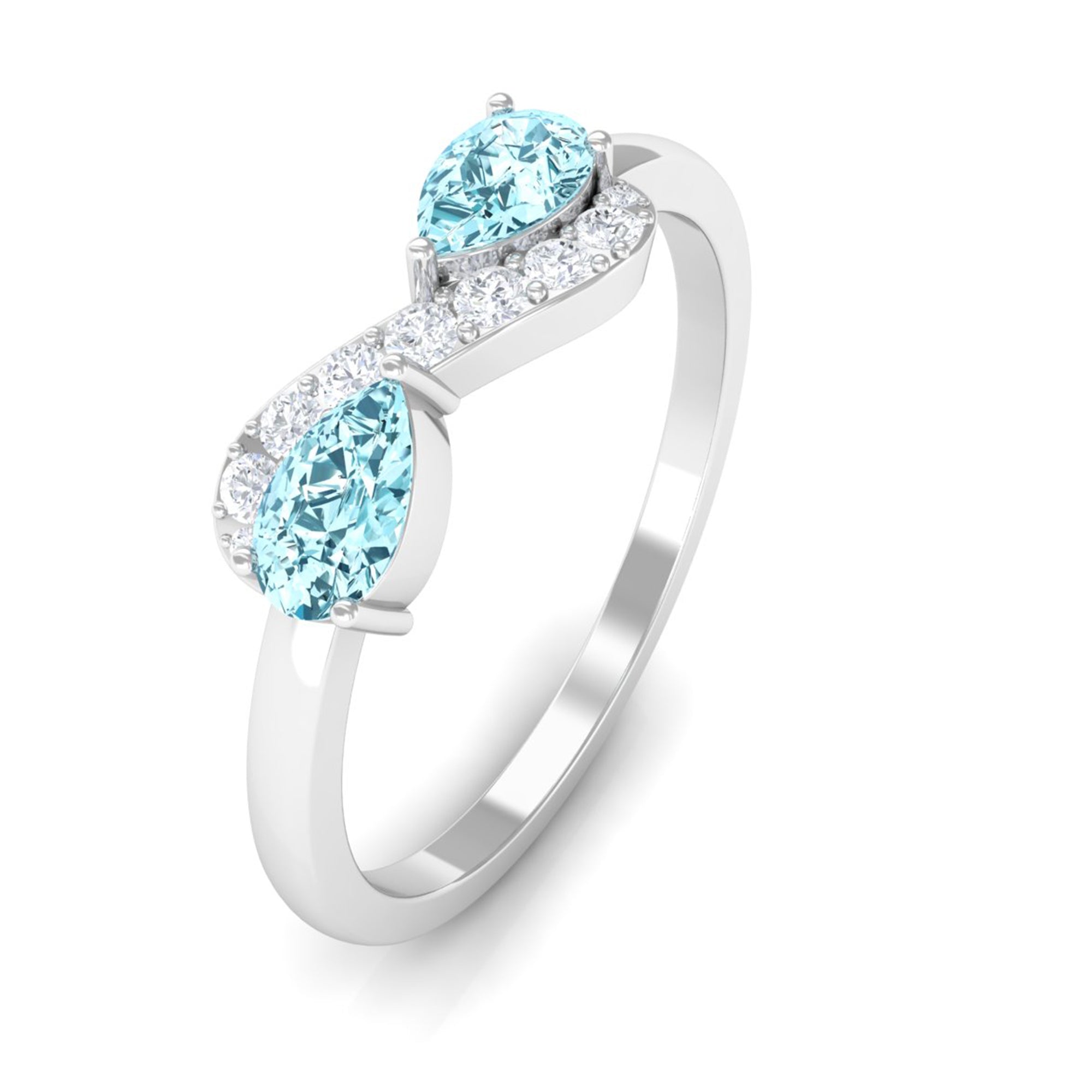 Add sparkle to your relationship by presenting this amazing Infinity Promise Ring to her. This Promise Ring is crafted with Pear Cut Aquamarine and Round Diamond in a prong setting which makes this ring look glamorous with every outfit, get your hands on this Infinity ring today before its too late.