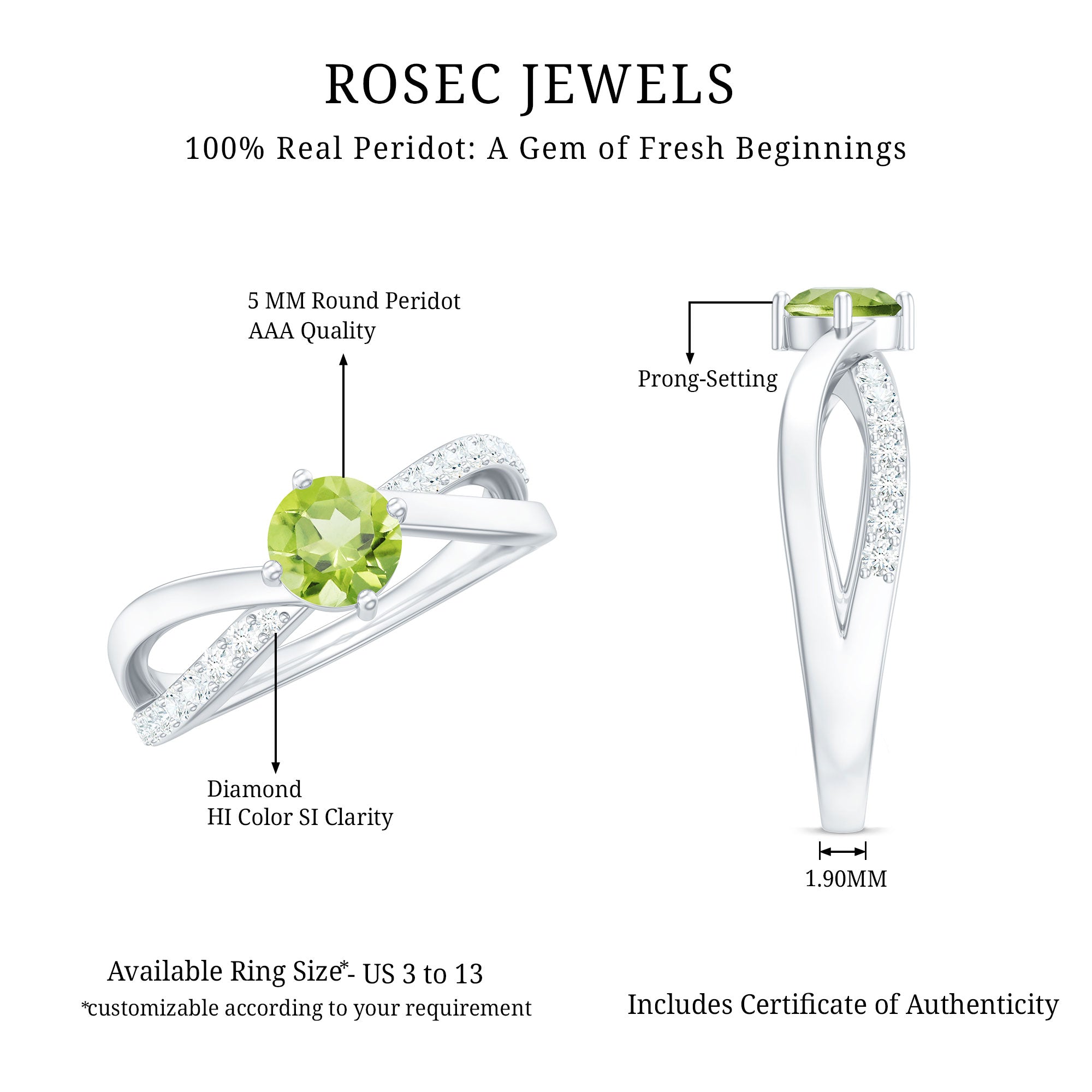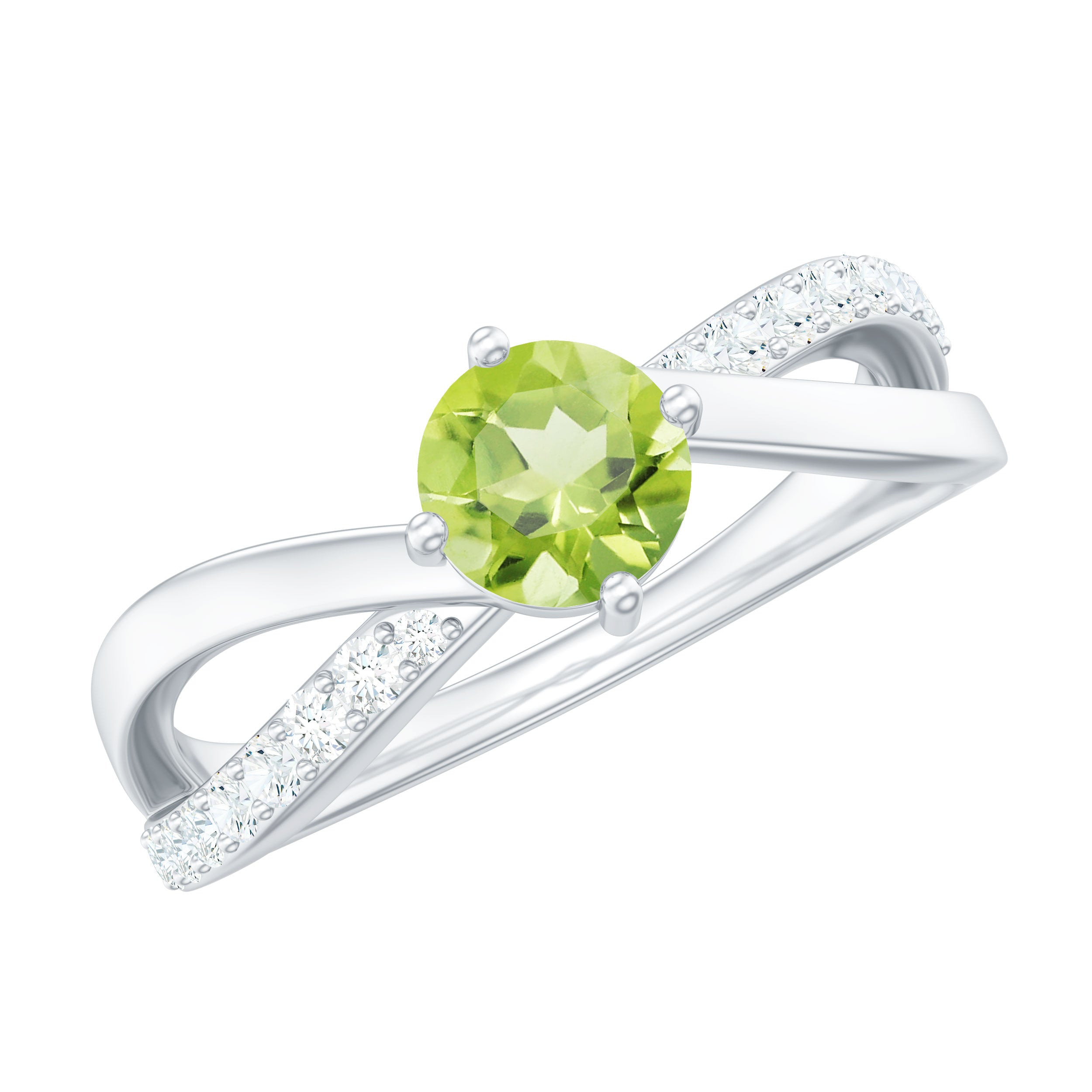 1/2 CT Peridot Solitaire and Diamond Infinity Ring