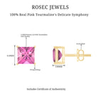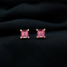 1/2 CT Princess Cut Solitaire Stud Earrings with Pink Tourmaline