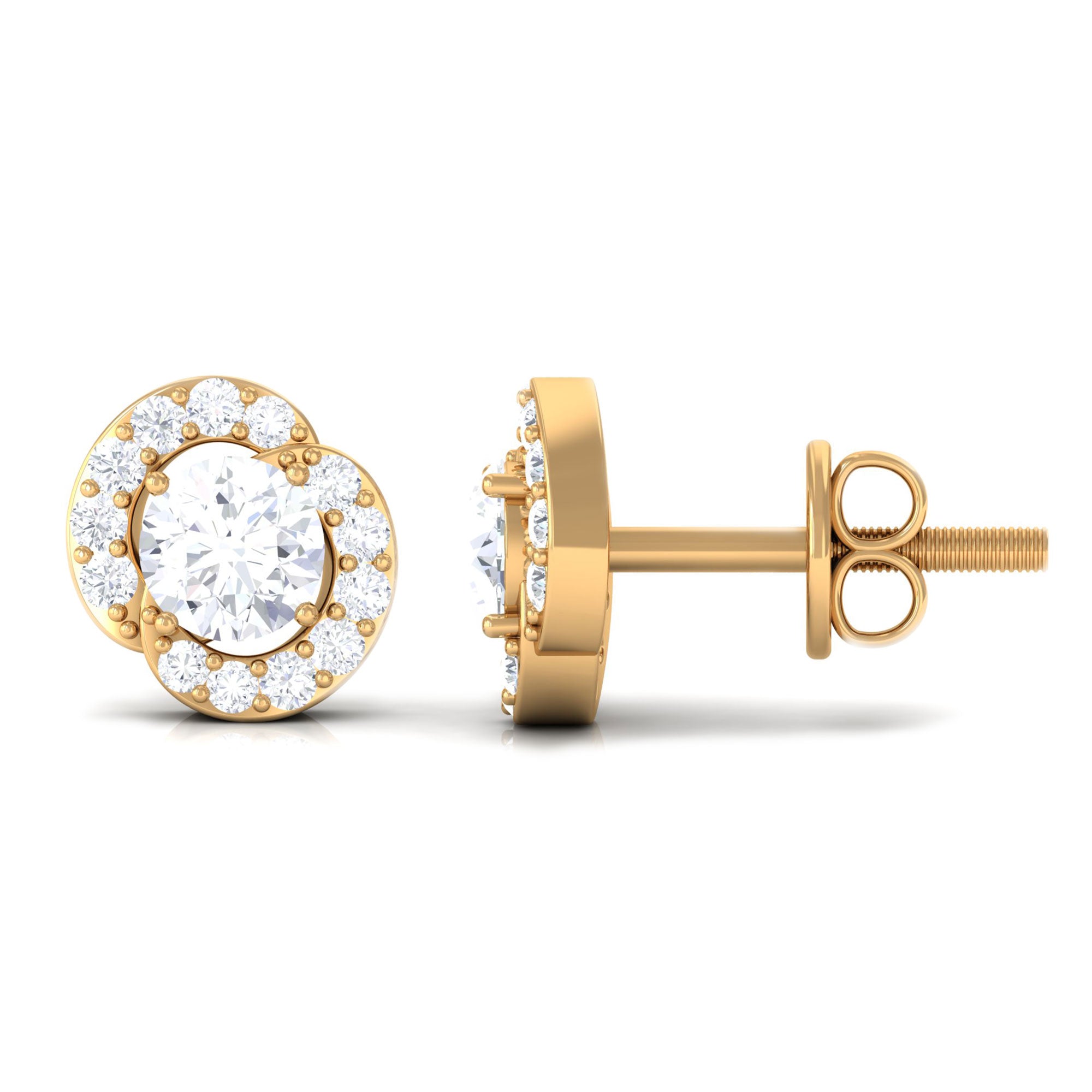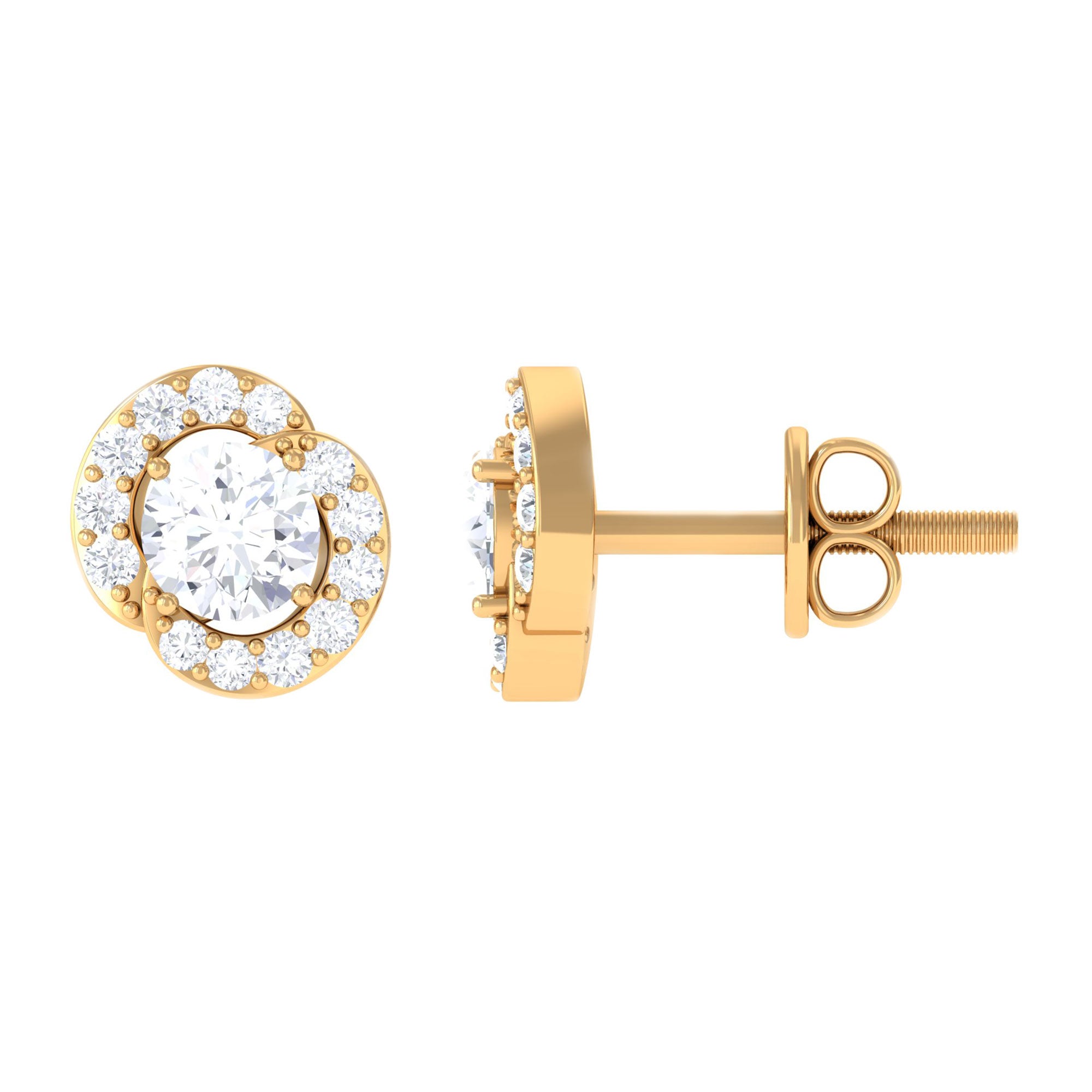 Elegant and effortlessly sparkling, these Diamond Stud Earrings are designed to bring a touch of brilliance to your everyday style. Each earring features a 3 mm Round Shape Diamond set in Prong Setting, surrounded by a Halo of smaller Diamond stones, creating a radiant glow that catches the light beautifully with every movement. Their classic yet modern design makes them a versatile accessory, perfect for elevating casual looks or adding a subtle sparkle to more formal outfits. Crafted with a secure Screw Back Closure, these Diamond Studs ensure comfortable wear from morning to night, making them ideal for workdays, brunches, dinners or special events. Arriving in a signature jewelry box, these Diamond Earrings are a thoughtful choice for birthdays, anniversaries, holidays or simply as a surprise for someone special. These Real Diamond Earrings are a sparkling reminder of beauty in the everyday and a lasting addition to any jewelry collection.