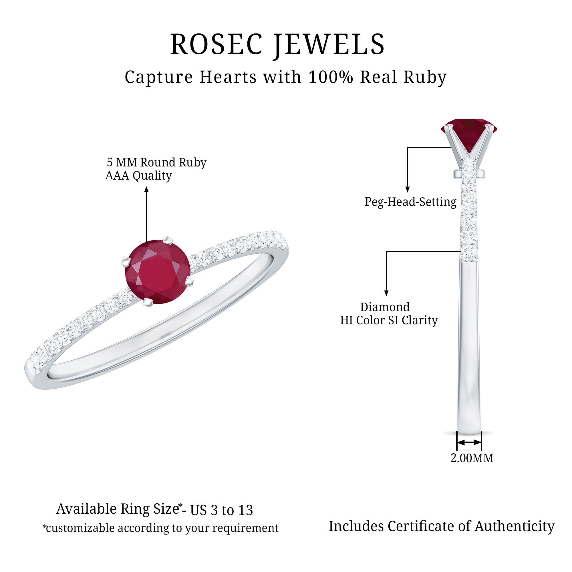1/2 CT Round Ruby Solitaire Promise and Diamond Ring