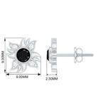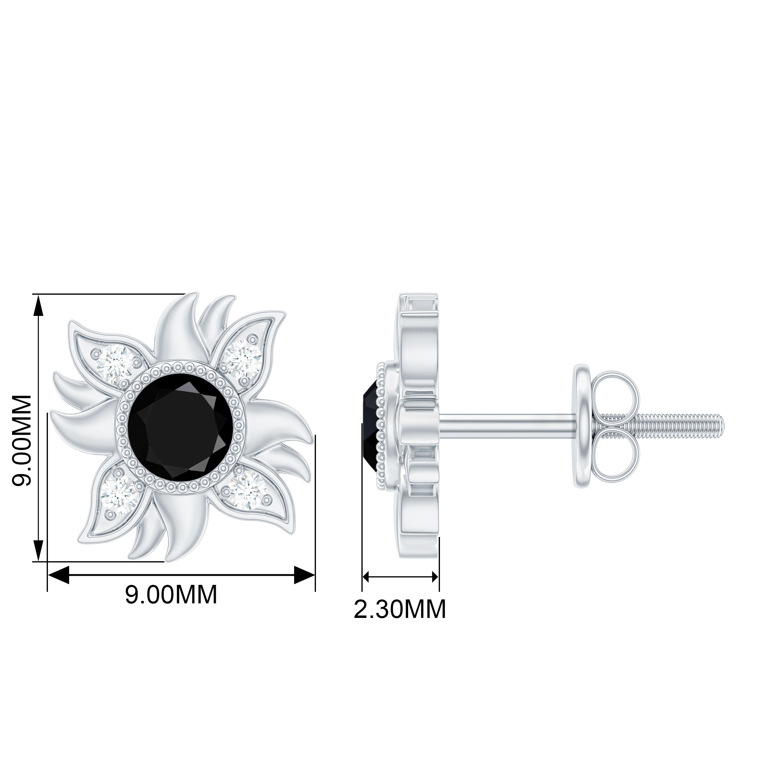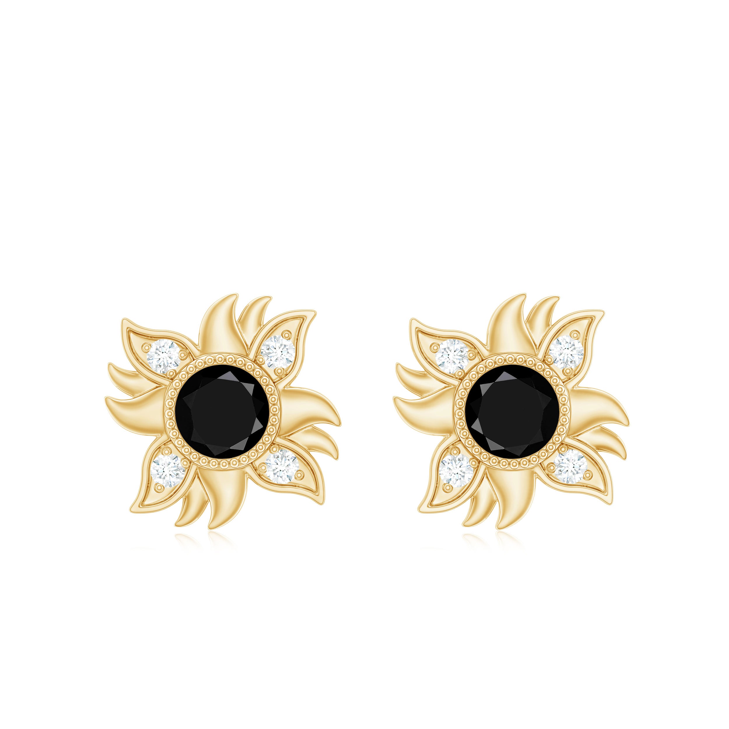 1/2 CT Round Shape Black Onyx and Diamond Sunburst Stud Earrings