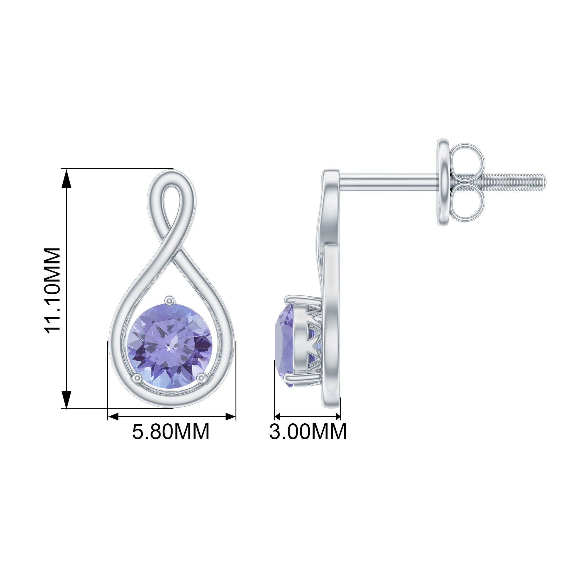 1/2 CT Round Shape Tanzanite Infinity Stud Earring for Women