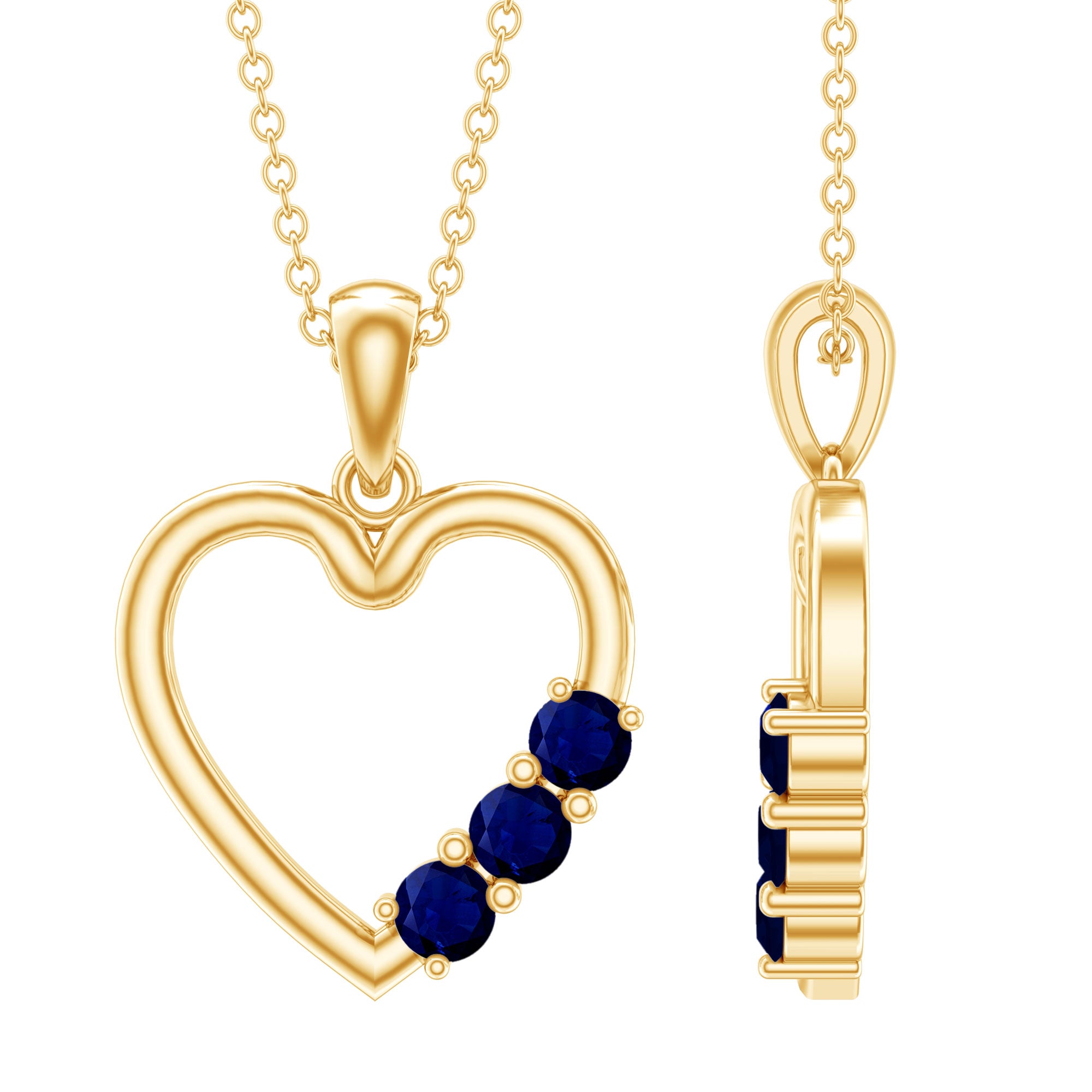 This Gorgeous Gold Heart Pendant is Embellished with Round Shape Blue Sapphire set in Prong setting, This Simple Open Heart Pendant is Composed of Solid Gold, A Perfect Gift for Your Love