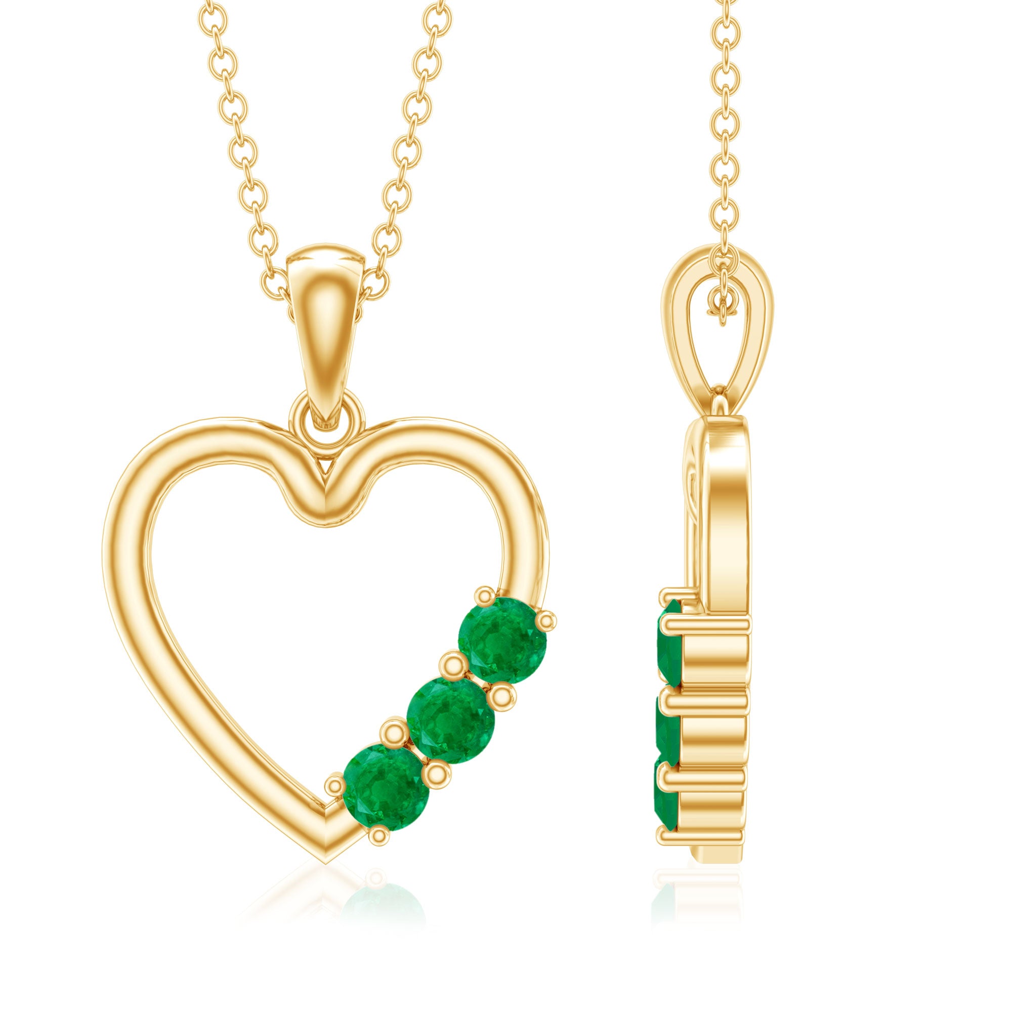 This Gorgeous Gold Heart Pendant is Embellished with Round Shape Emerald set in Prong setting, This Simple Open Heart Pendant is Composed of Solid 10K, 14K, 18K Solid Gold, A Perfect Gift for Your Love