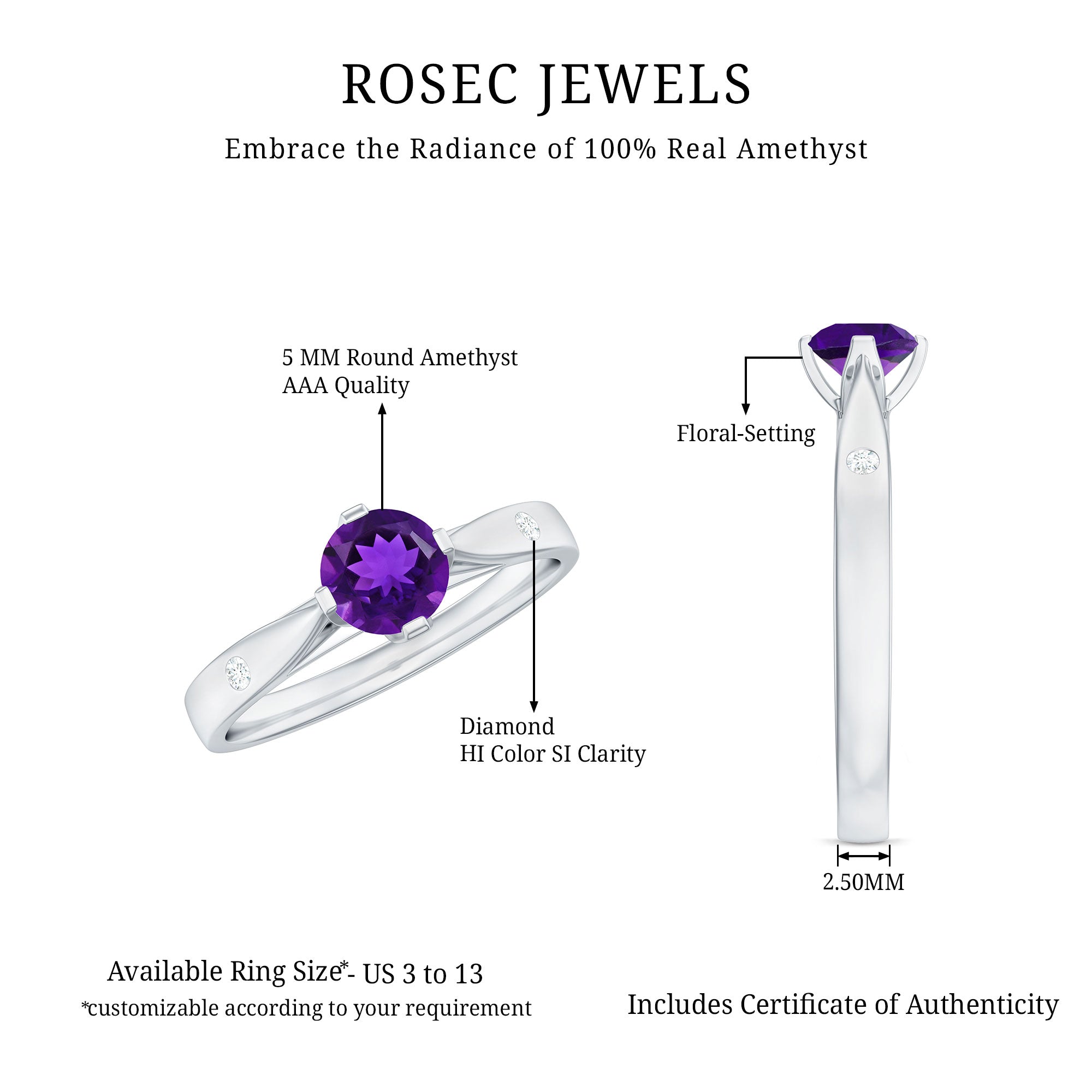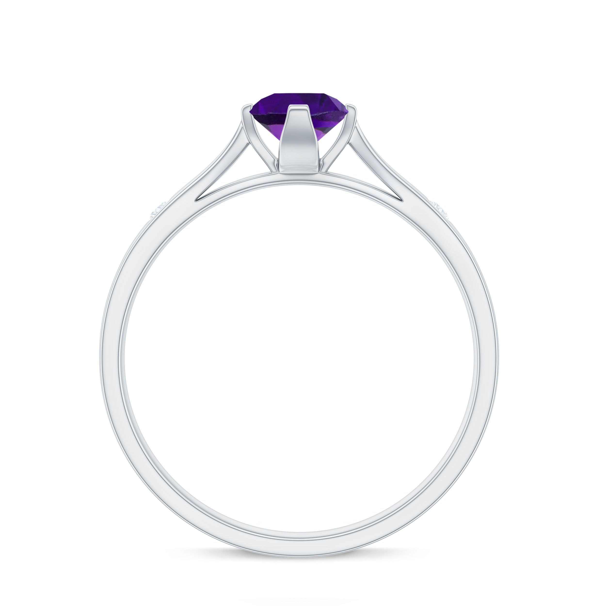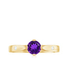 1/2 CT Solitaire Round Shape Amethyst Ring with Diamond