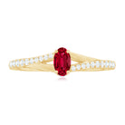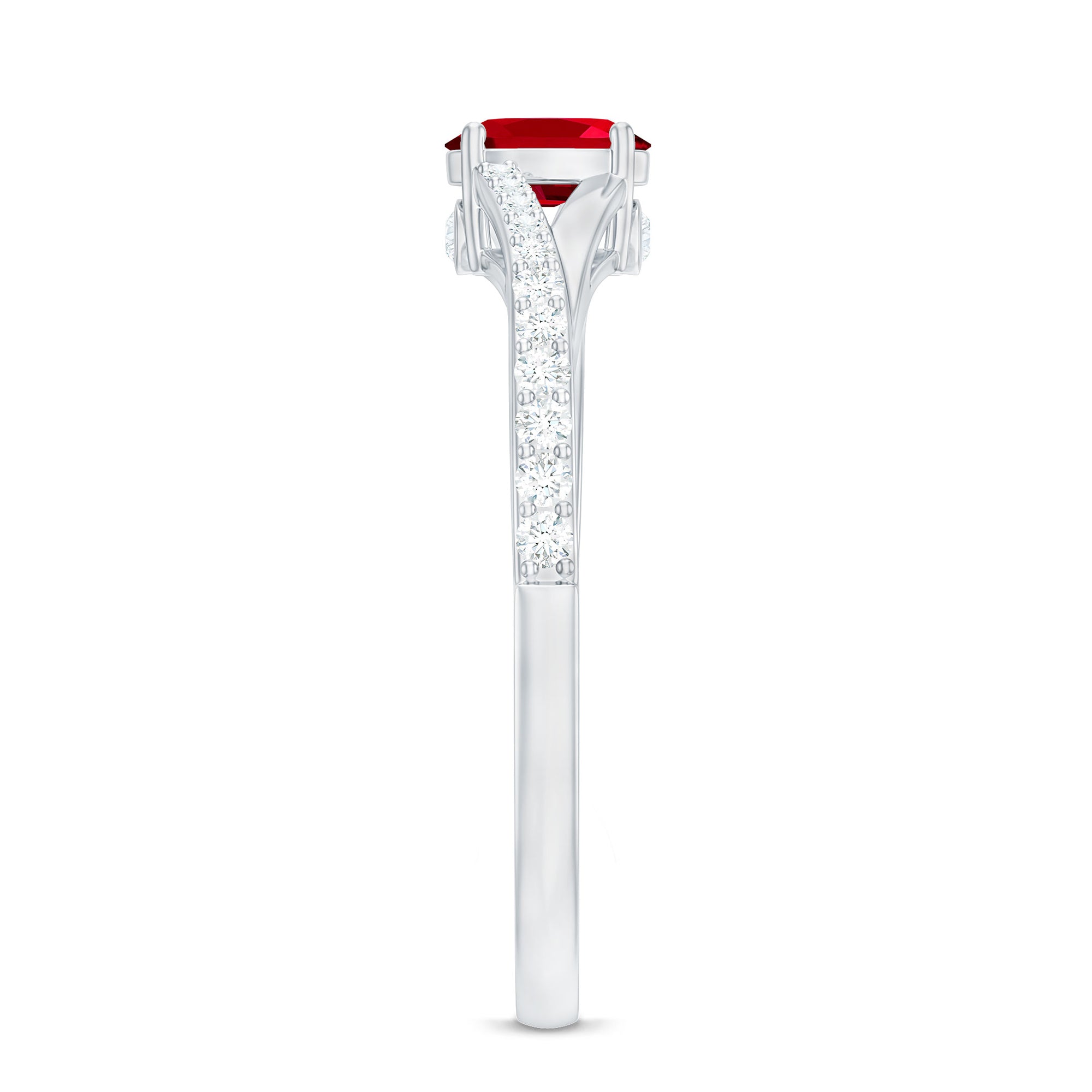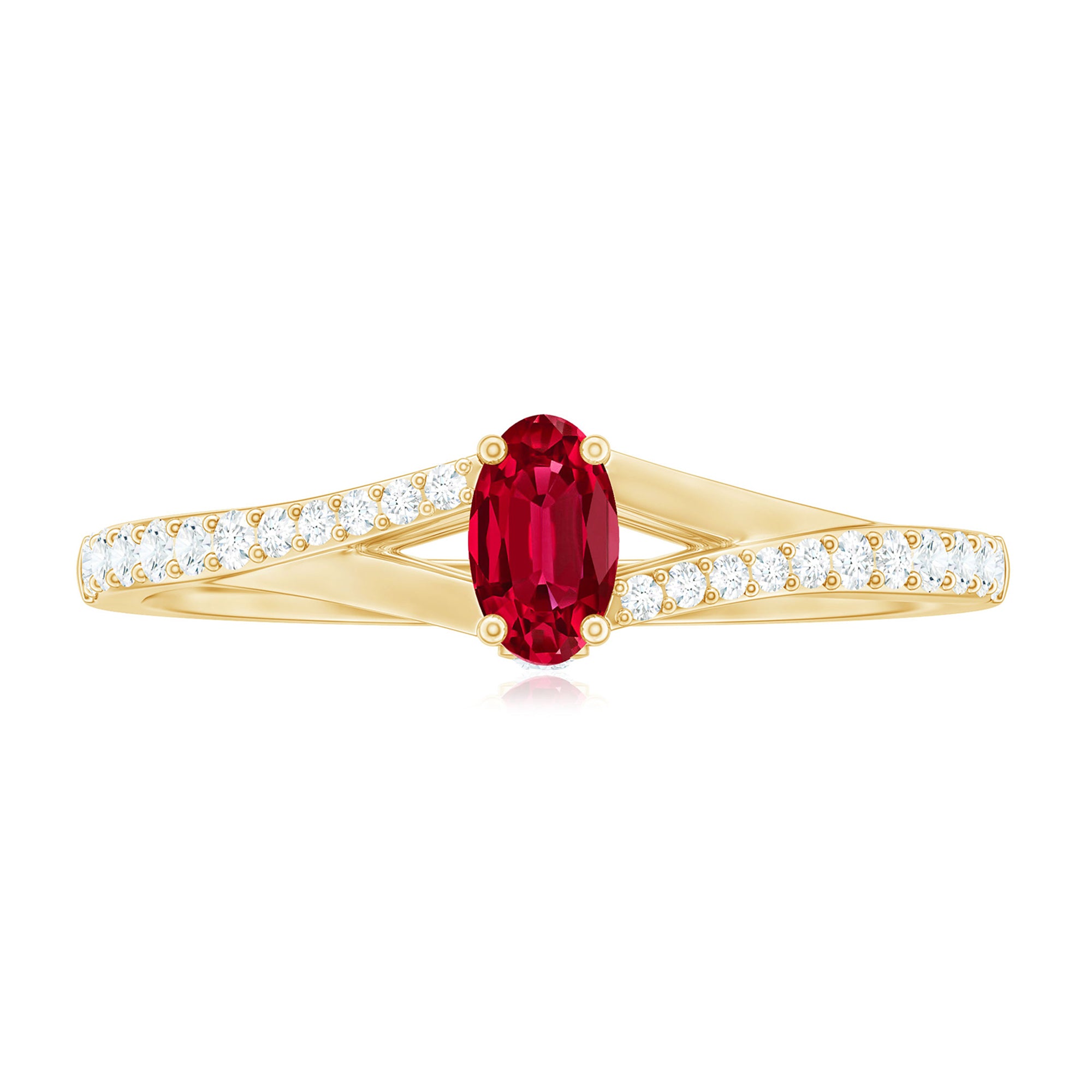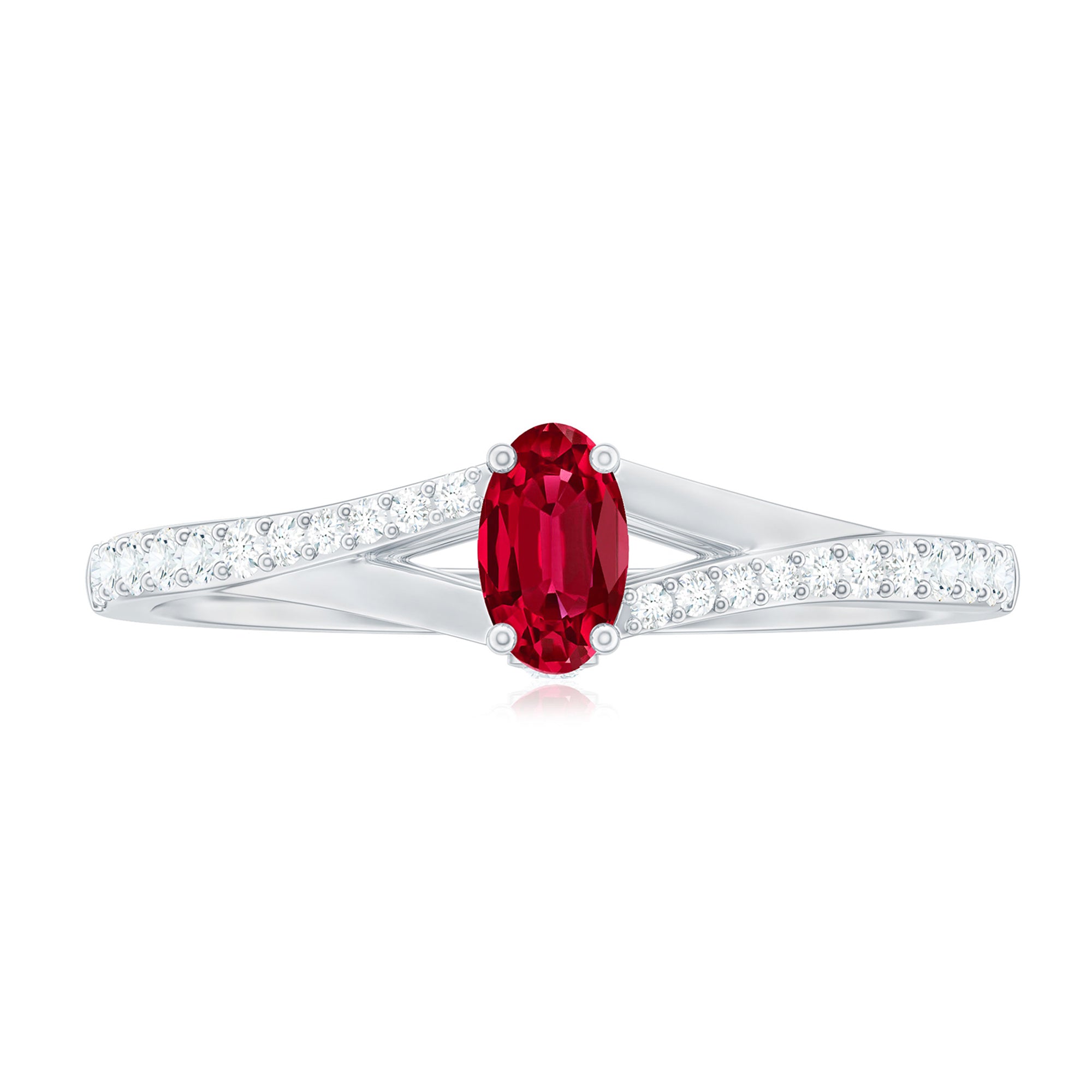 1/2 CT Split Shank Lab Grown Ruby Simple Solitaire Ring with Diamond