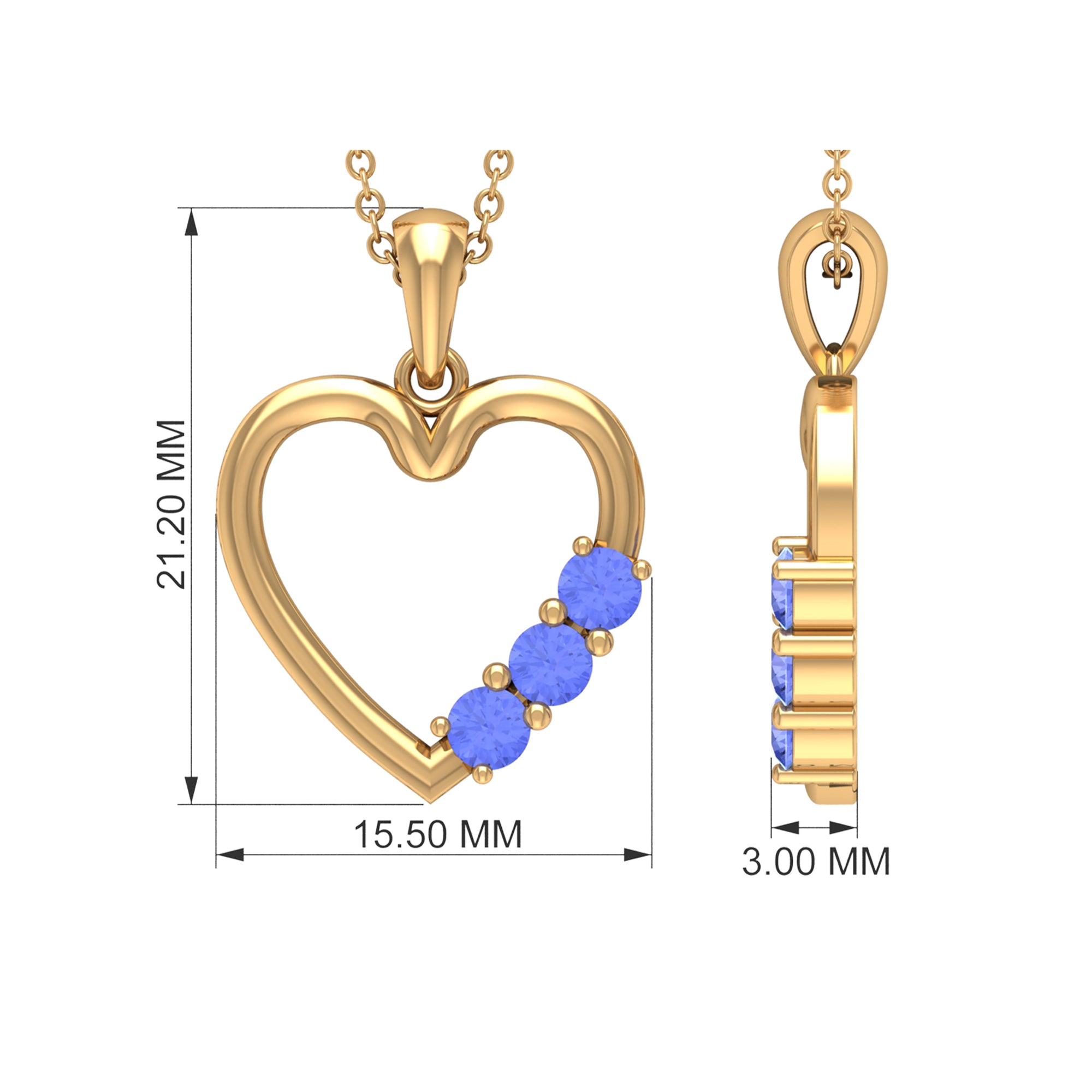 1/2 CT Tanzanite Three Stone Gold Heart Pendant