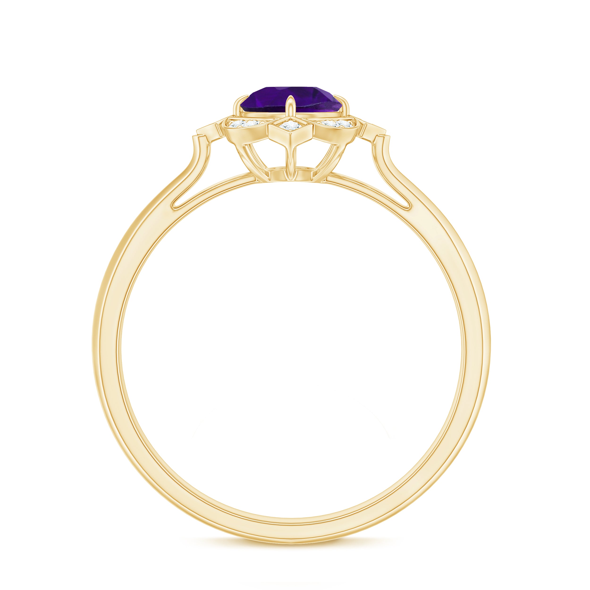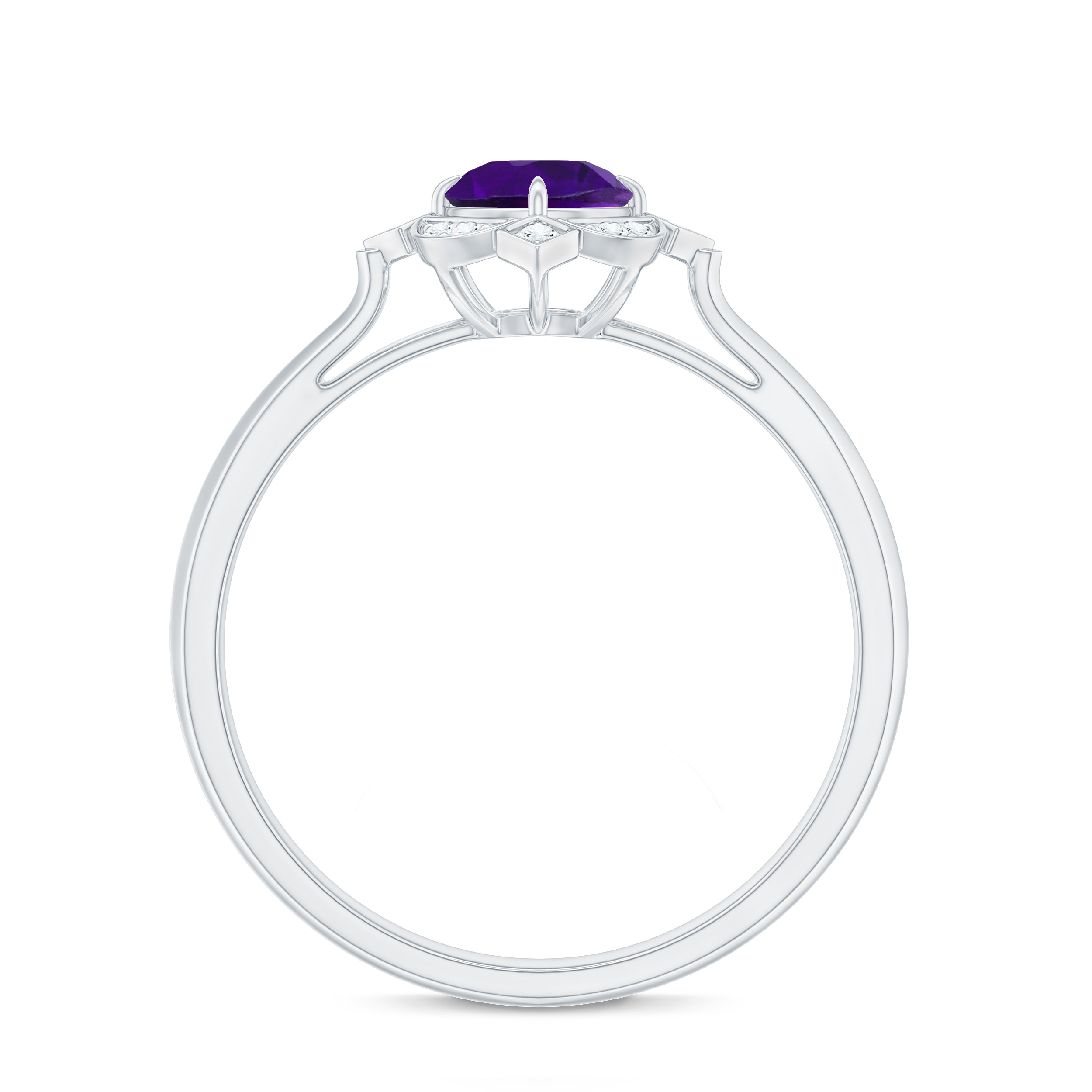 The enchanting Amethyst Vintage Engagement Ring is blooming with Accented Diamond on the Shank. This Amethyst and Diamond Engagement Ring is crafted for sumptuous appeal. Add more charm to your occasion with this Vintage Ring, having a unique design makes this ring extremely delightful.