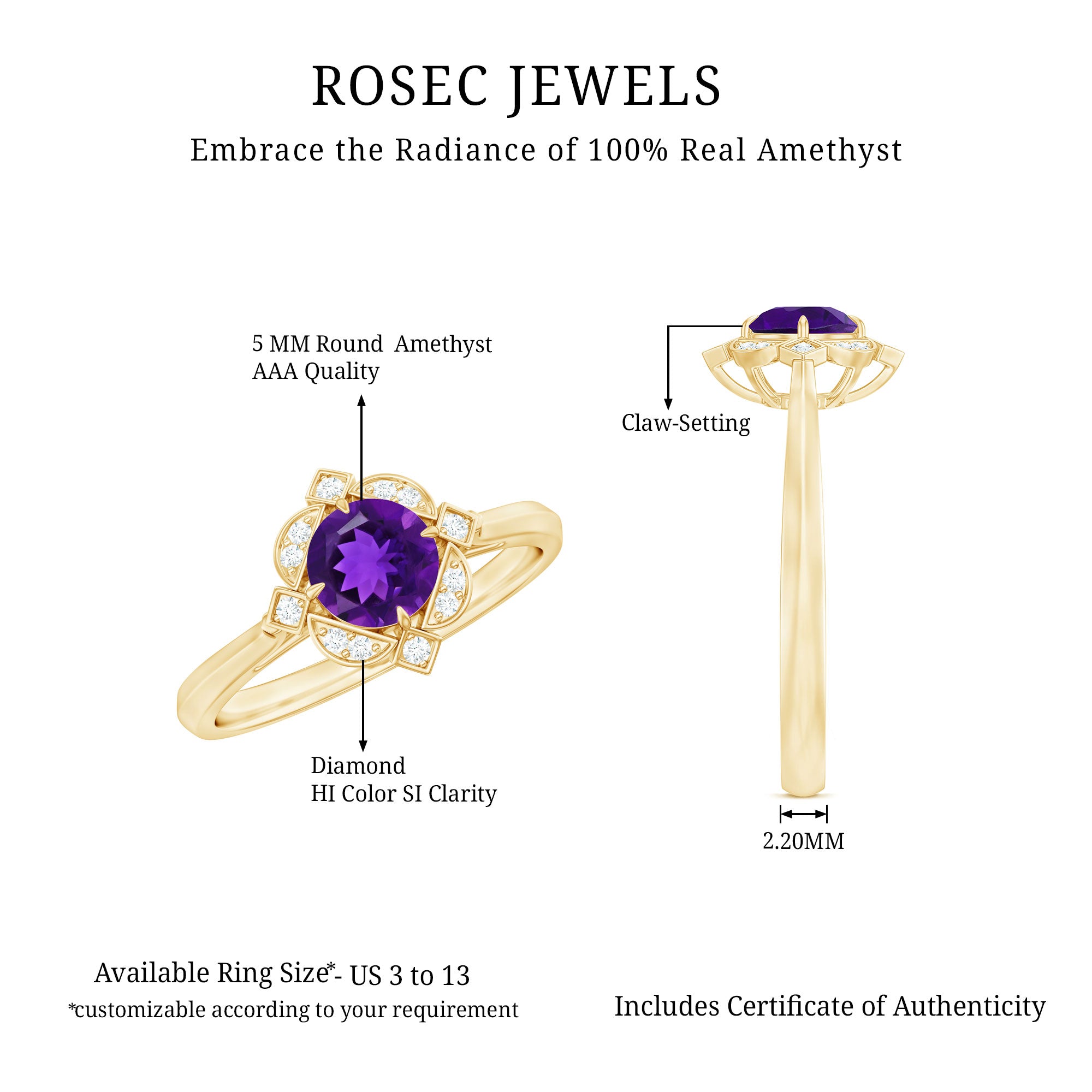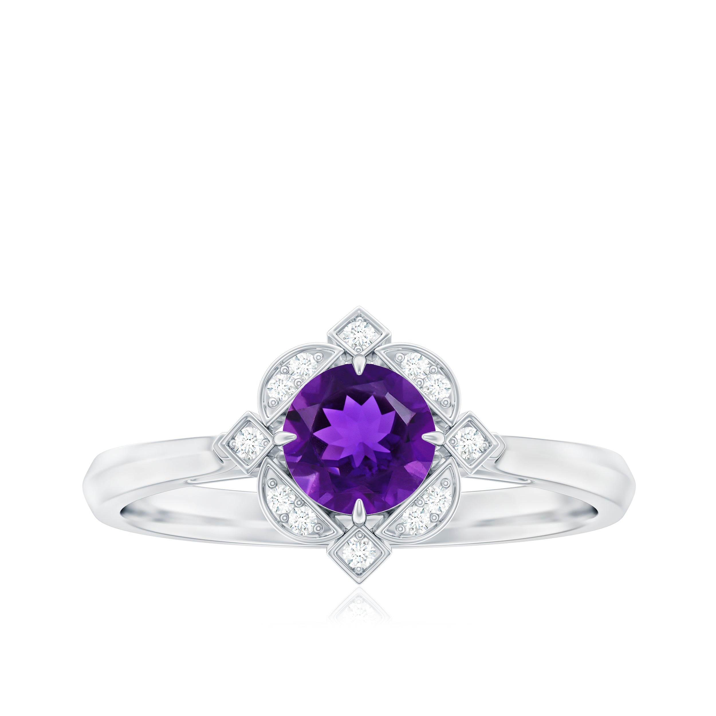 1/2 CT Vintage Amethyst and Diamond Engagement Ring