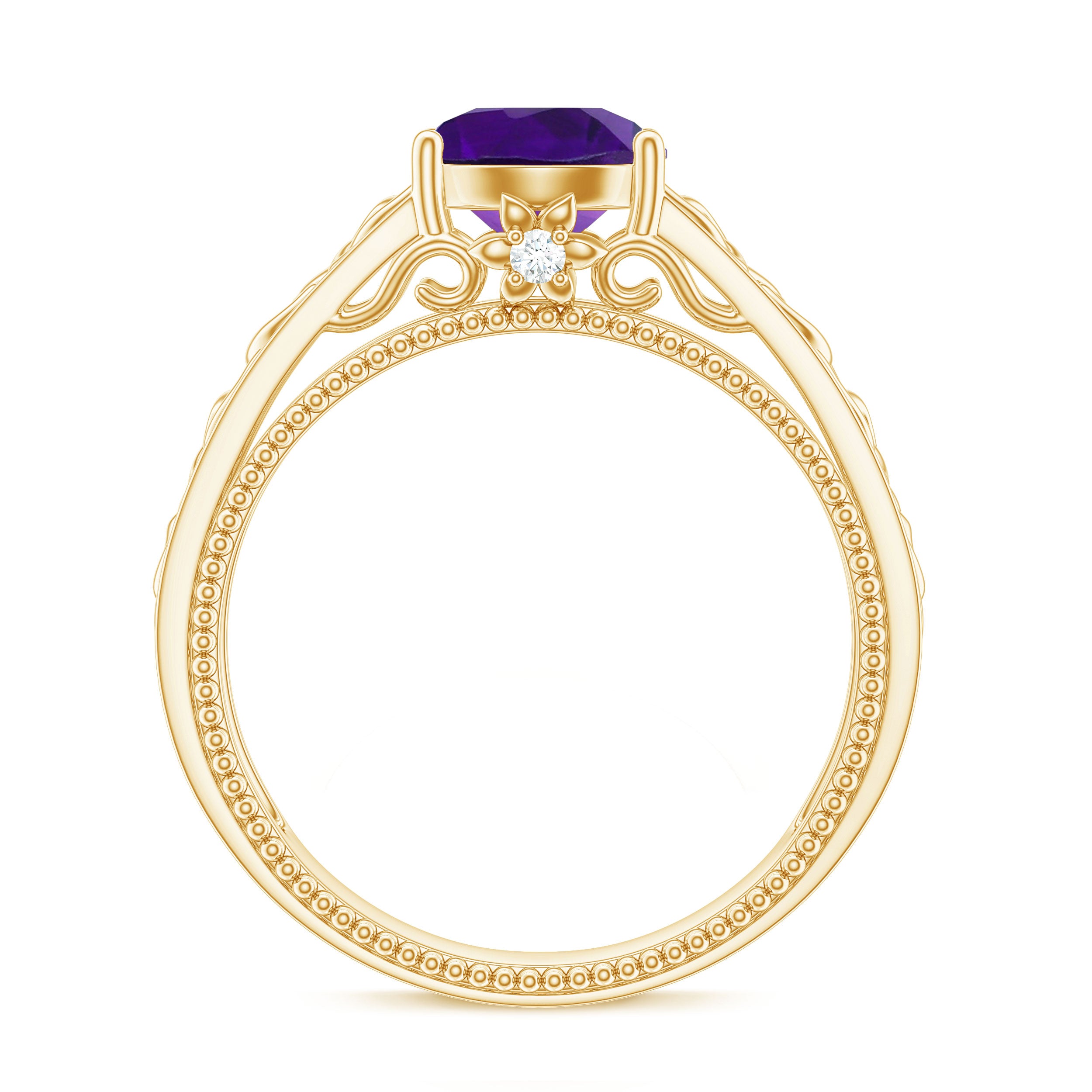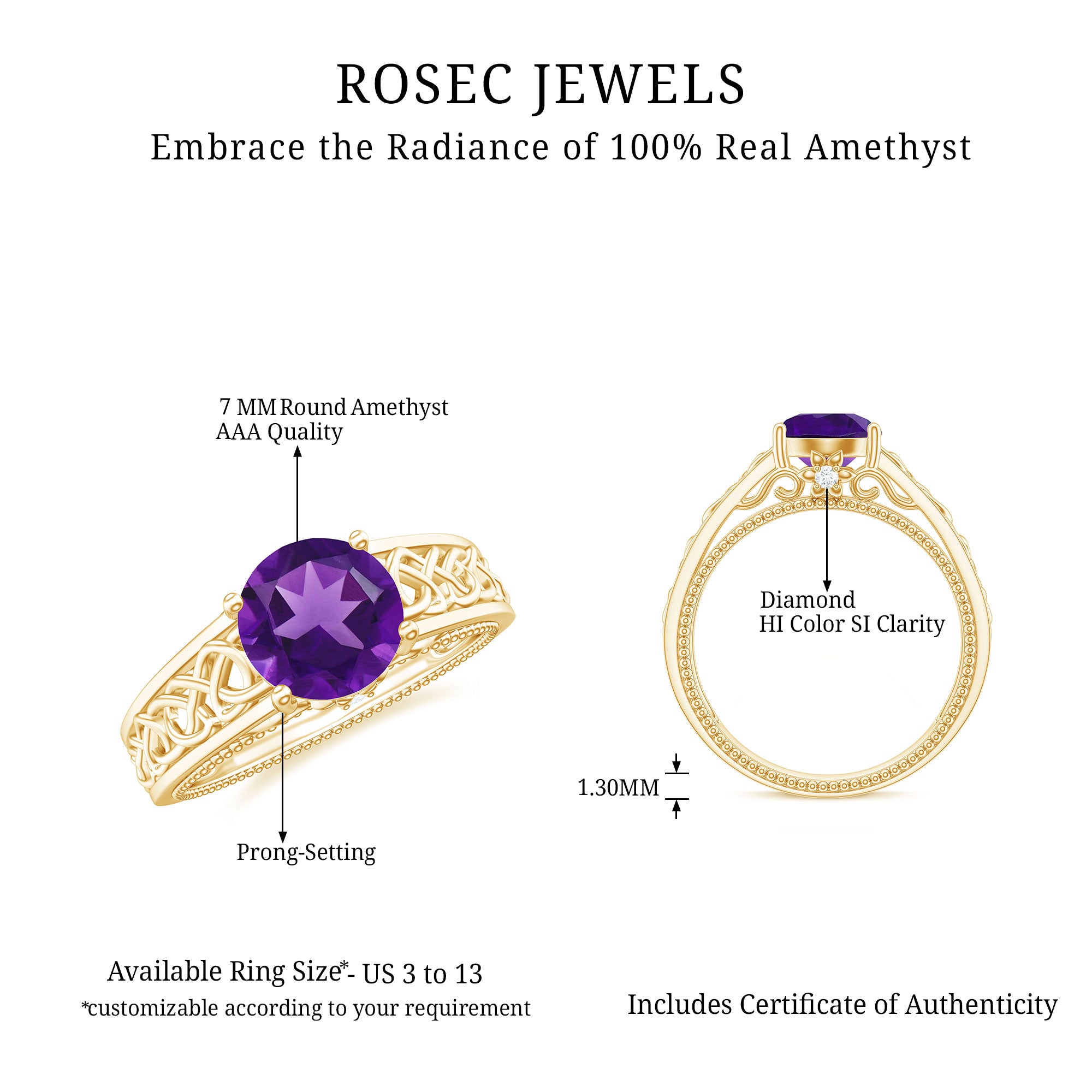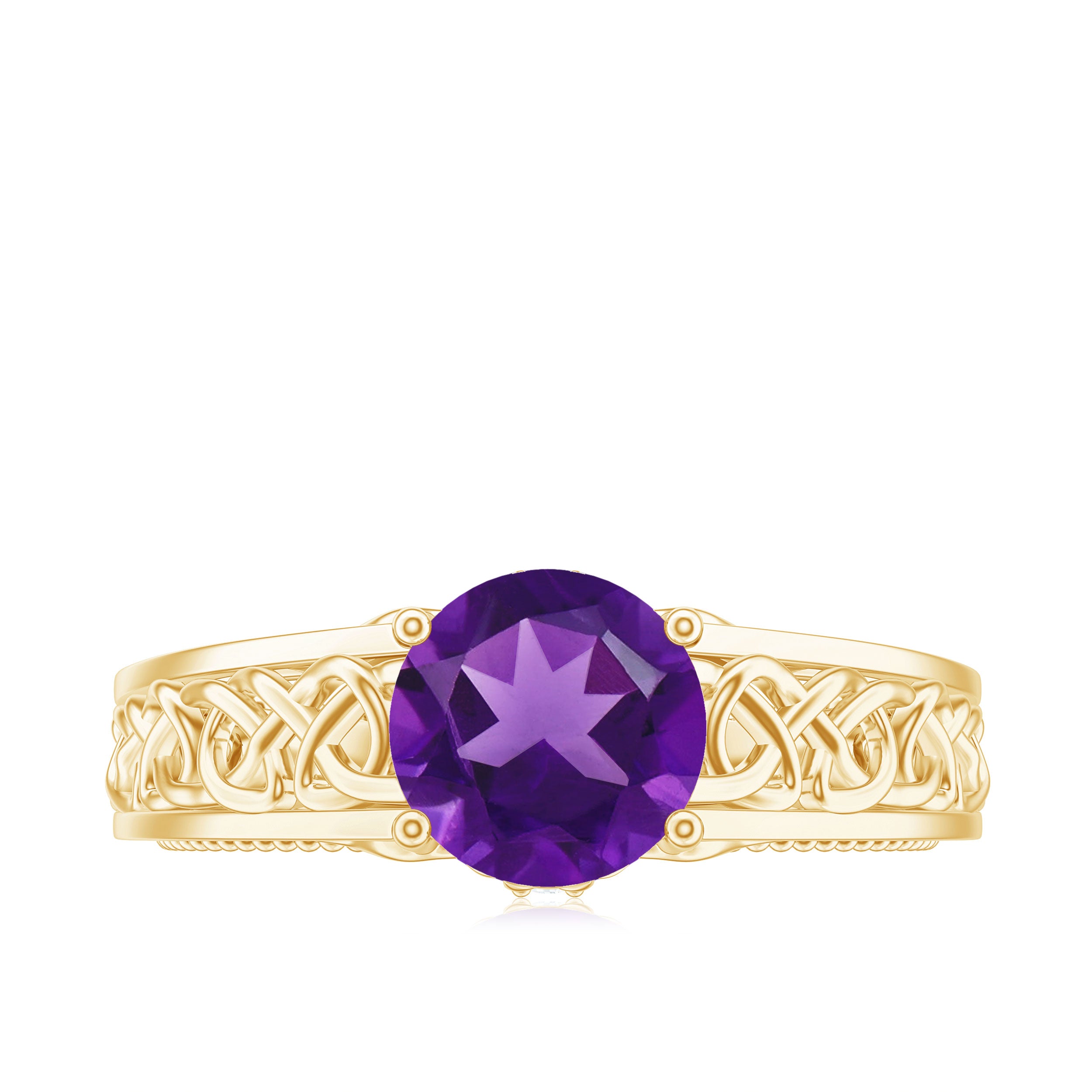 Complement your outfit for the special occasion with this gorgeous Solitaire Band adorned with Round Shape Amethyst with Round Shape Diamond. This Solitaire Band Ring is crafted with Solid Gold with Celtic Details for a charming appeal.