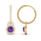 Amethyst Drop Hoop Earrings with Moissanite Halo