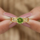 Keep it classy and chic by getting this elegant Antique Peridot Ring embellished with Round Shape Peridot in Prong Setting and Round Shape Diamond Stones. This Peridot and Diamond Ring is crafted with Gold and will give you a charming look. Get this Peridot Ring for her, surprise her on her birthday and make her special more memorable.