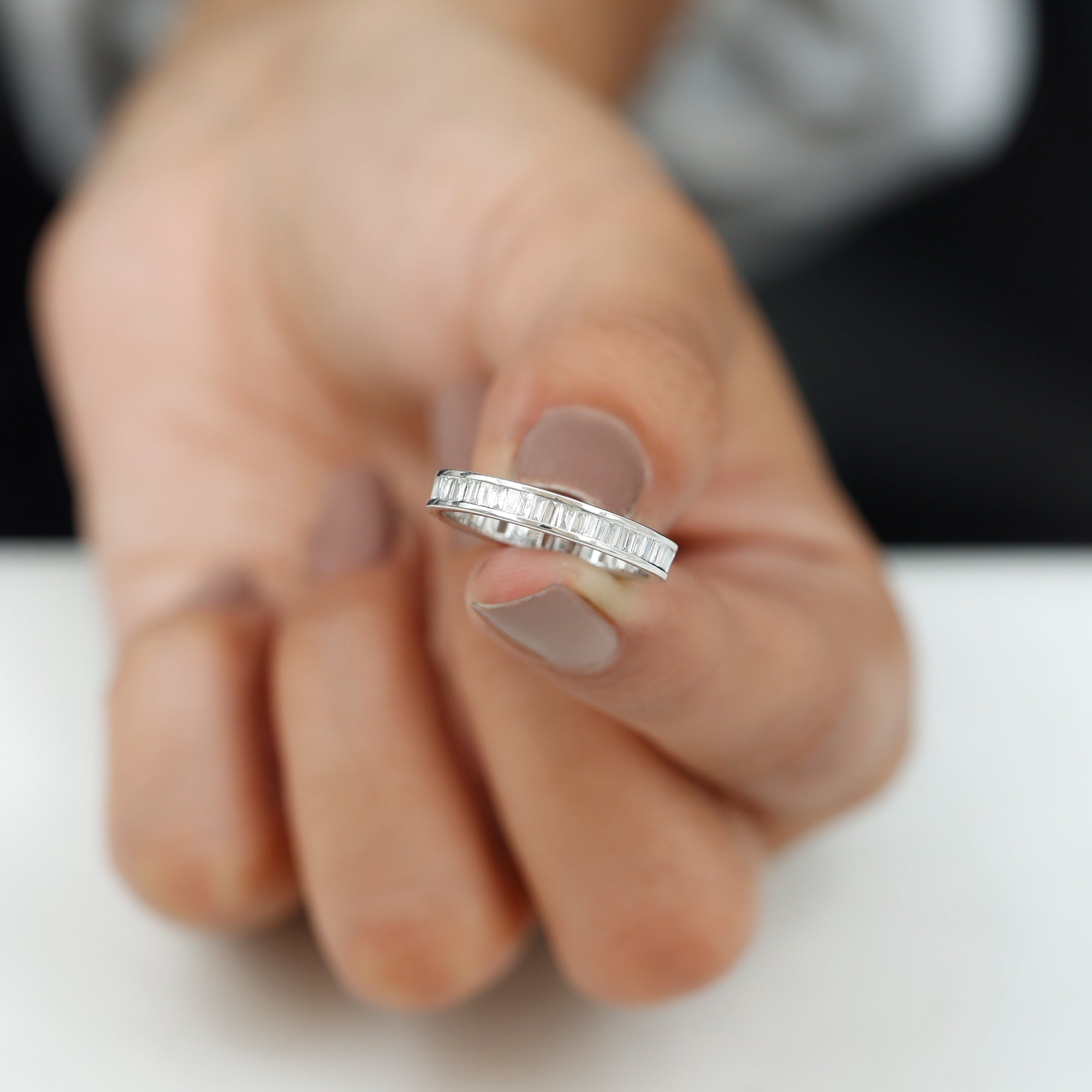 1.25 CT Baguette Cut Natural Diamond Eternity Ring in Channel Setting