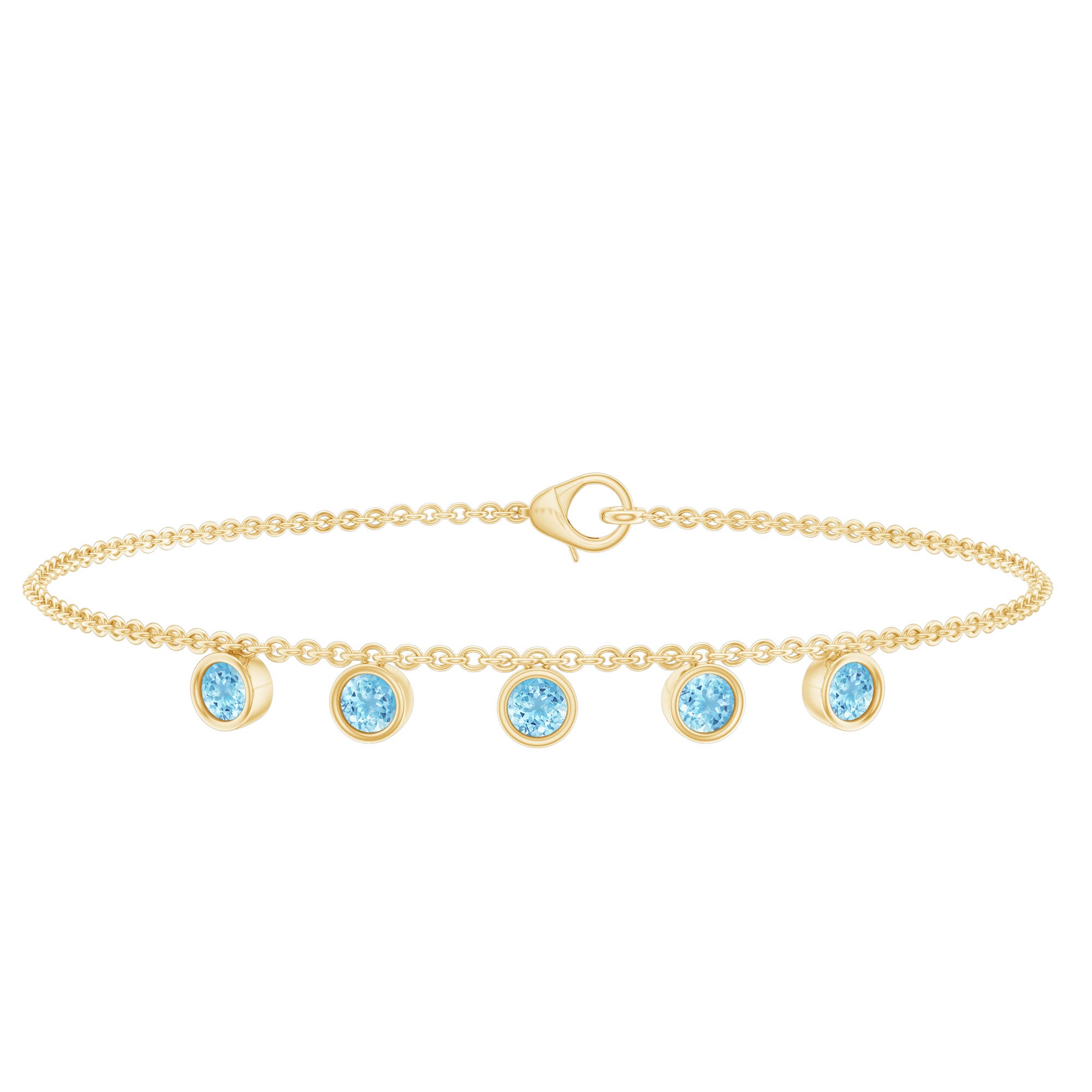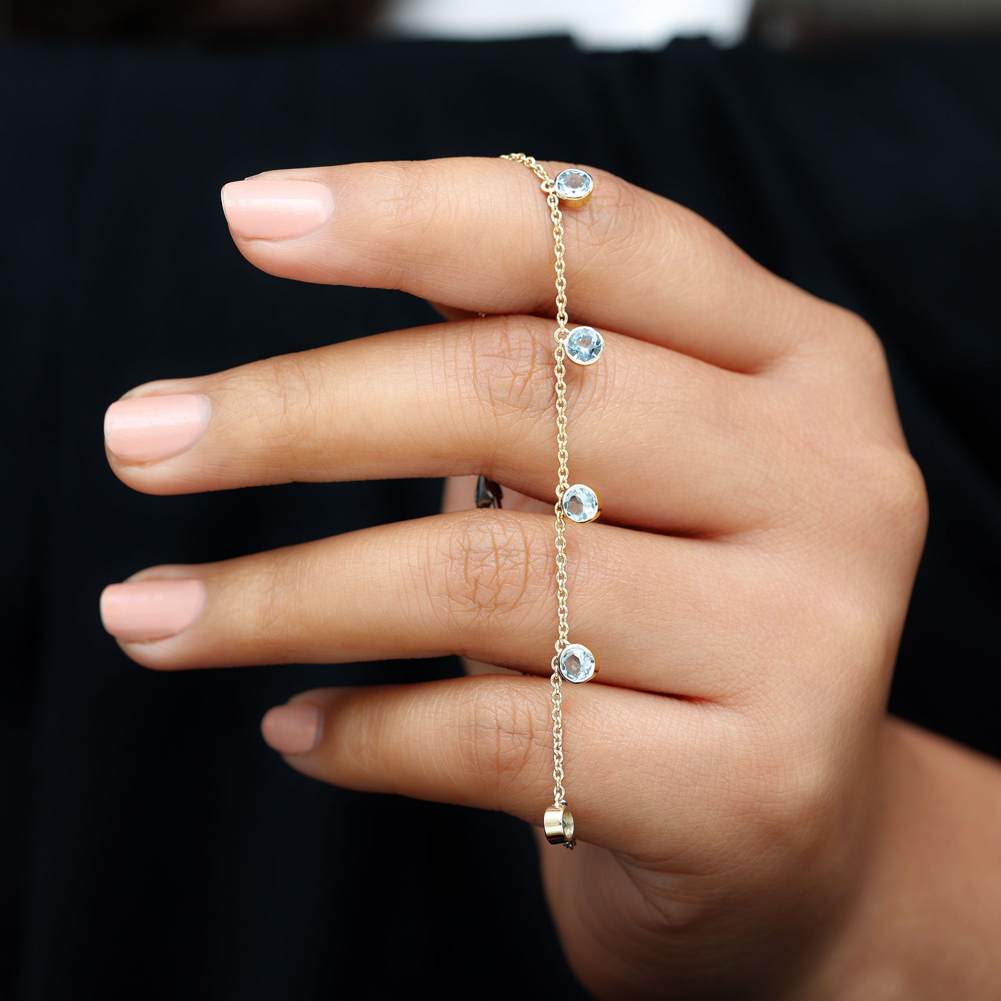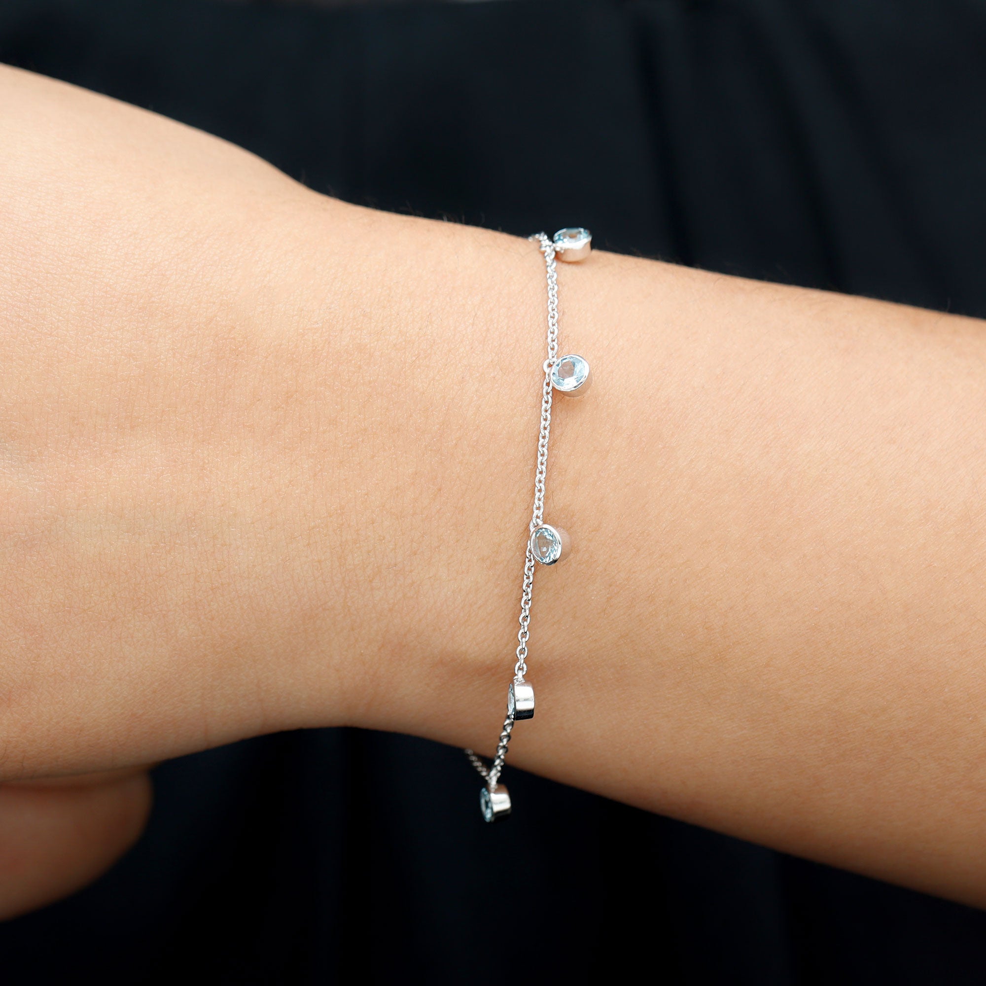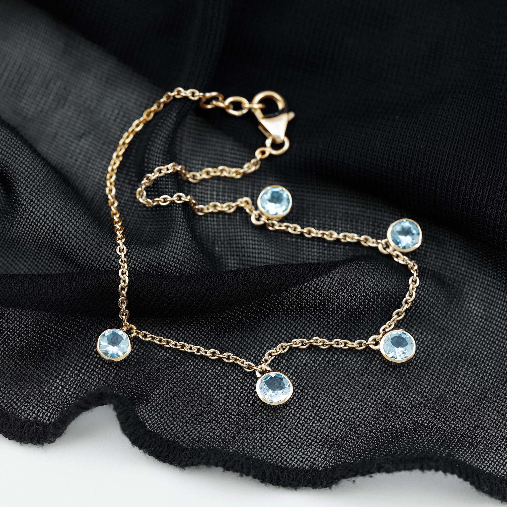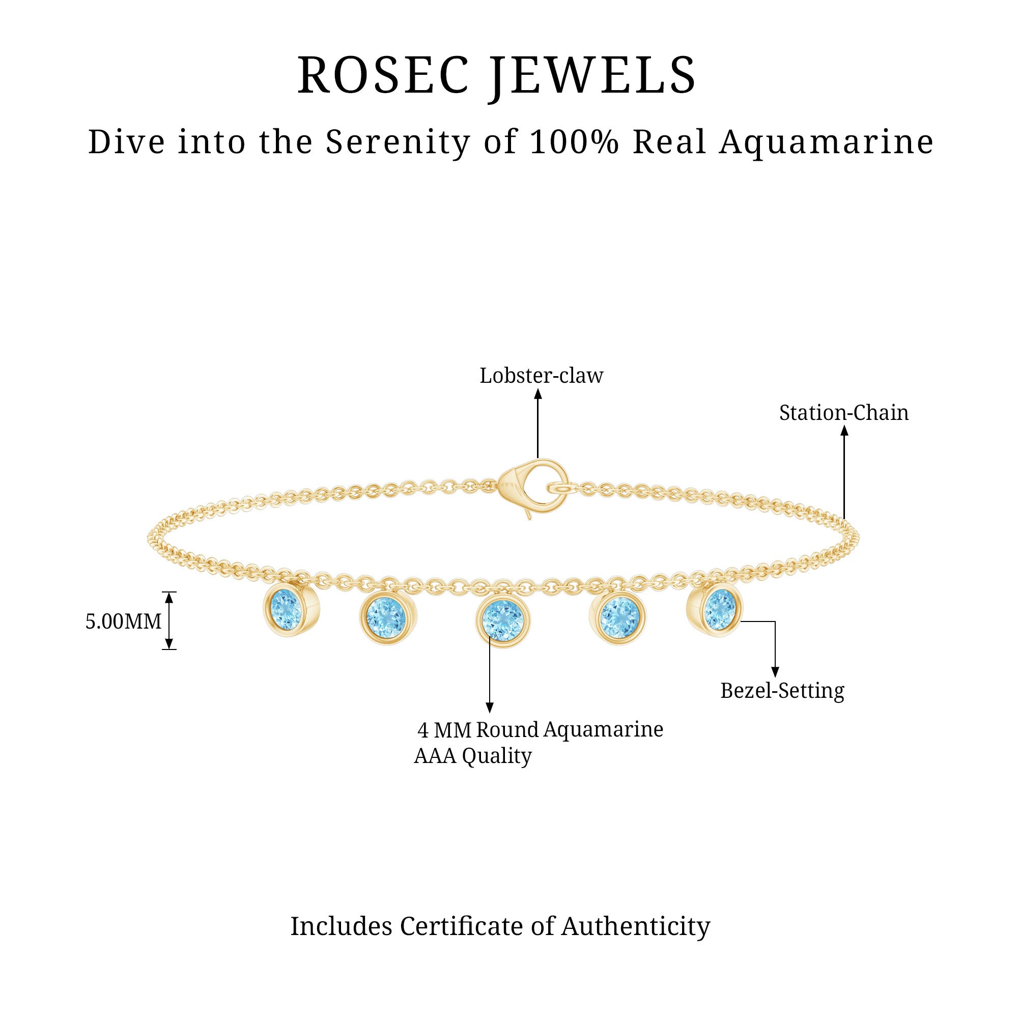 Grab this shinning Station Chain Bracelet for your Girl embellished with Round Cut Aquamarine in Solid Gold with Bezel Setting. She is going to definitely love your surprise Present.
