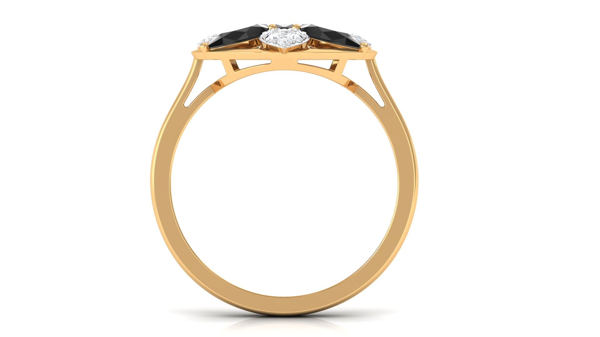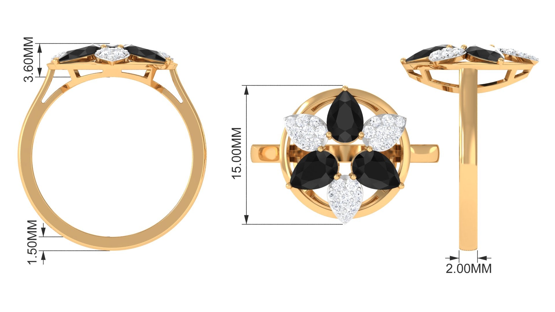 Bring a trendy eye catching look by wearing this Flower Ring embellished with Pear Shape Black Spinel and Round Shape Diamond.