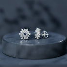 1.25 CT Blue Sapphire and Diamond Floral Cluster Stud Earrings
