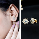 These Classic Stud Earrings are for Women to look elegant and classy. Set in Solid Gold and embellished in Prong Setting, these Snowflake Earrings consist of Round Shape Blue Sapphire and Round Brilliant Cut Diamonds, for you to shine bright and look beautiful as ever.