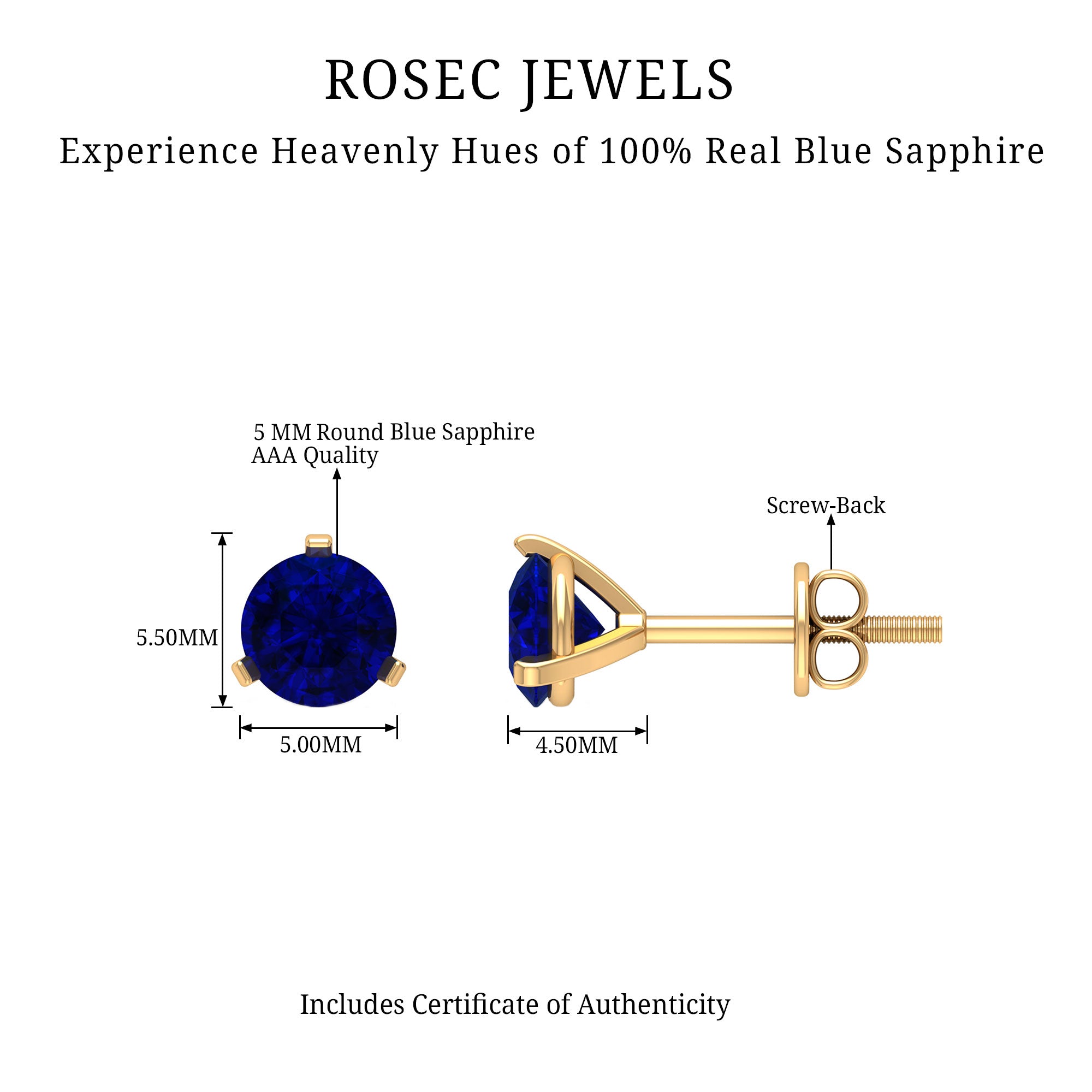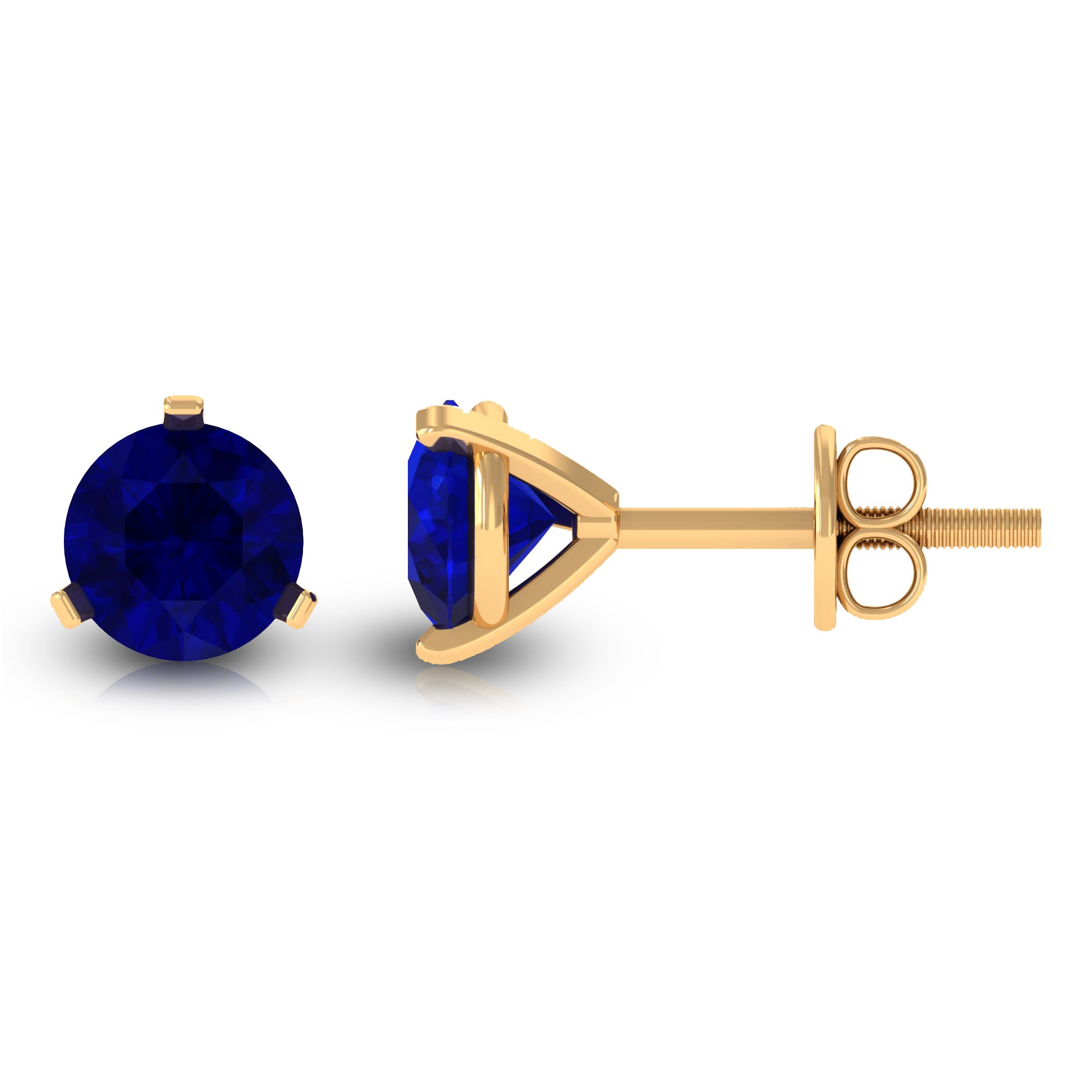 Designed elegantly for your everyday styles, these Round Stud Earrings are adorned with Blue Sapphire Solitaire. Complement your different outfits with these Stud Earrings for a fashionable appeal.