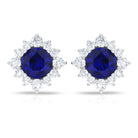 1.25 CT Blue Sapphire Solitaire Stud Earrings with Diamond Halo