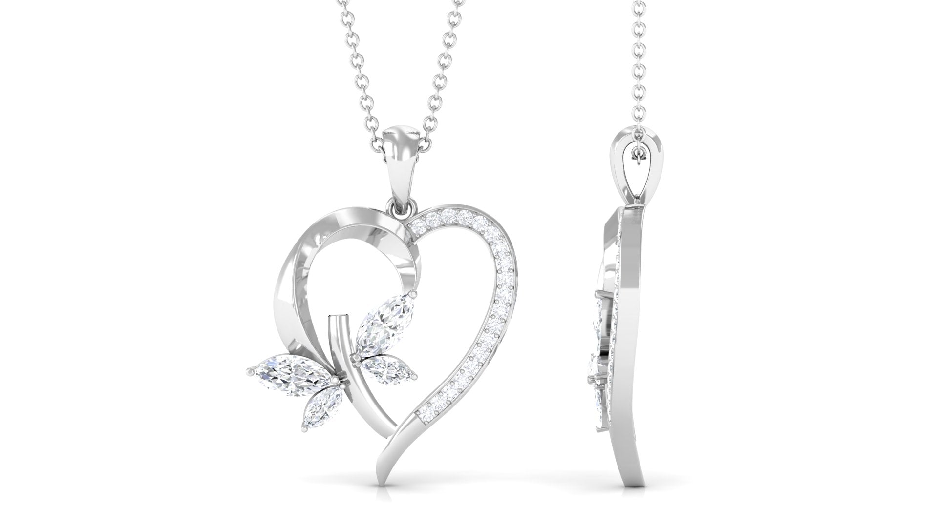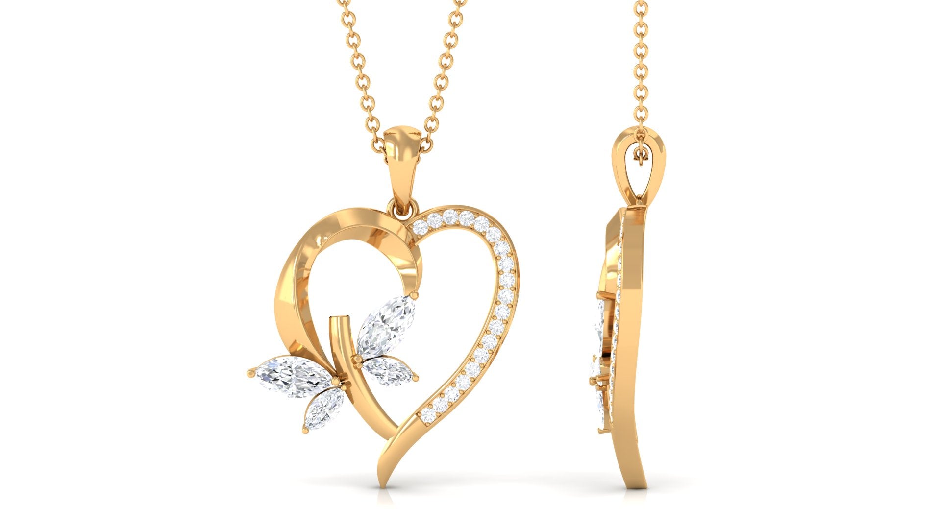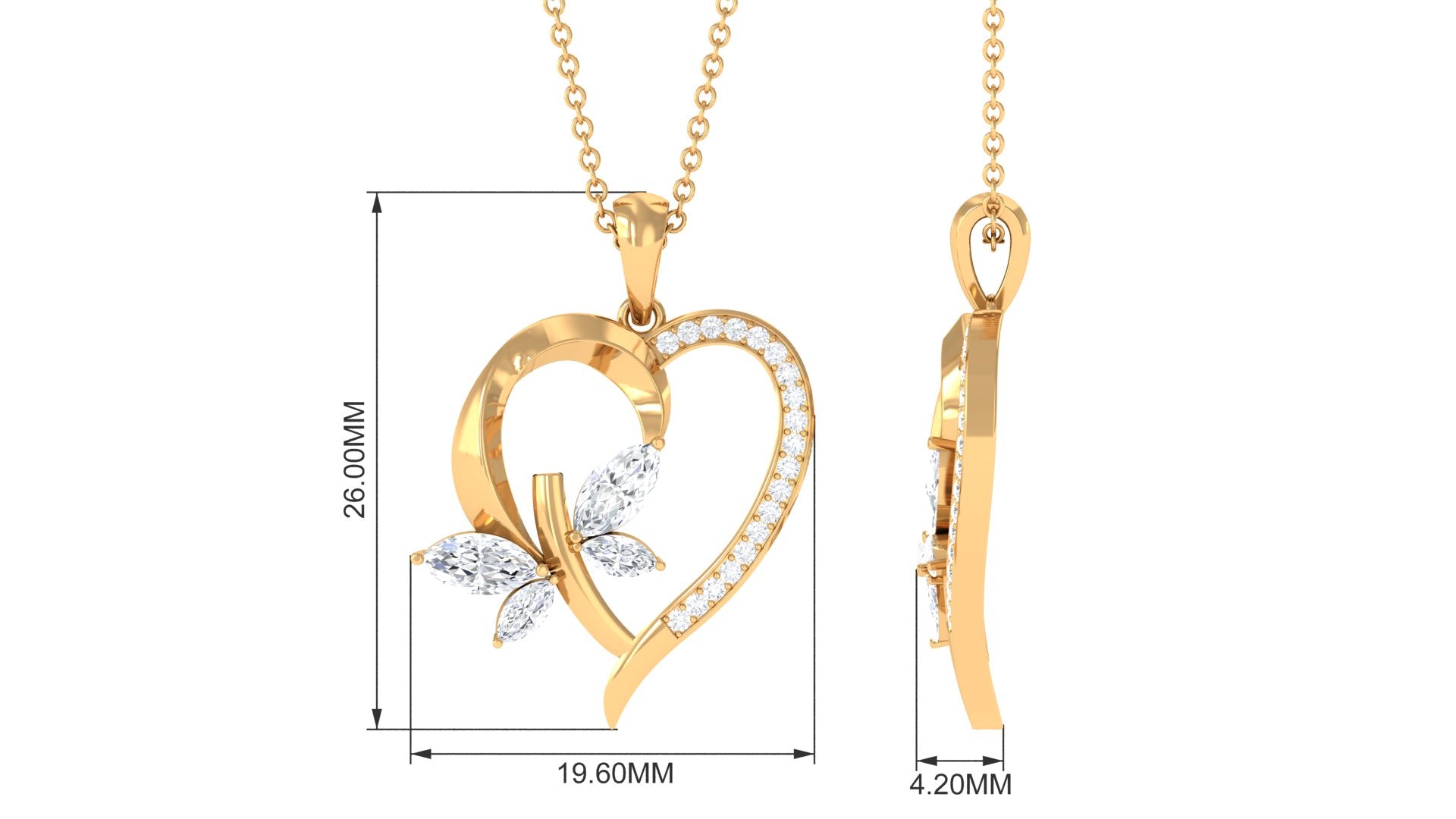 It is a Butterfly Pendant Necklace, adorned in Solid Gold and consists of Marquise Cut Moissanite embellished in Prong Setting with Round Cut Moissanite embellished in Pave Setting. It is also termed as a Heart Pendant Necklace for Women.