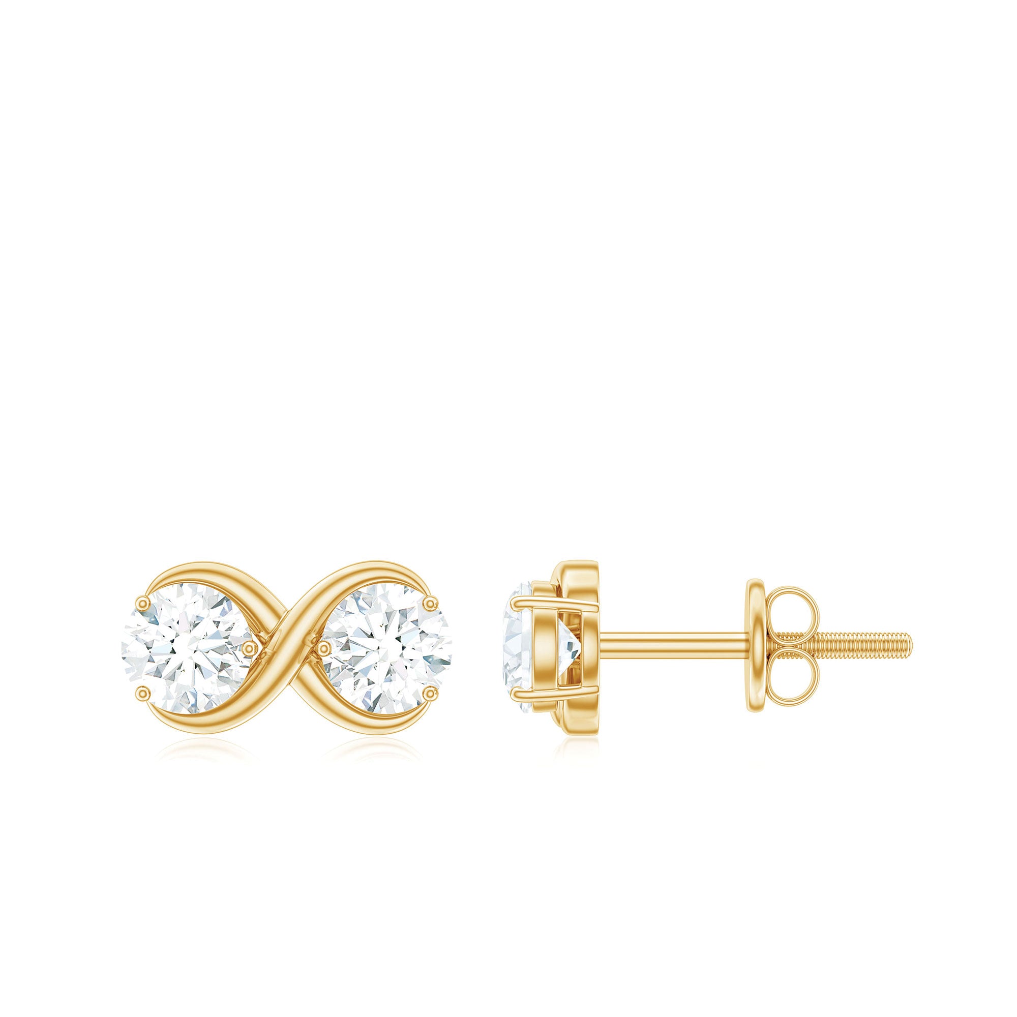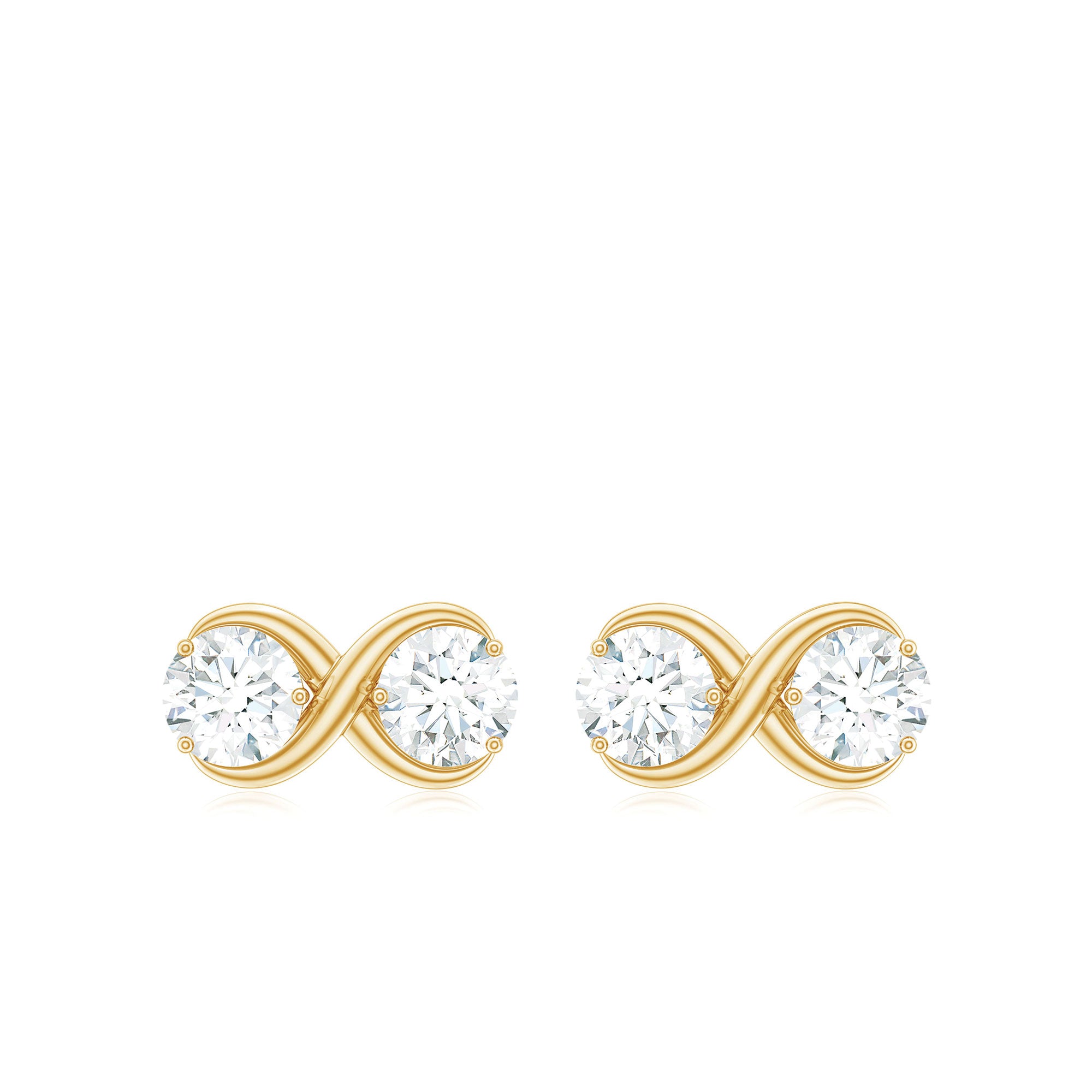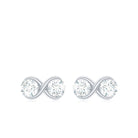 This Dainty Infinity Pattern Earrings embellished with Brilliant Round Cut Moissanites are set on the studs in a Prong Setting. This Stud Earrings crafted in Solid Gold.