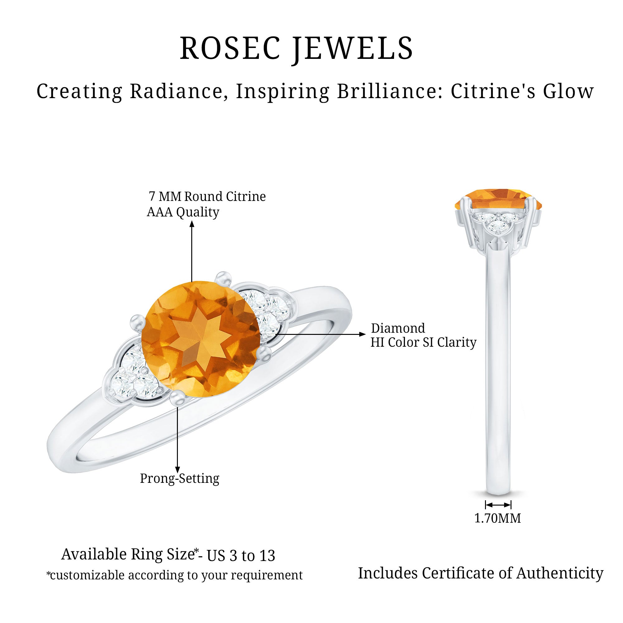 Beautifully designed for your loved one, this Engagement ring is adorned with Round Shape Citrine in a Prong setting and a Diamond Trio accent. Gift this charming ring to your partner on a special occasion.