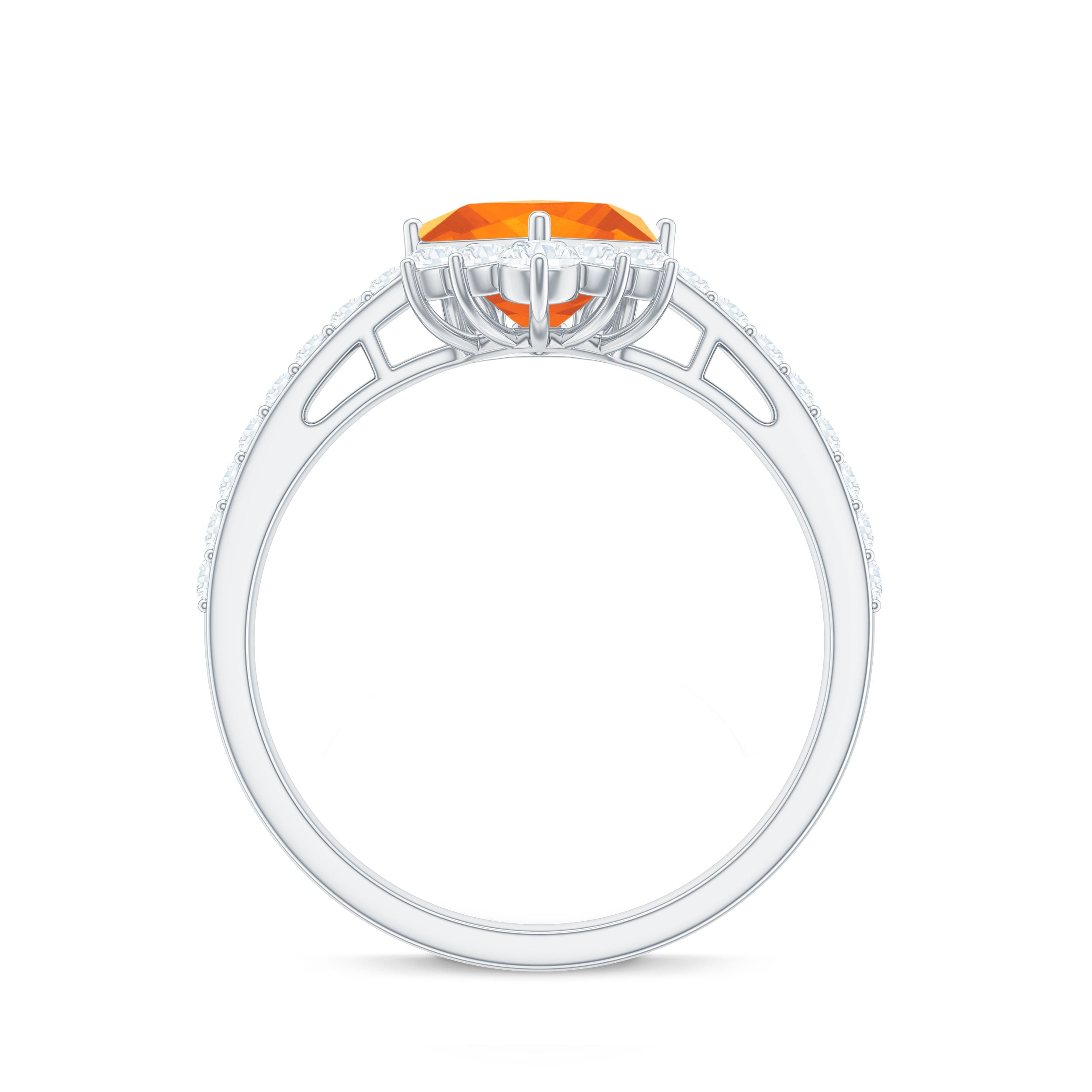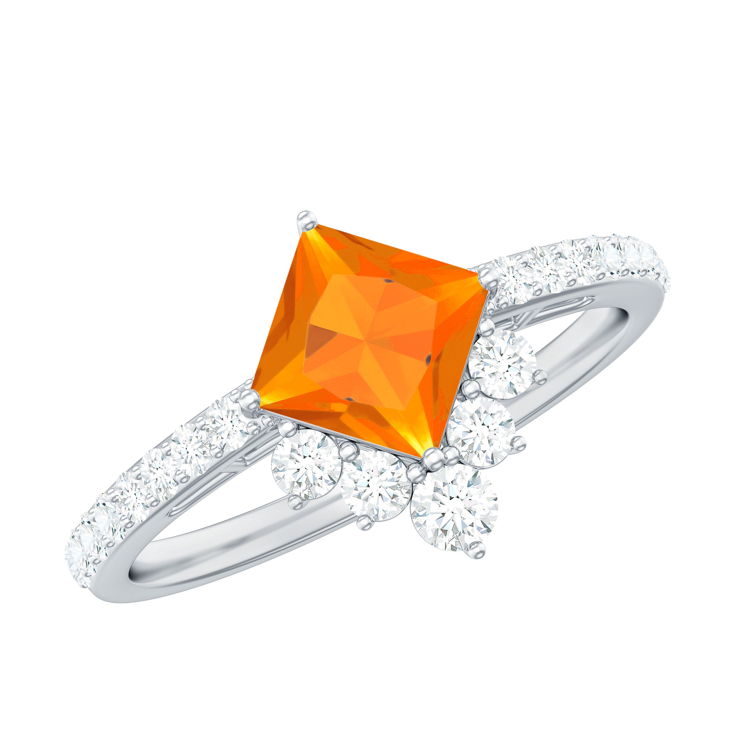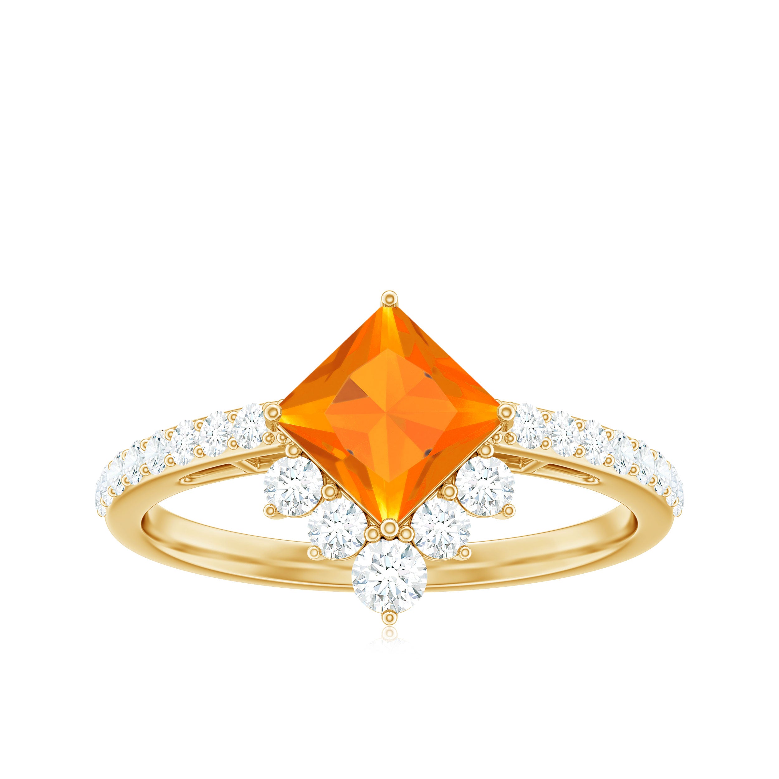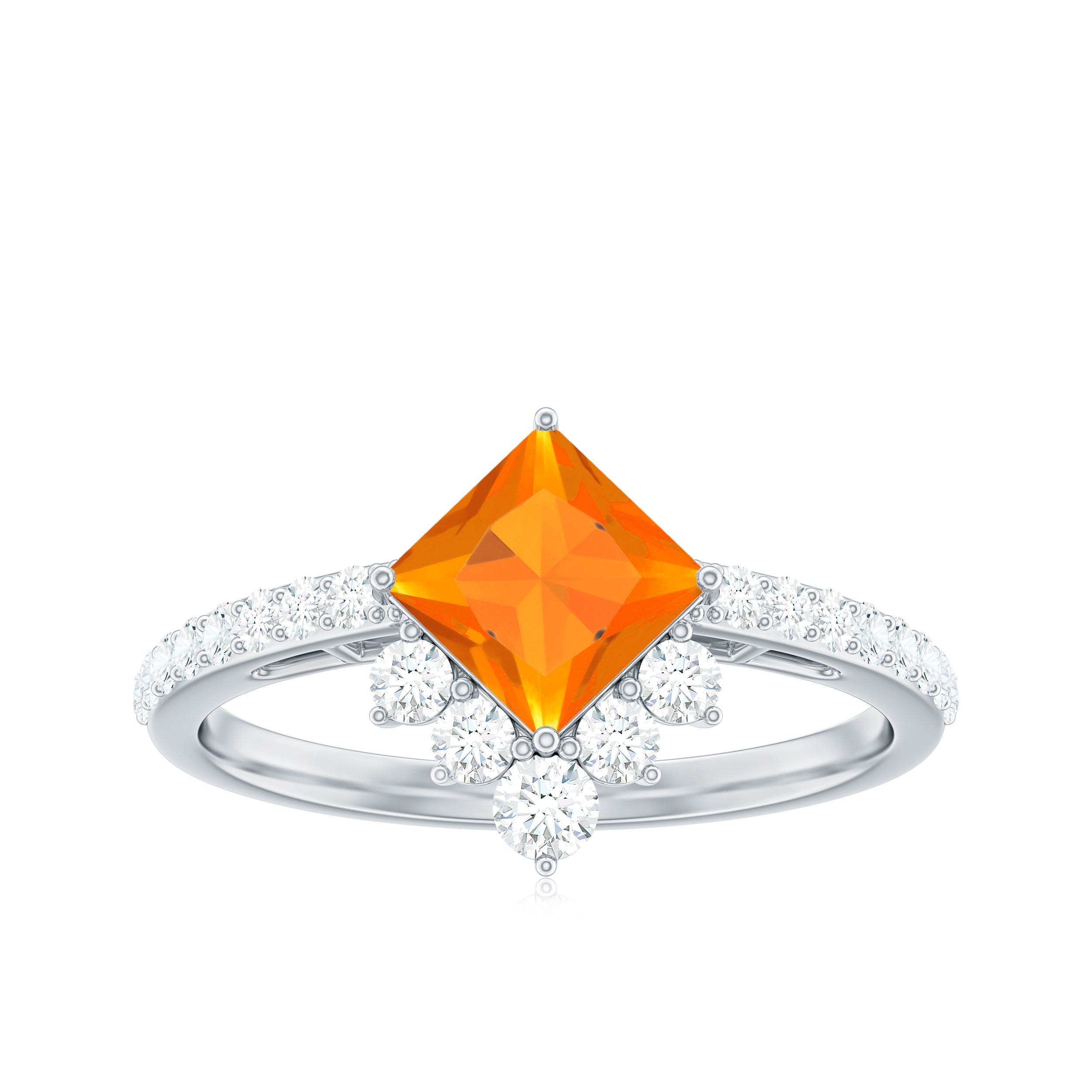 1.25 CT Designer Fire Opal and Diamond Engagement Ring
