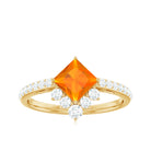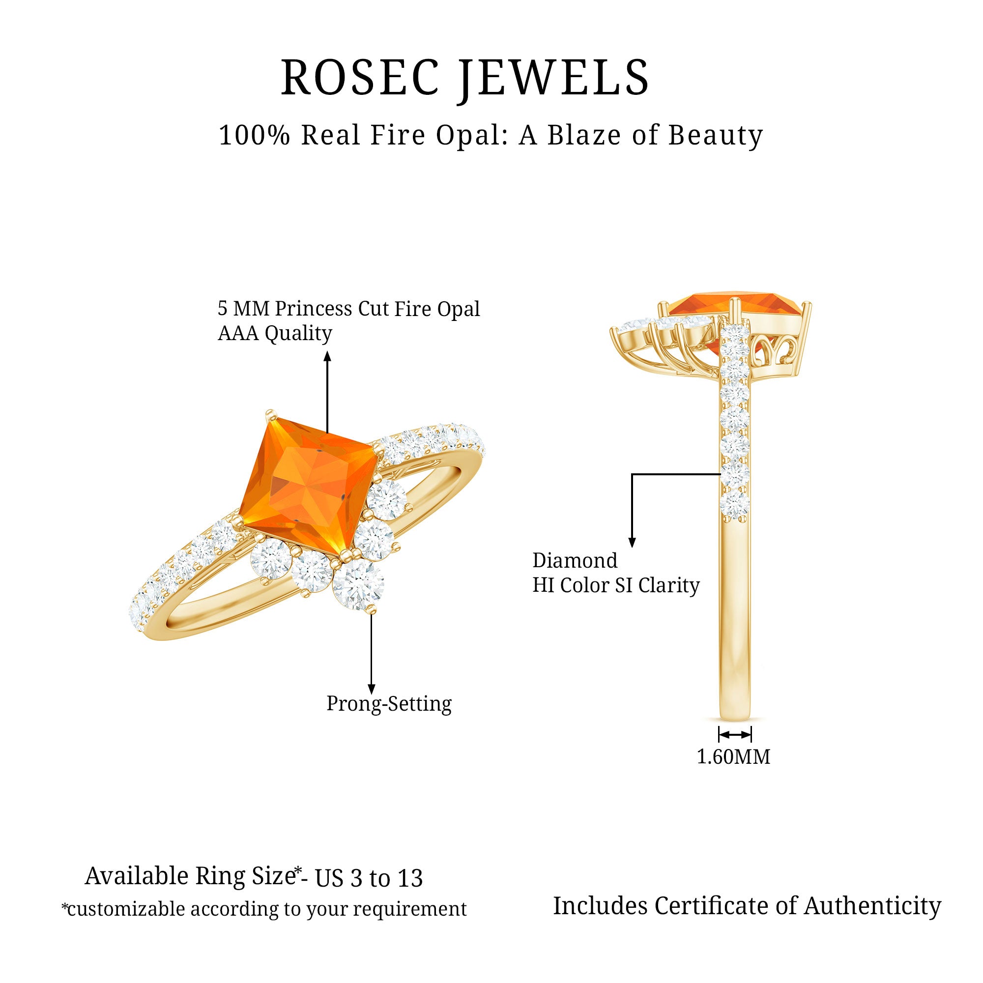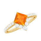 Radiating Princess Cut Fire Opal Engagement Ring is embellished with designer pattern created by Round Diamond. This Fire Opal Ring will absolutely make you dazzle with its fine charm. The Half Halo created by Diamond make this ring a creative look. Splendidly crafted in Gold, this Engagement Ring is stunning choice for your special day.